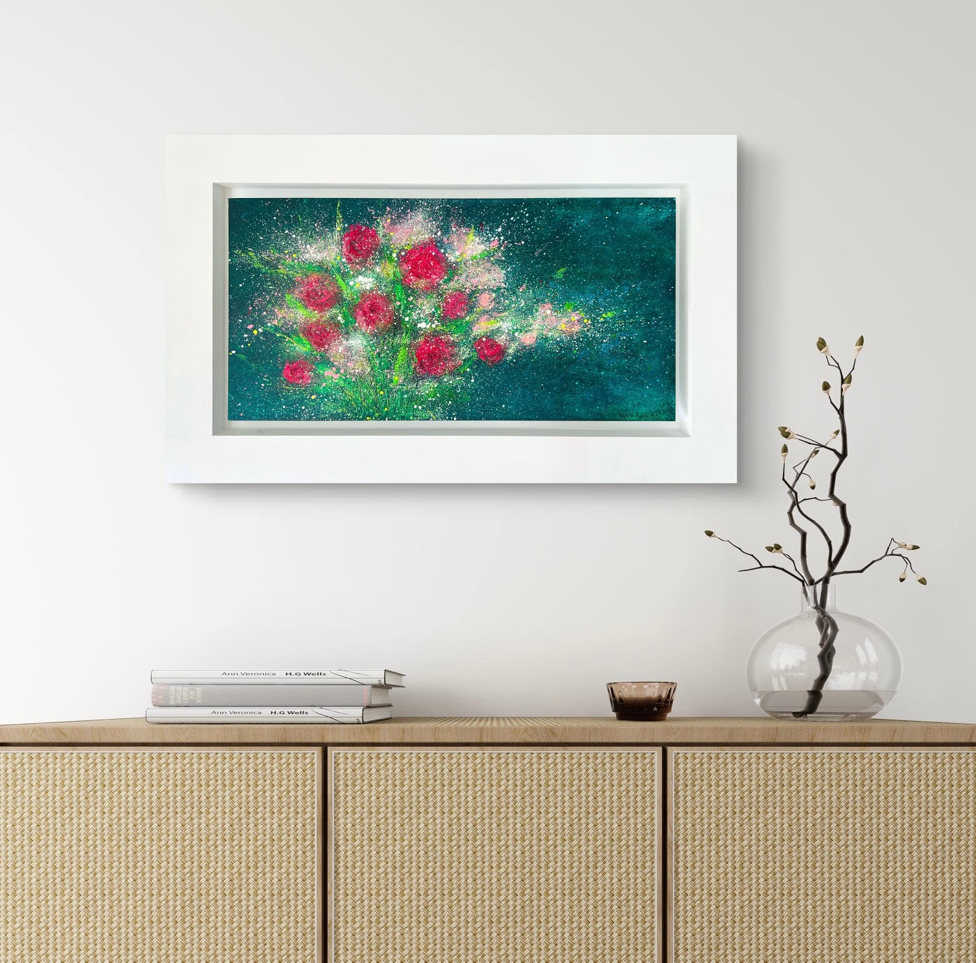 Dimension: 78 cm (W) x 47cm (H) x 3.5cm(D). These measurements include wood frame