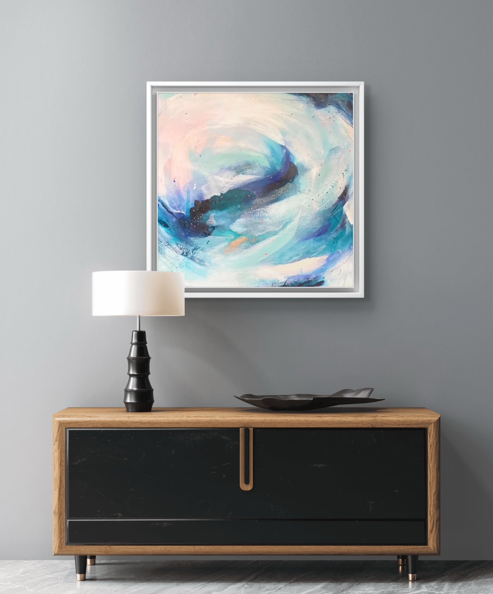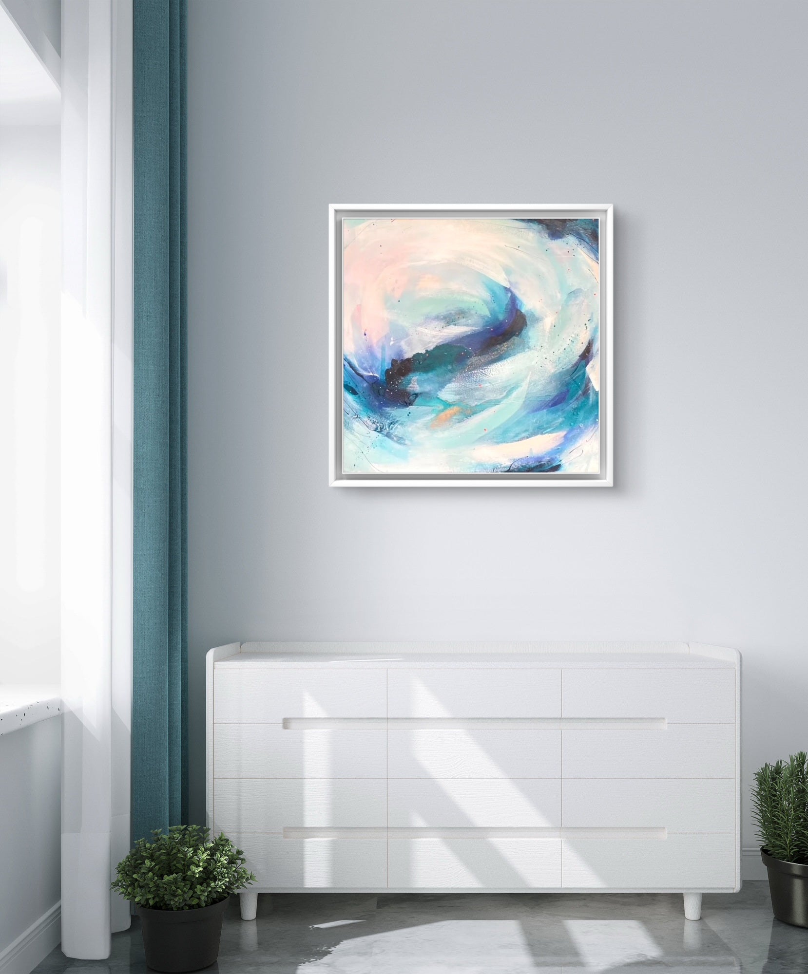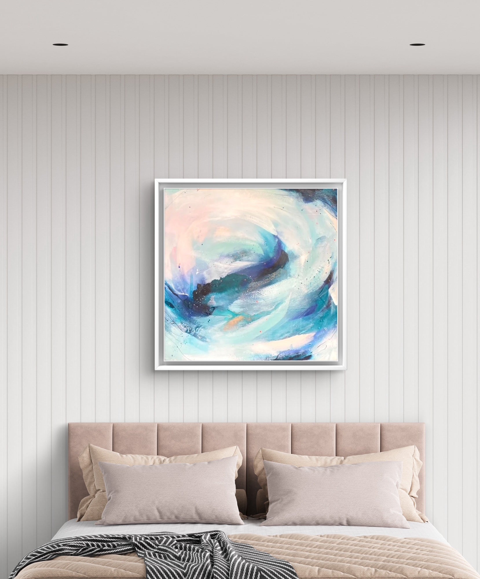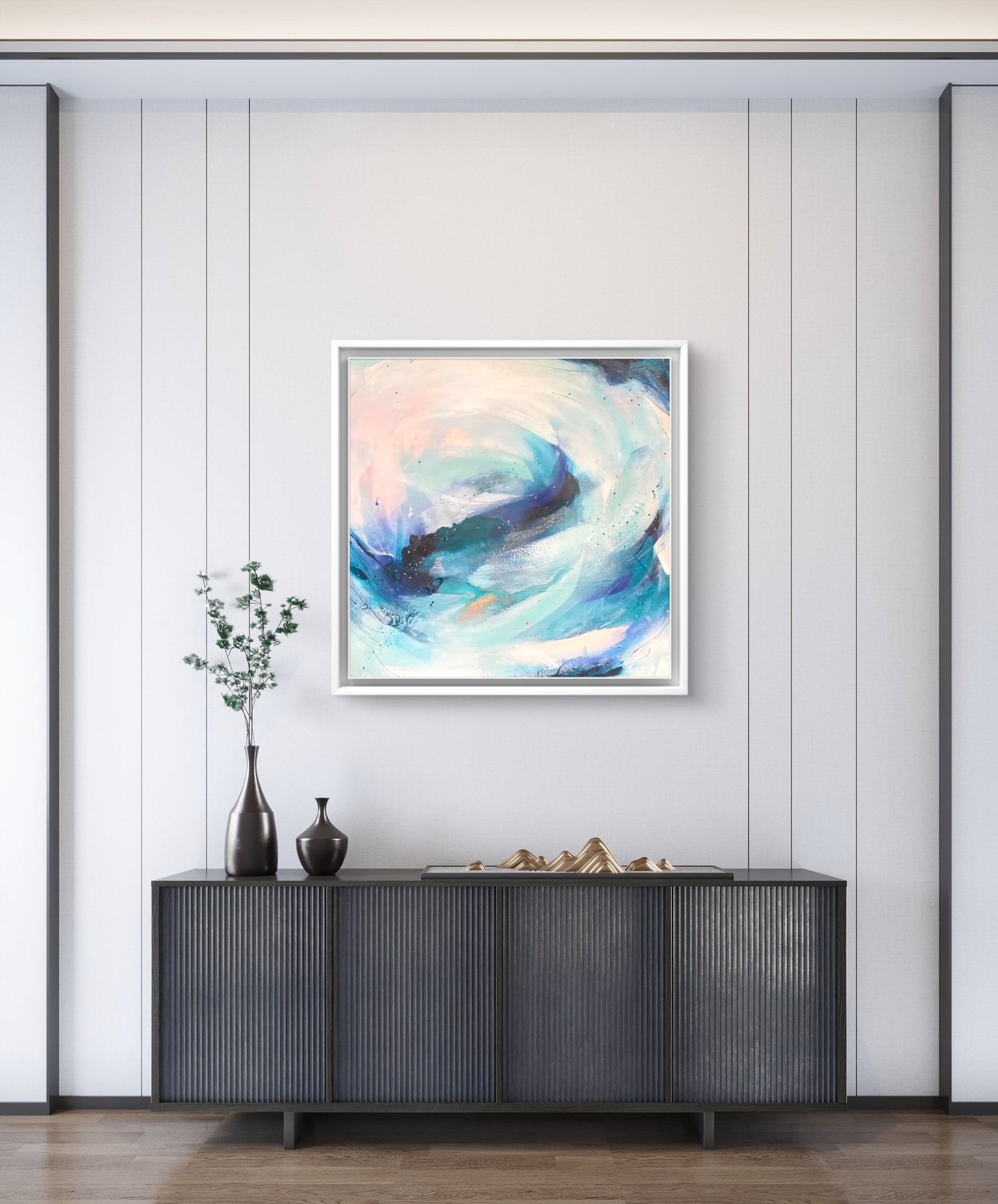 Medium: Acrylic paint, mixed media and watercolour inks, with copper leaf accents on premium deep edge cotton canvas.