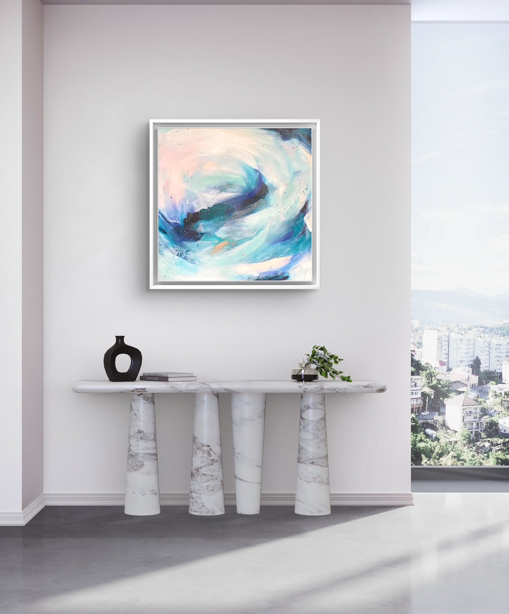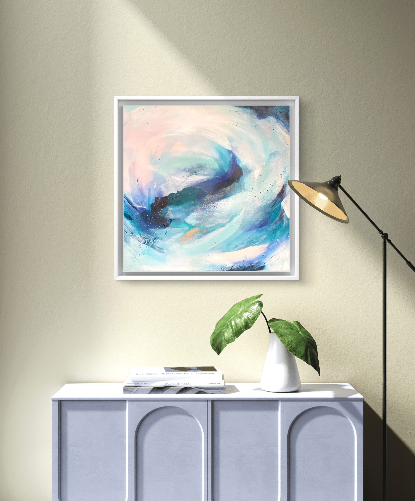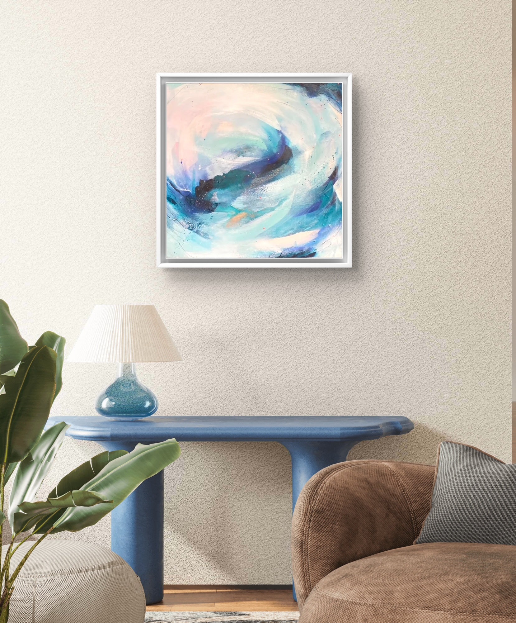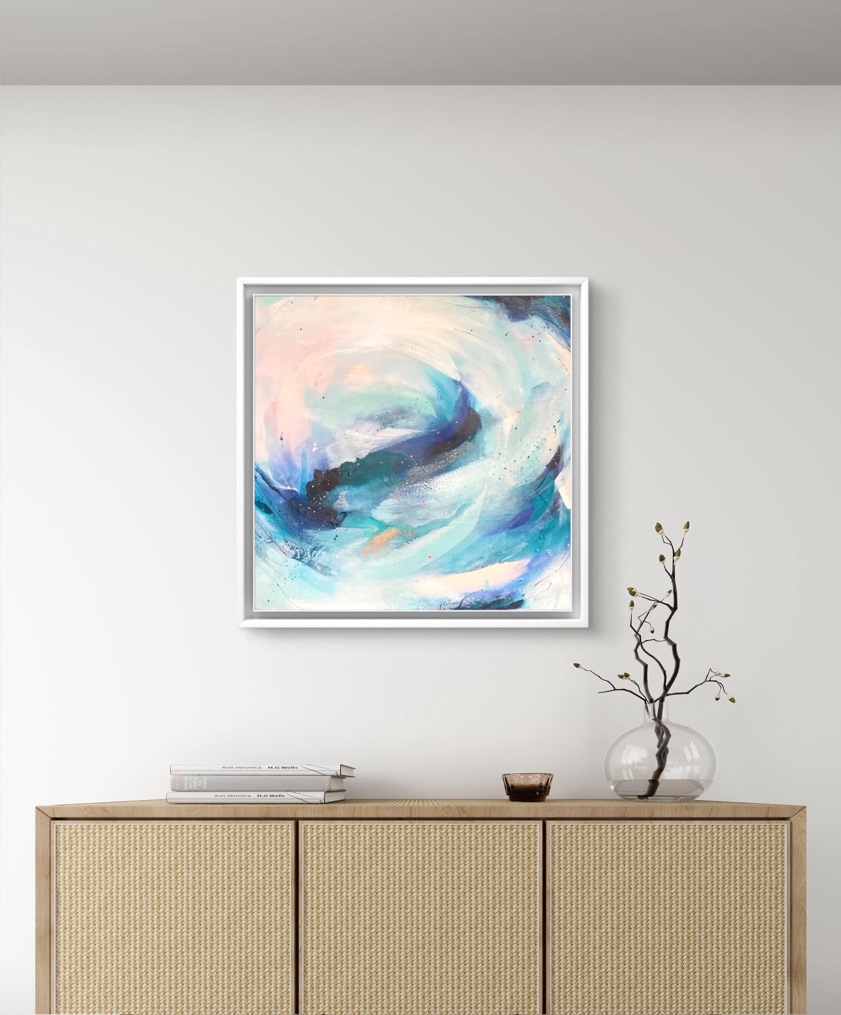 Medium: Acrylic paint, mixed media and watercolour inks, with copper leaf accents on premium deep edge cotton canvas.