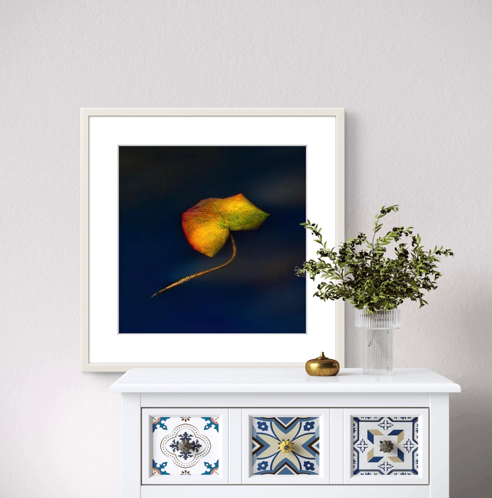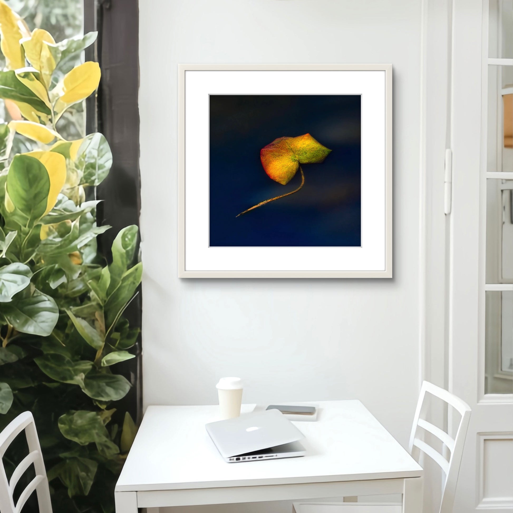Framed in a white frame with Ultra Vue UV70 anti reflective glass