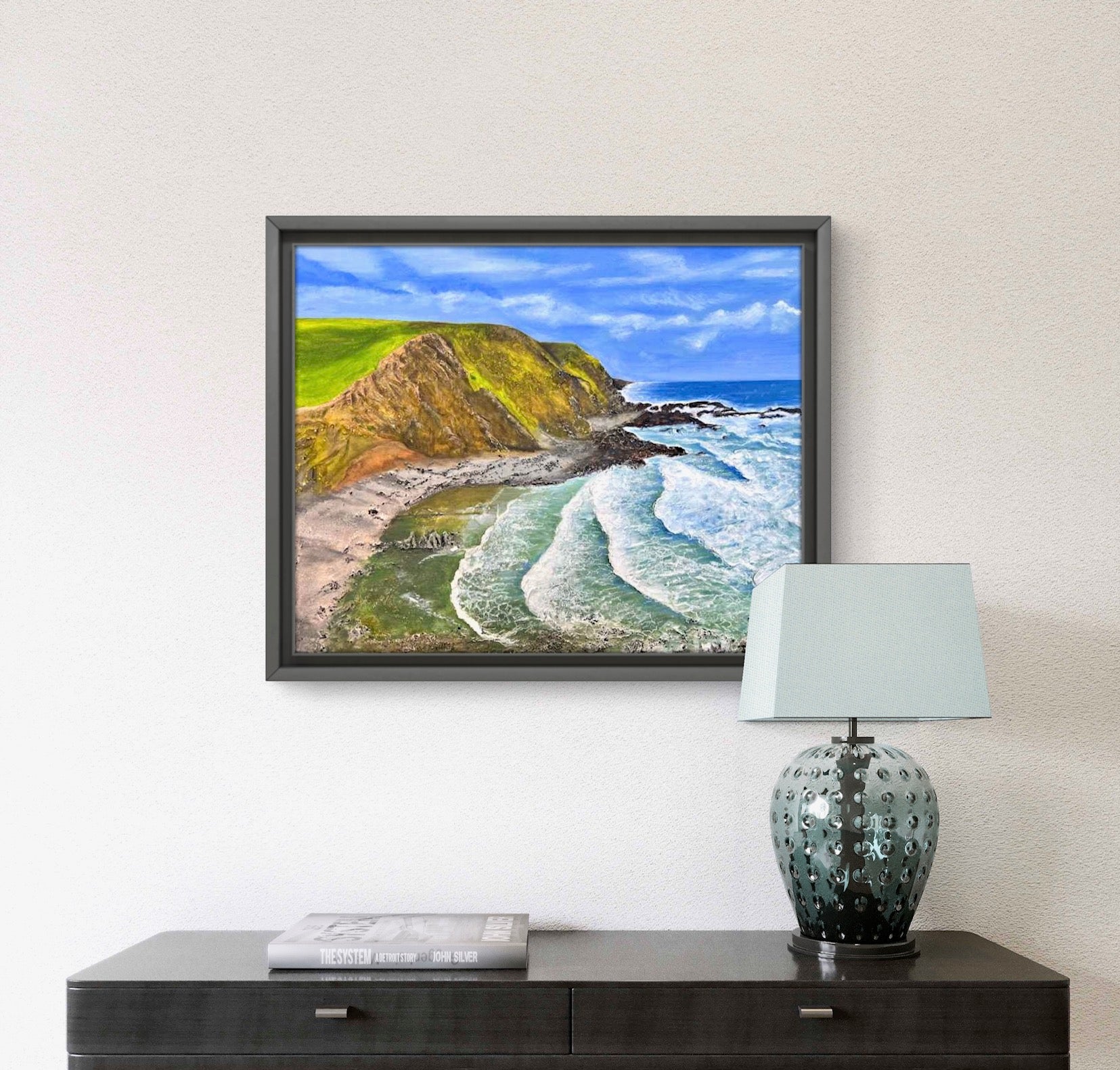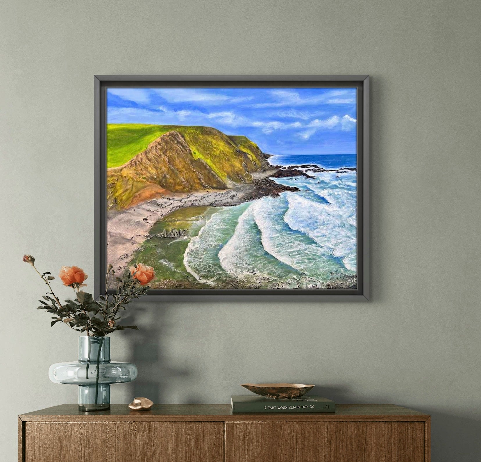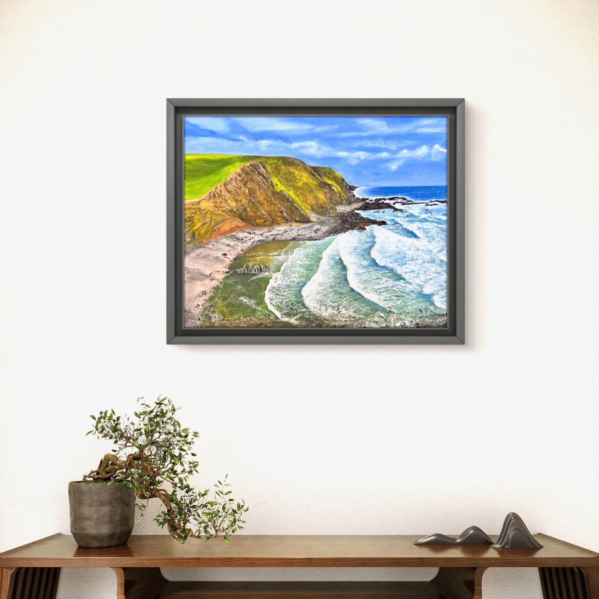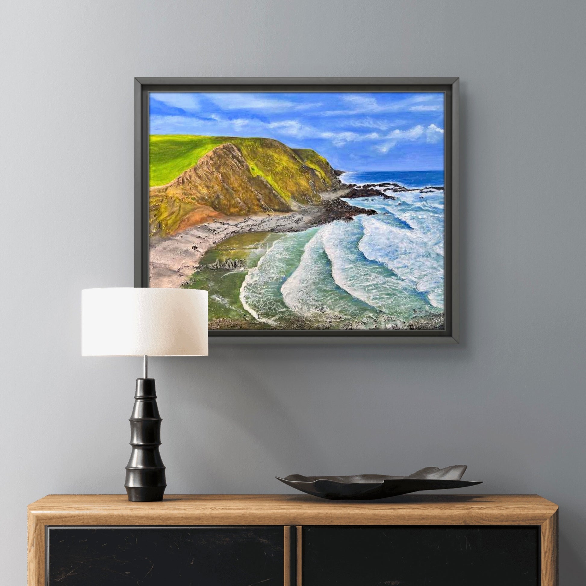 Framed in a black tray frame