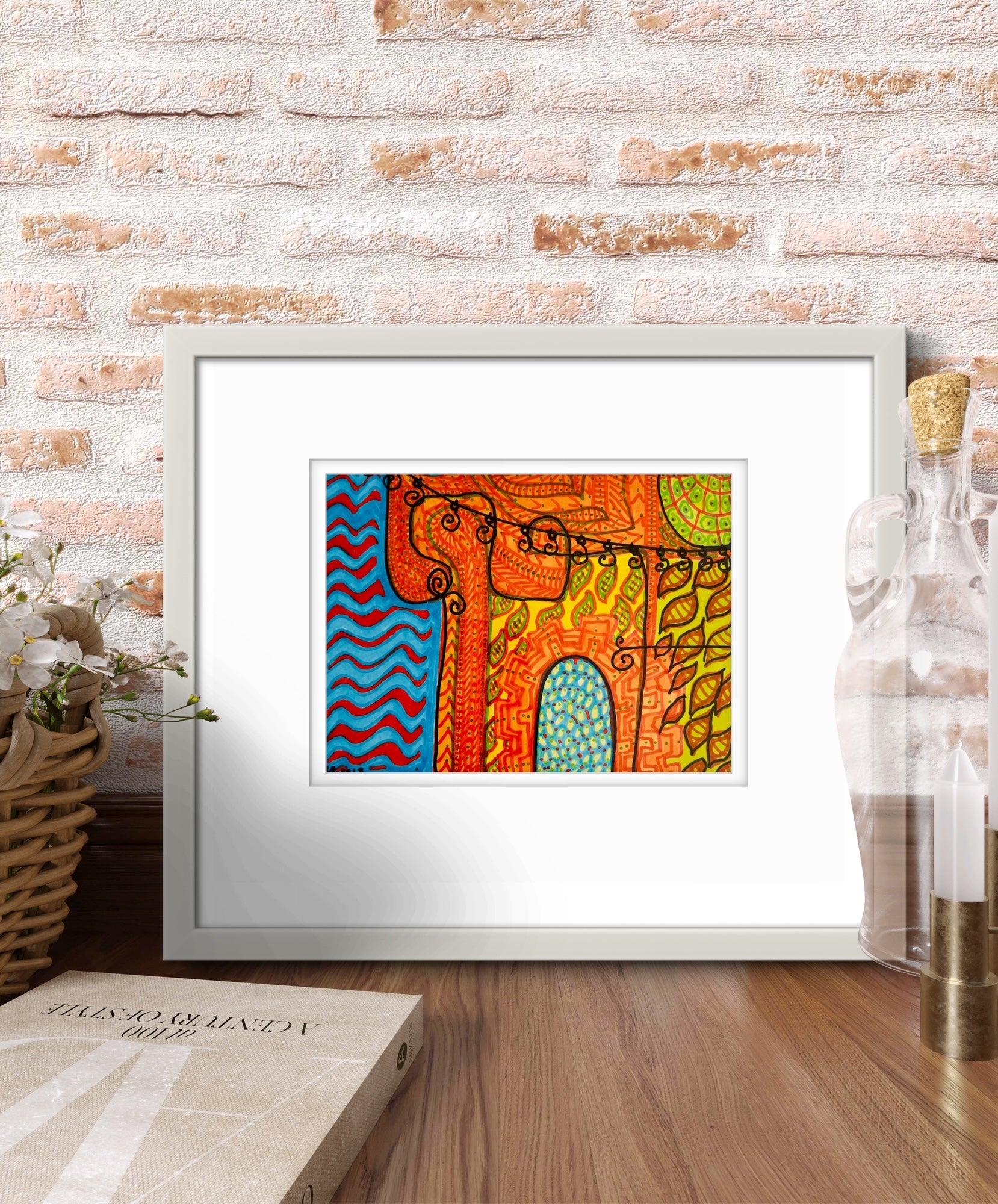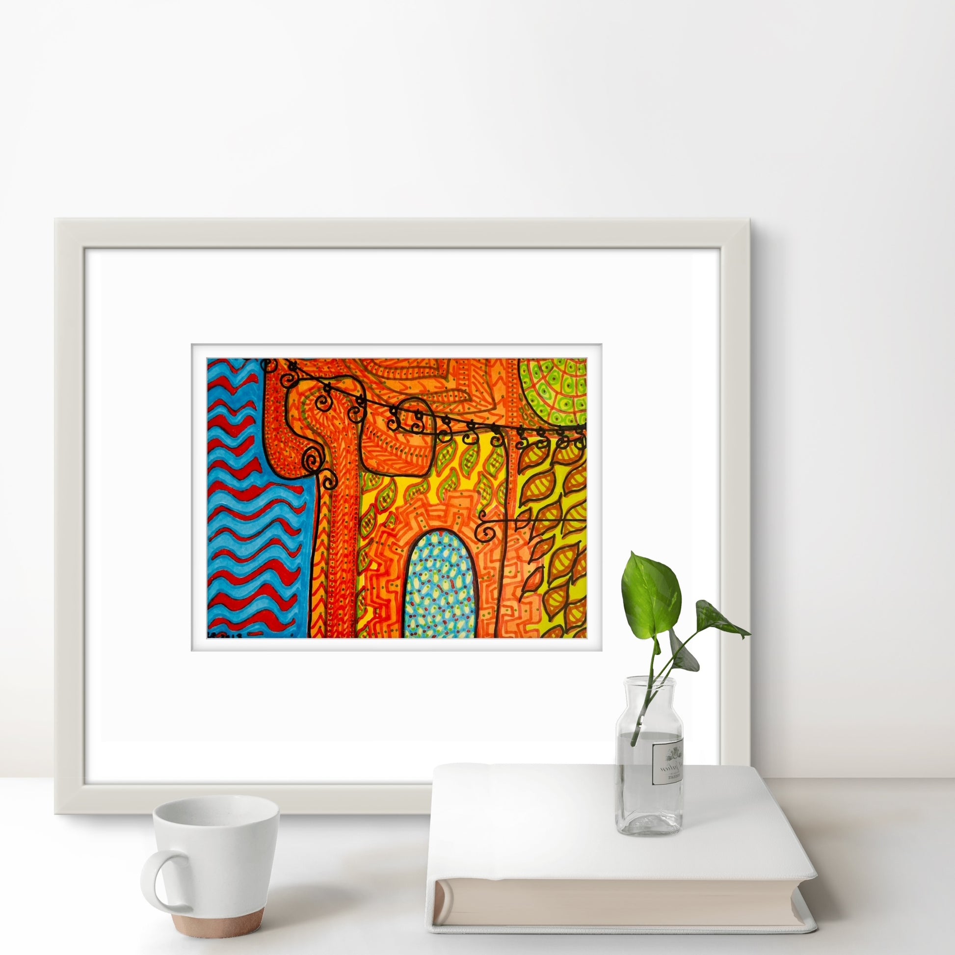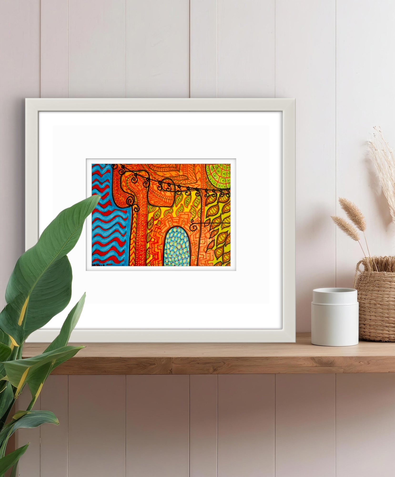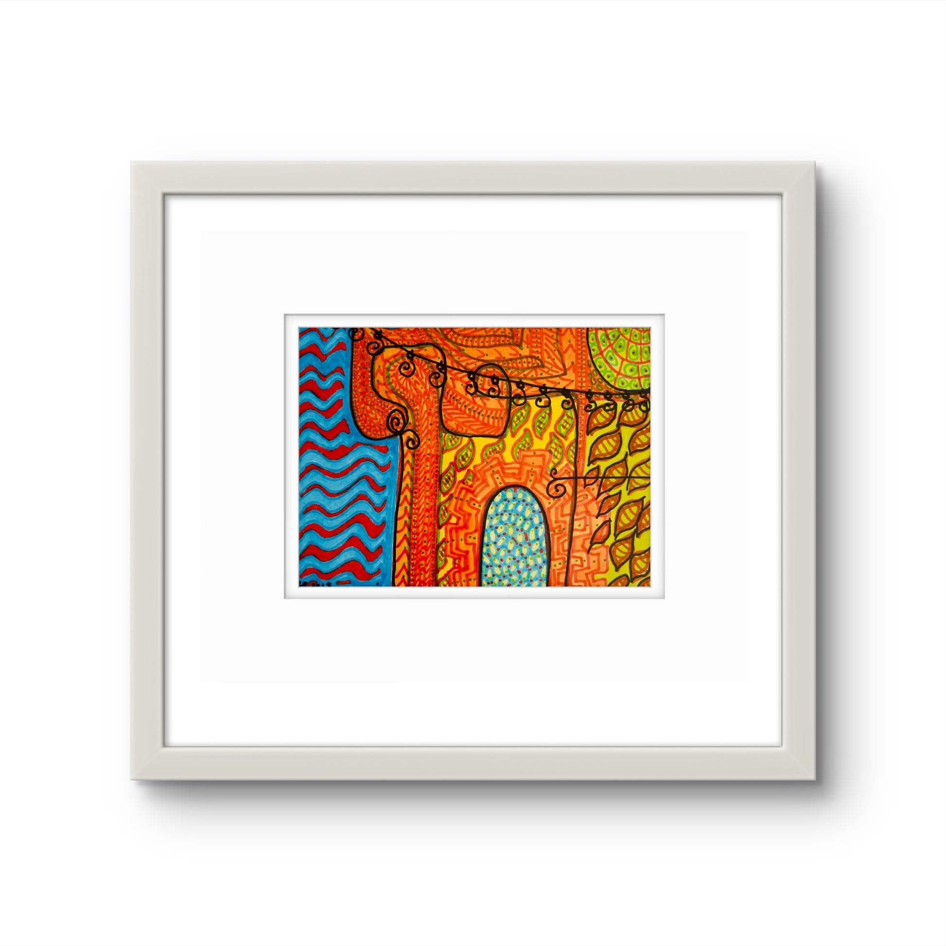 Framed in a white wooden frame