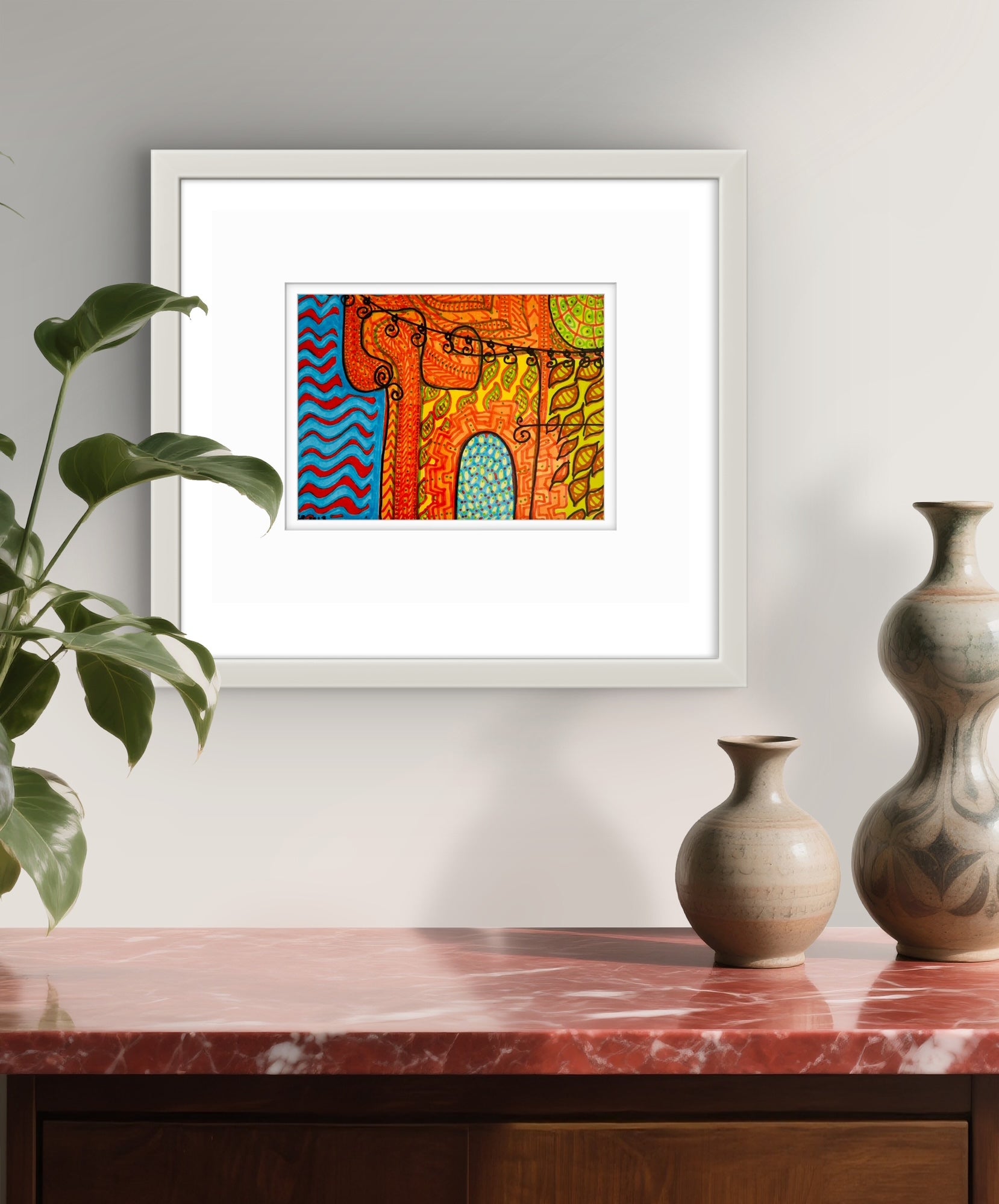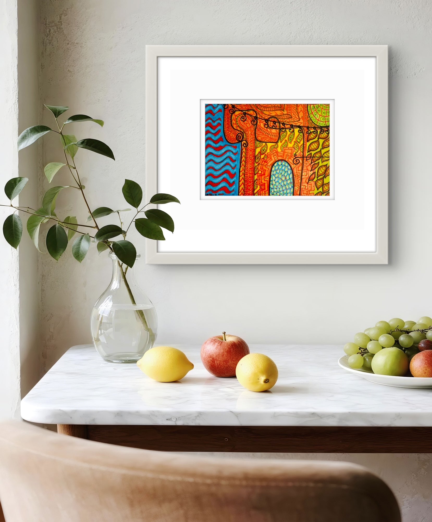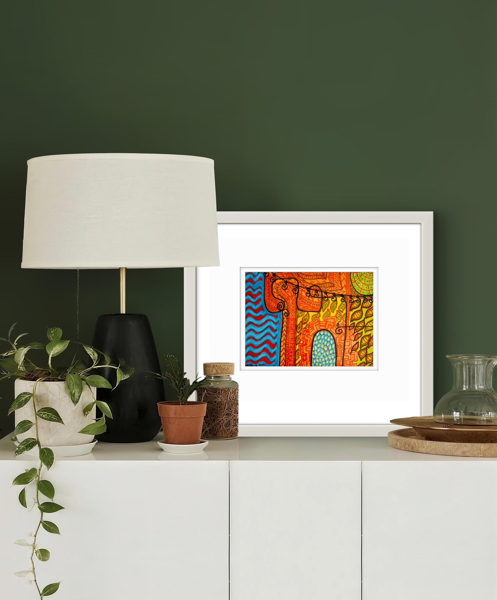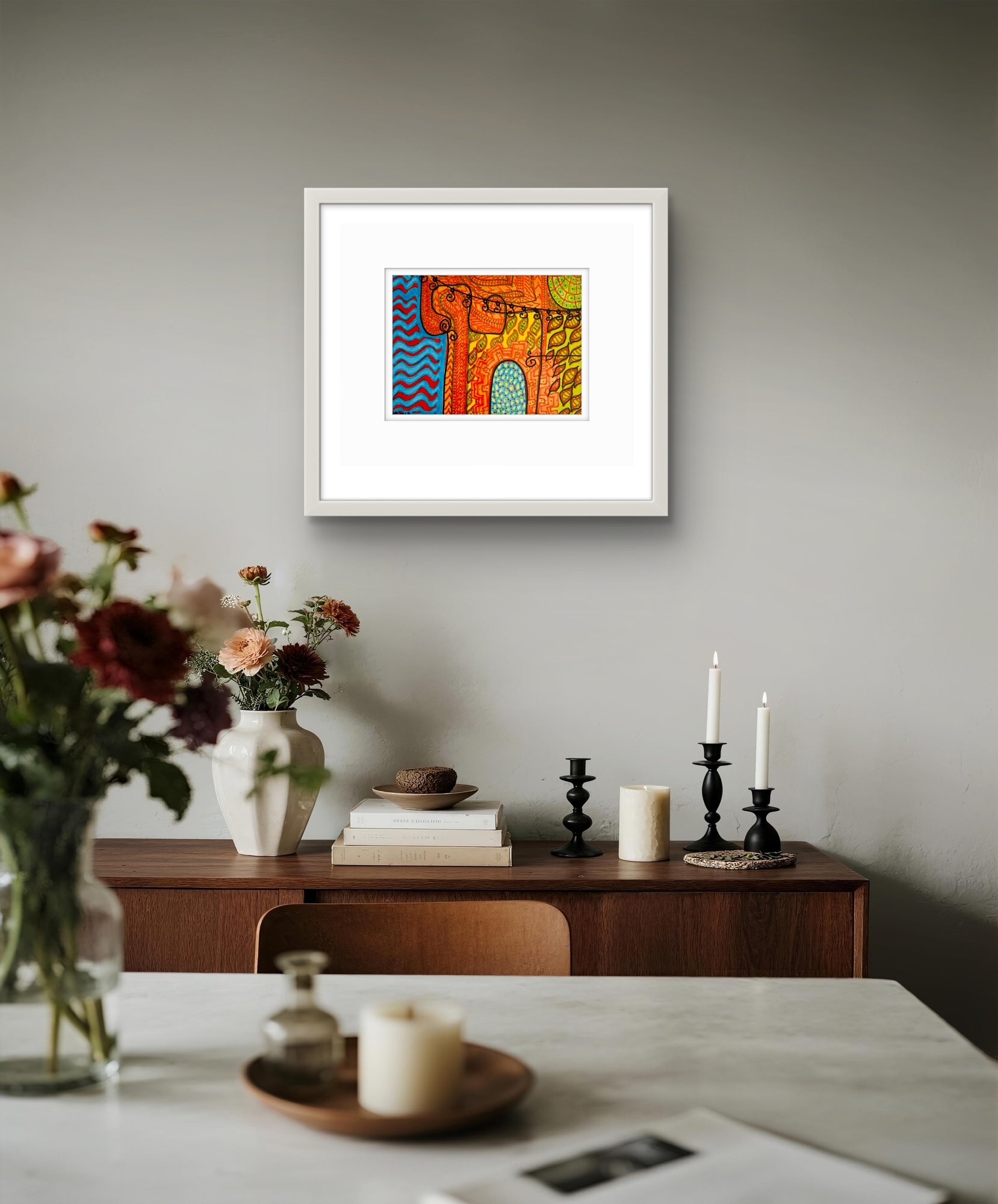 Framed in a white wooden frame