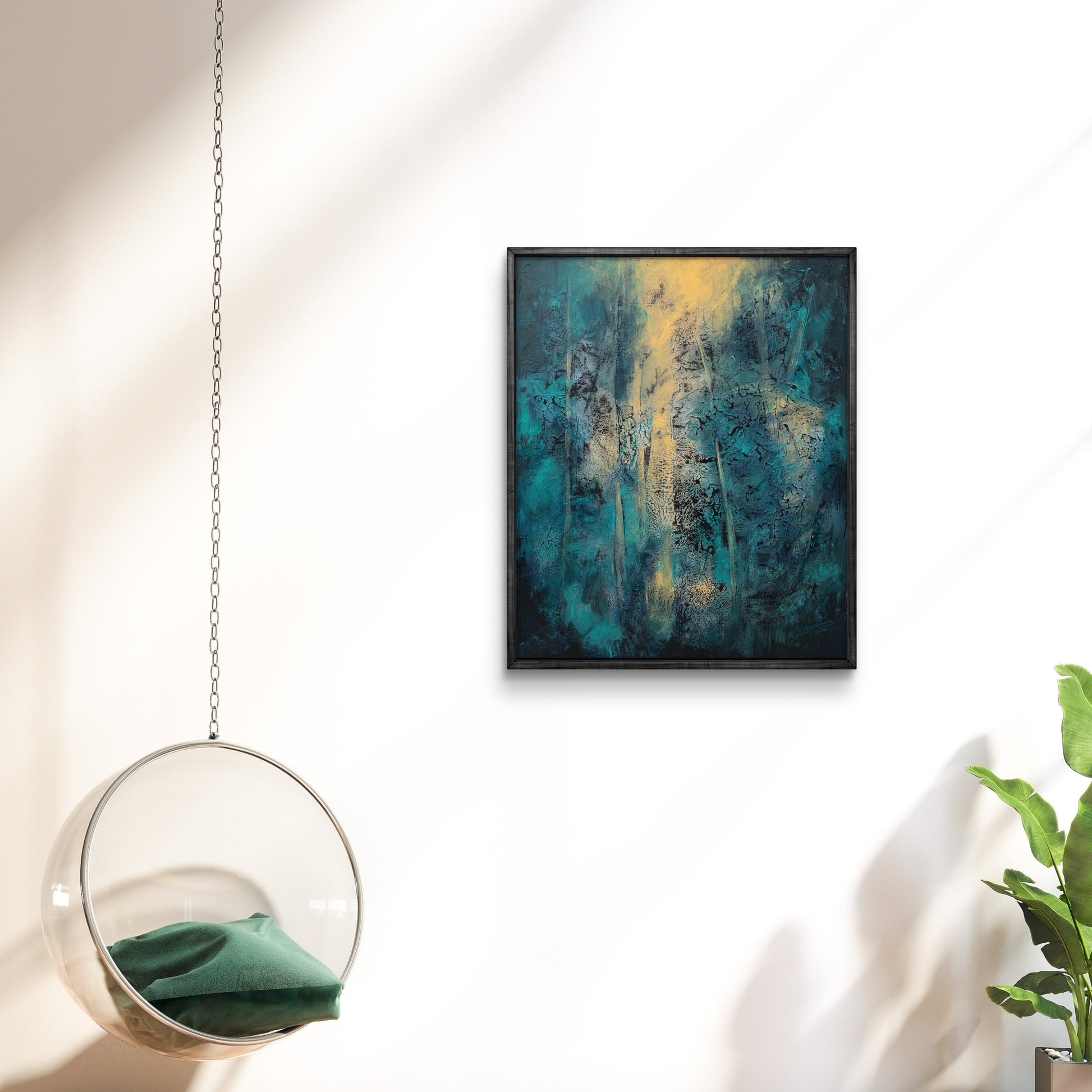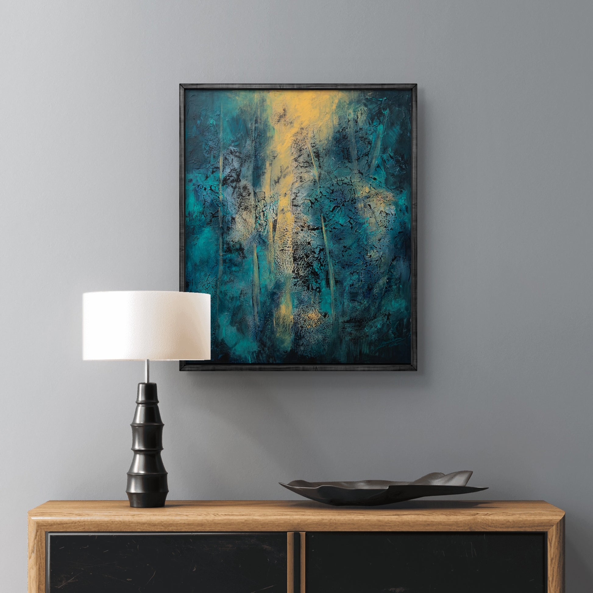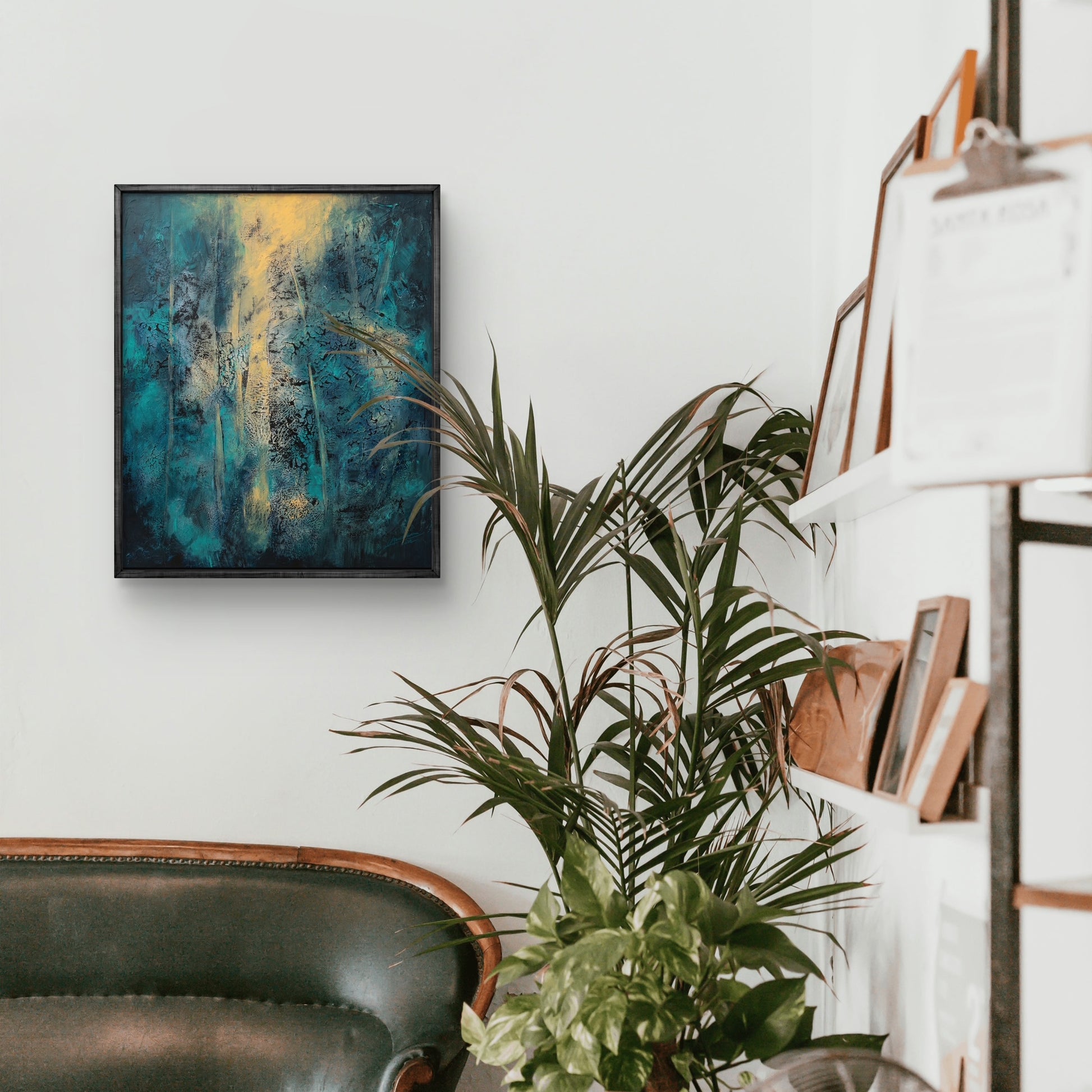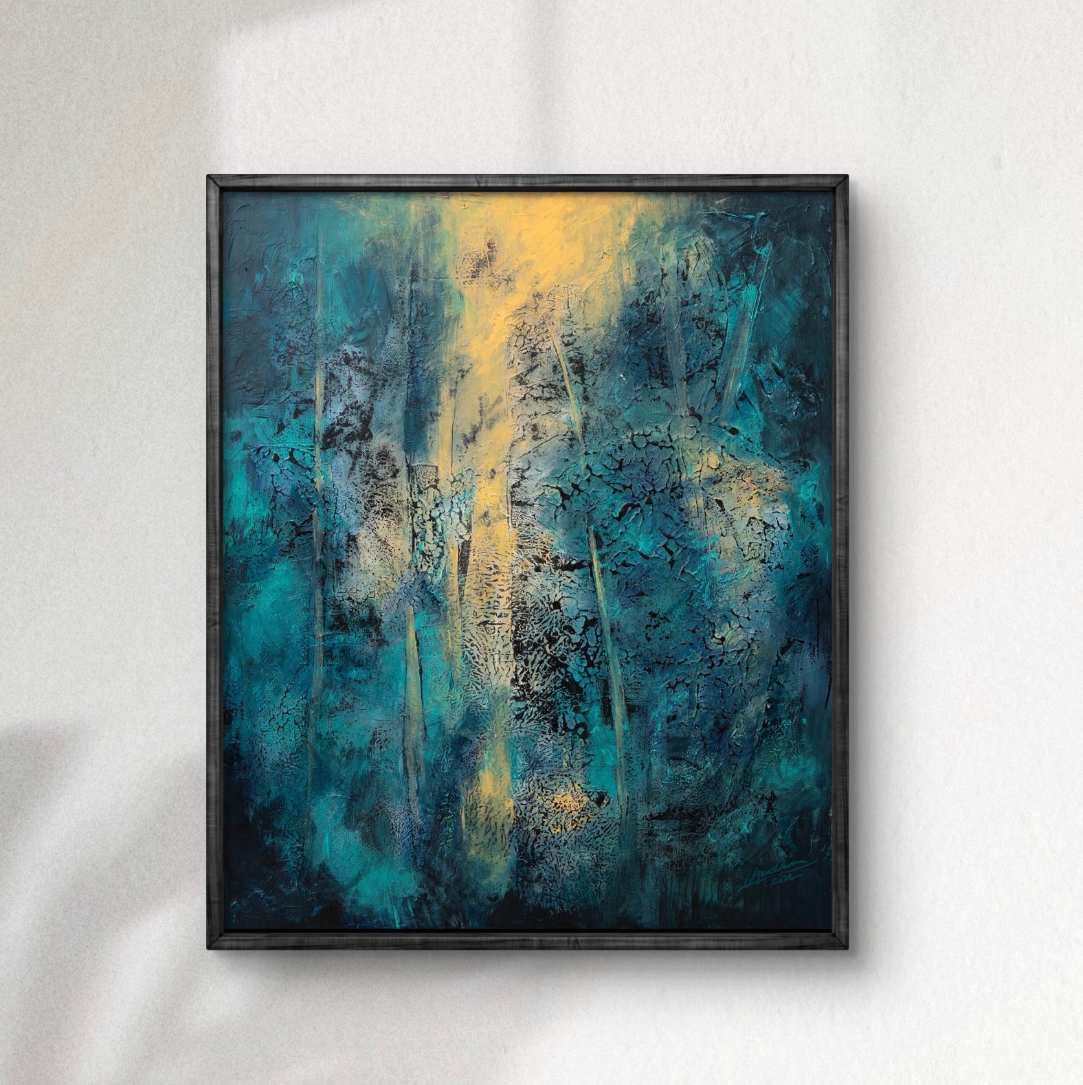 Framed in a black wooden frame