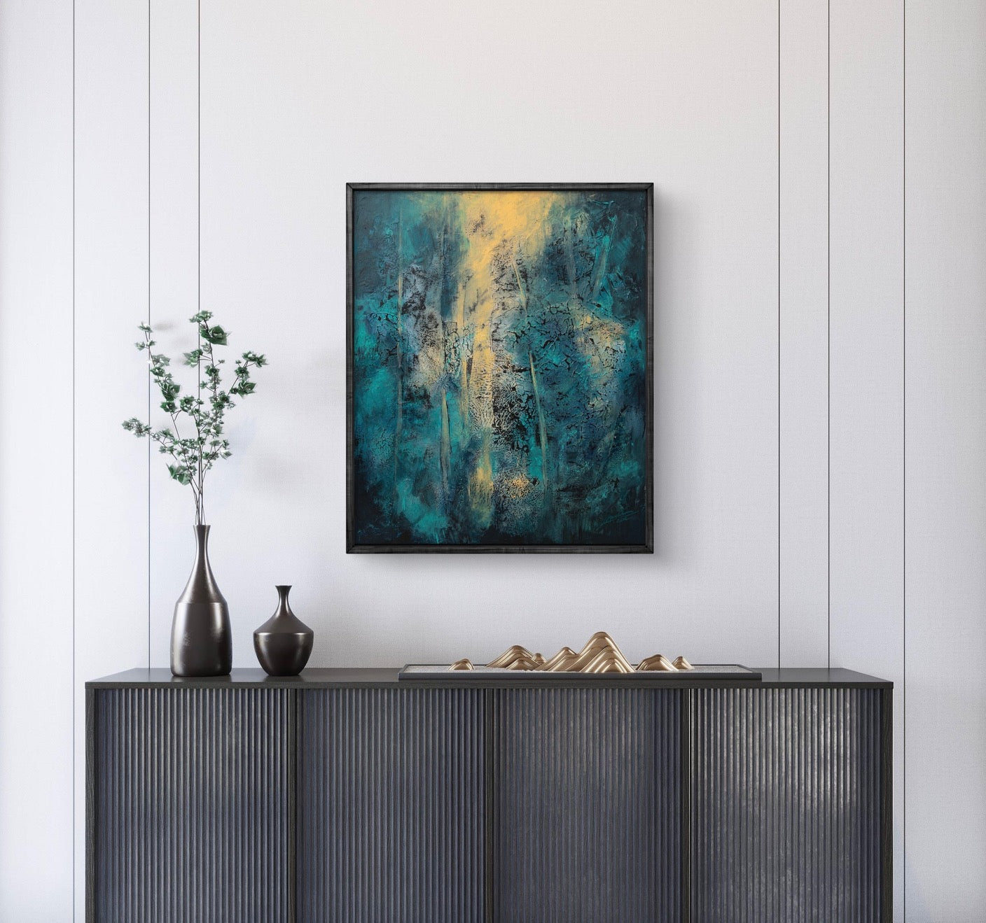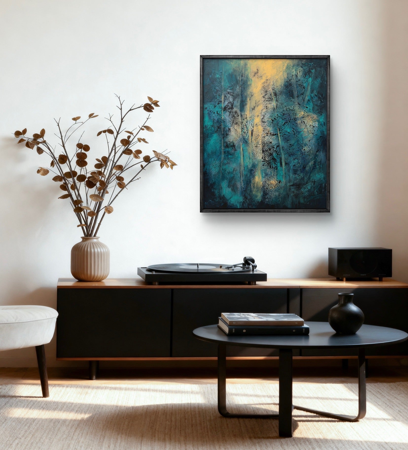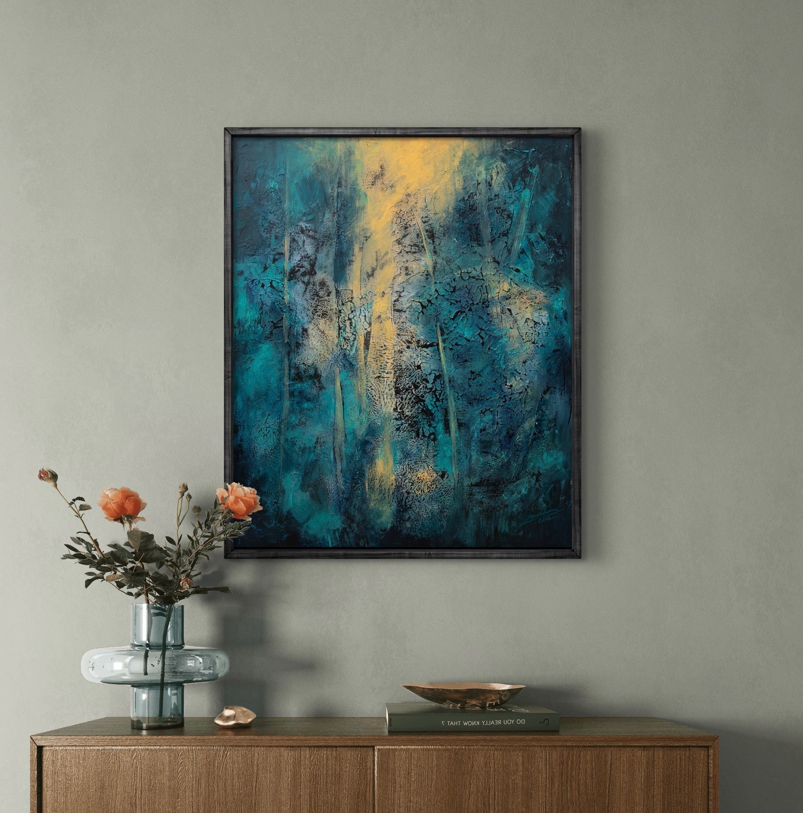 Framed in a black wooden frame