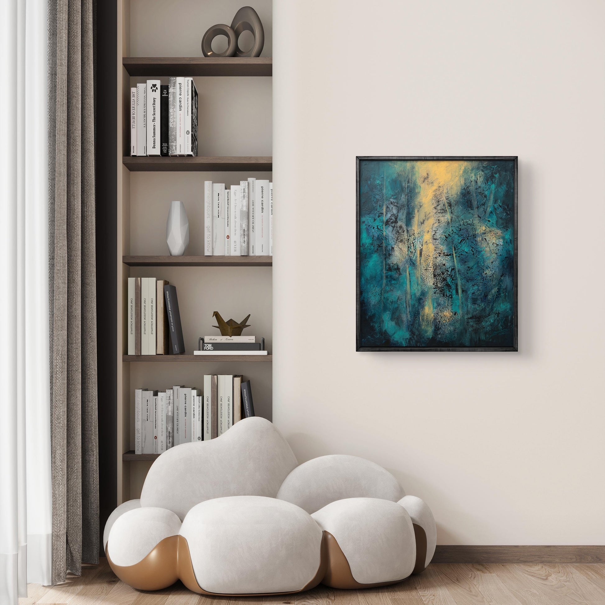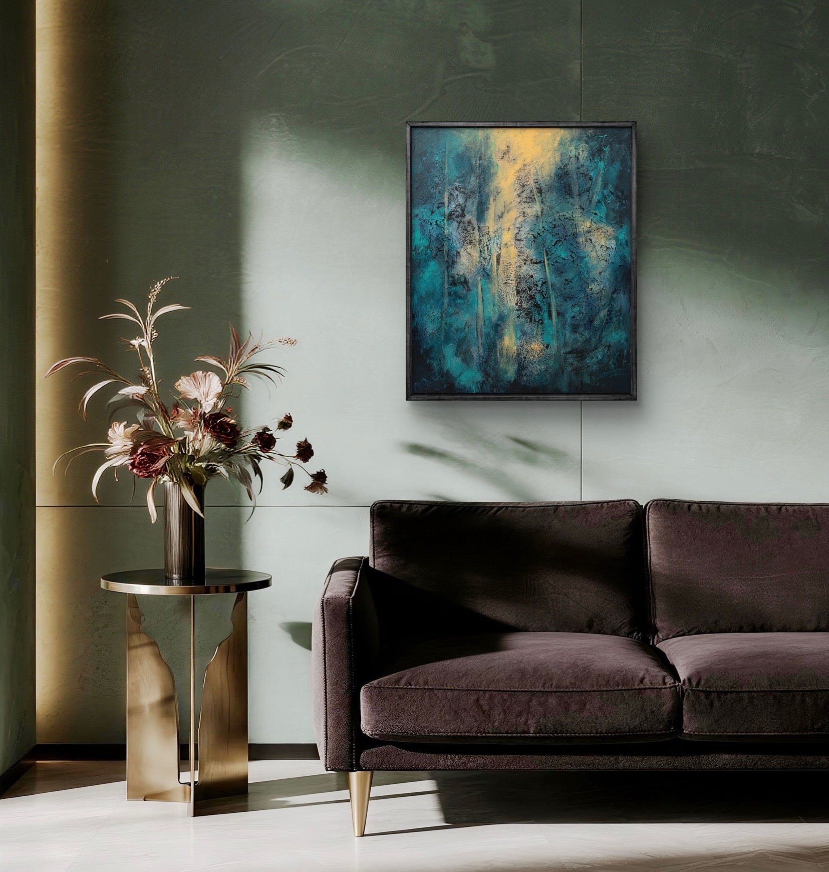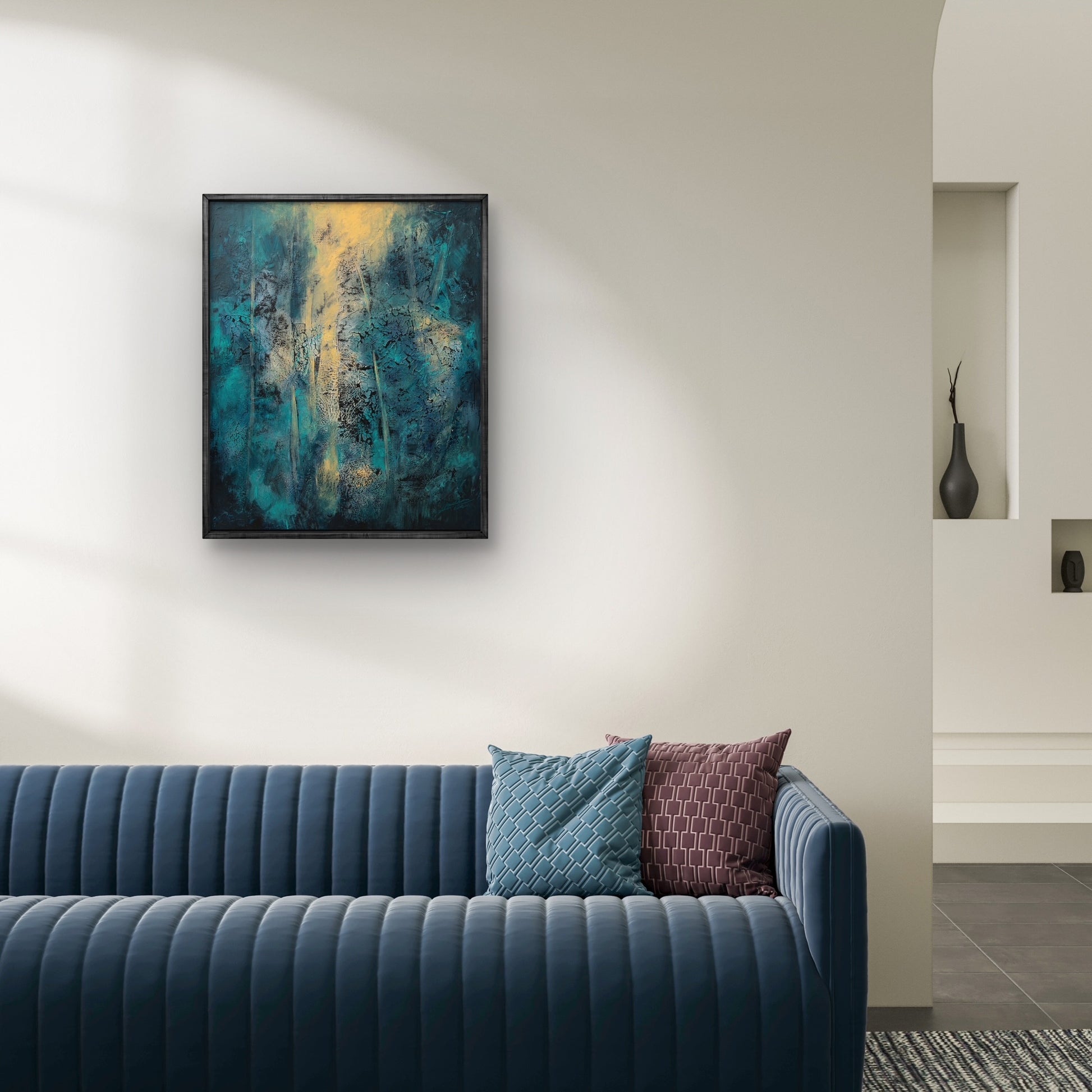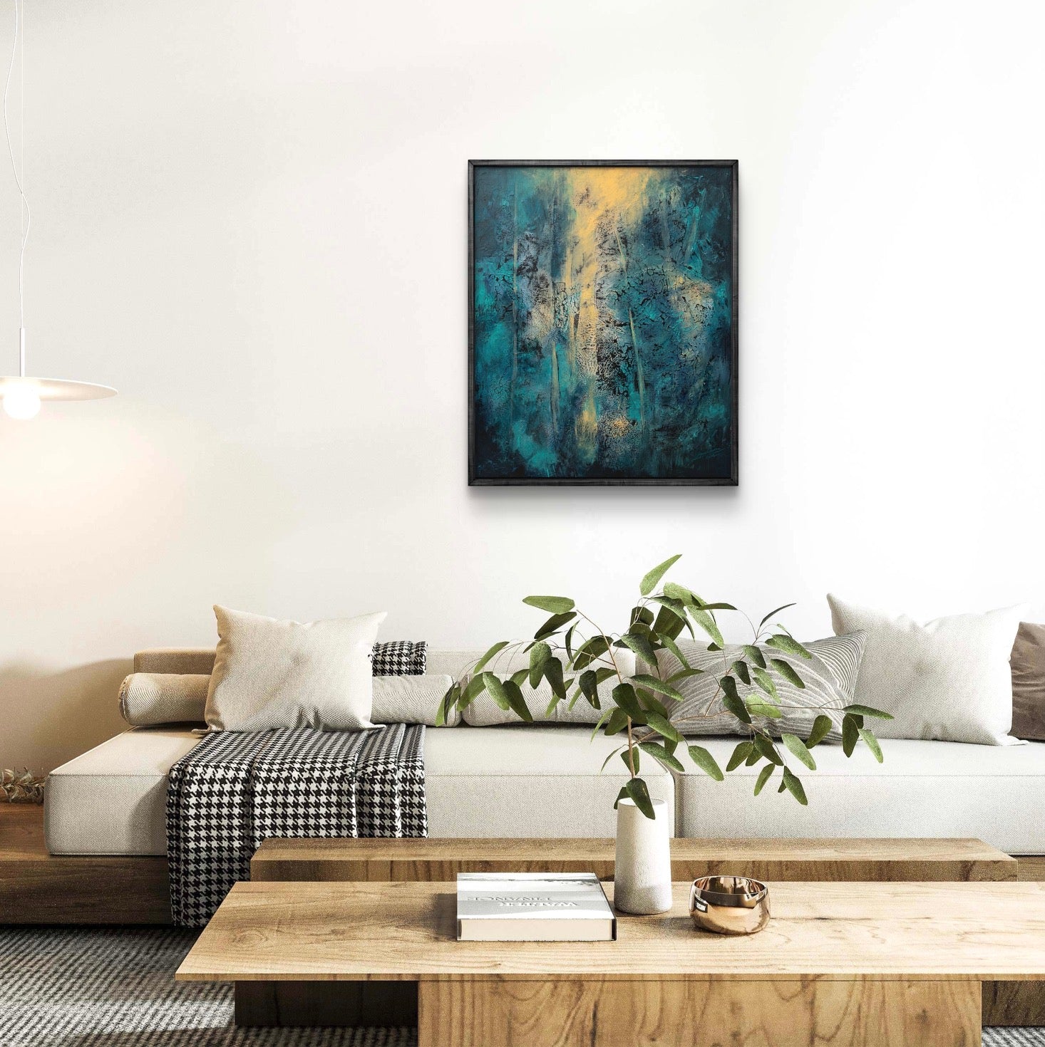 Framed in a black wooden frame