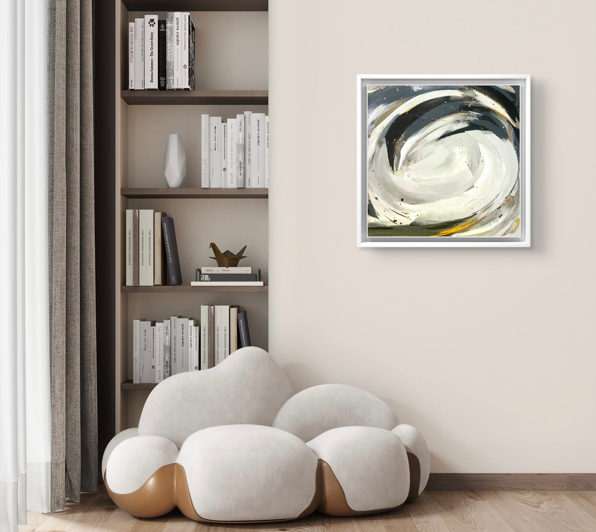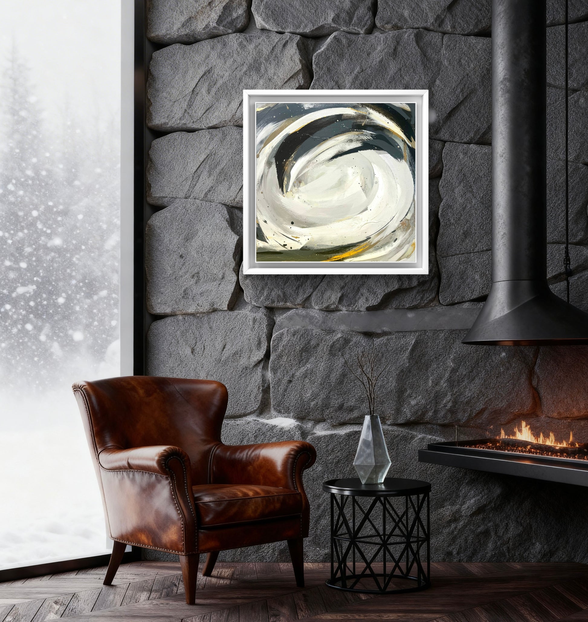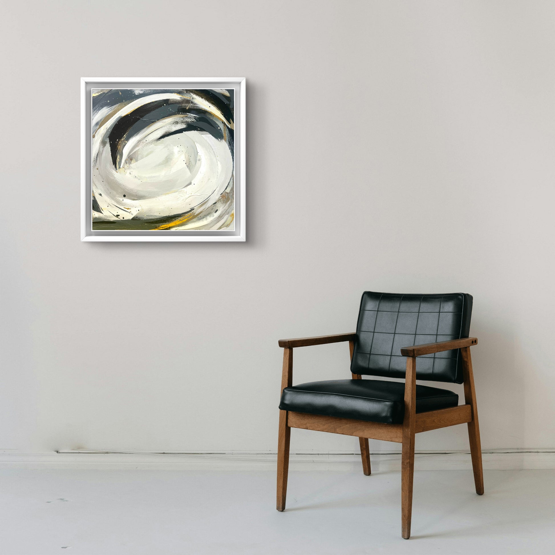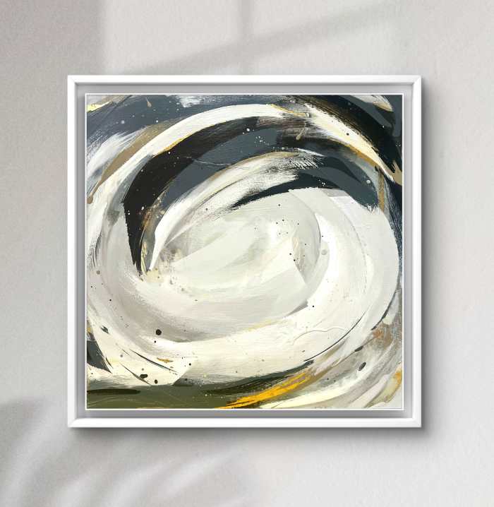 Medium: Acrylic paint, mixed media, and watercolor inks on board Dimensions: 50 x 50 cm, depth 4cm, framed 54 x 54 cm