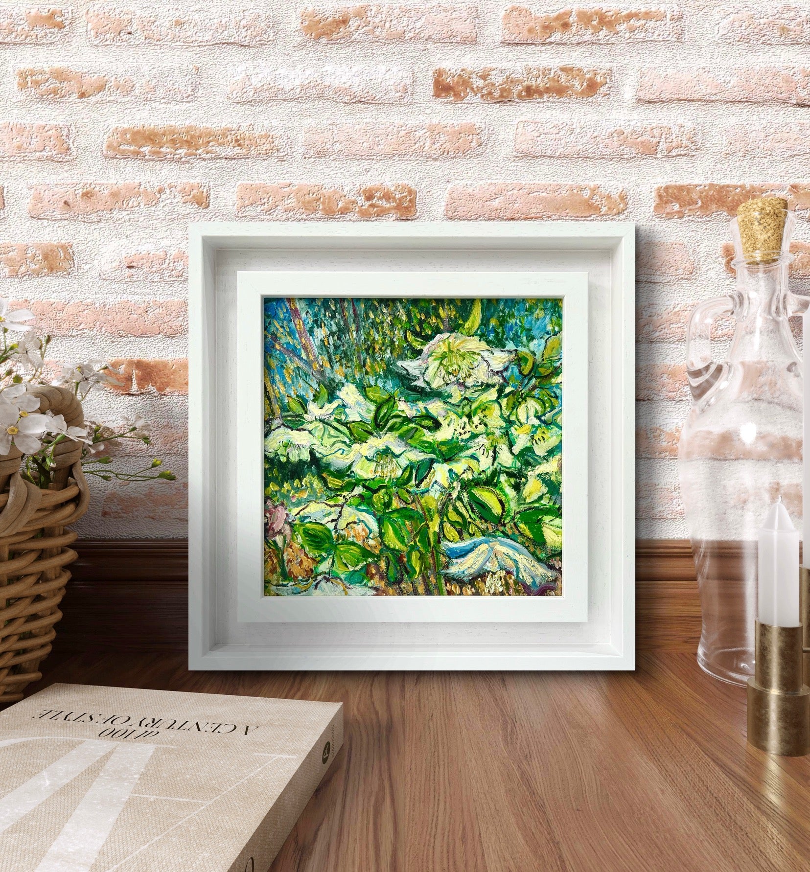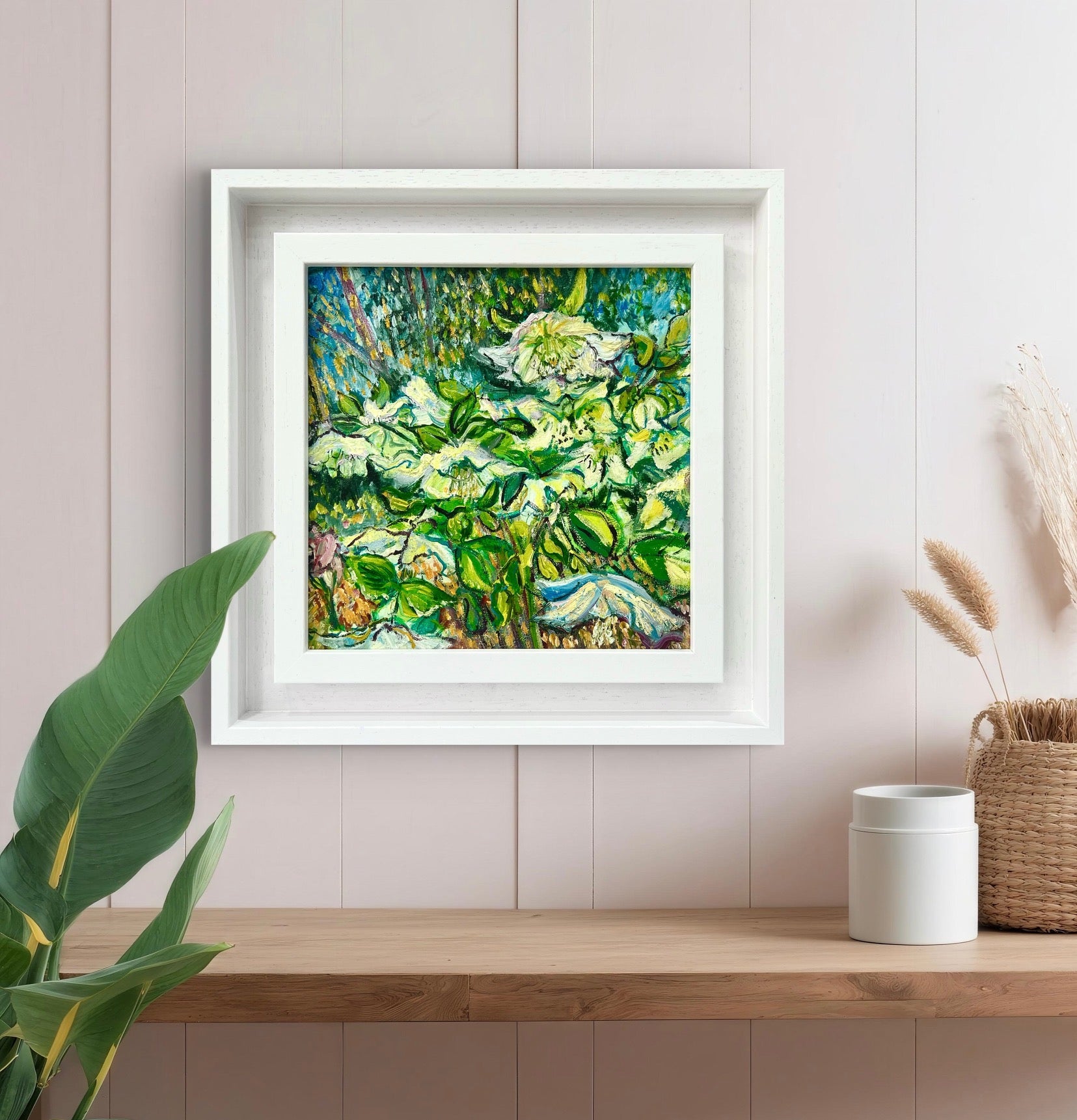 Framed in a white wooden frame