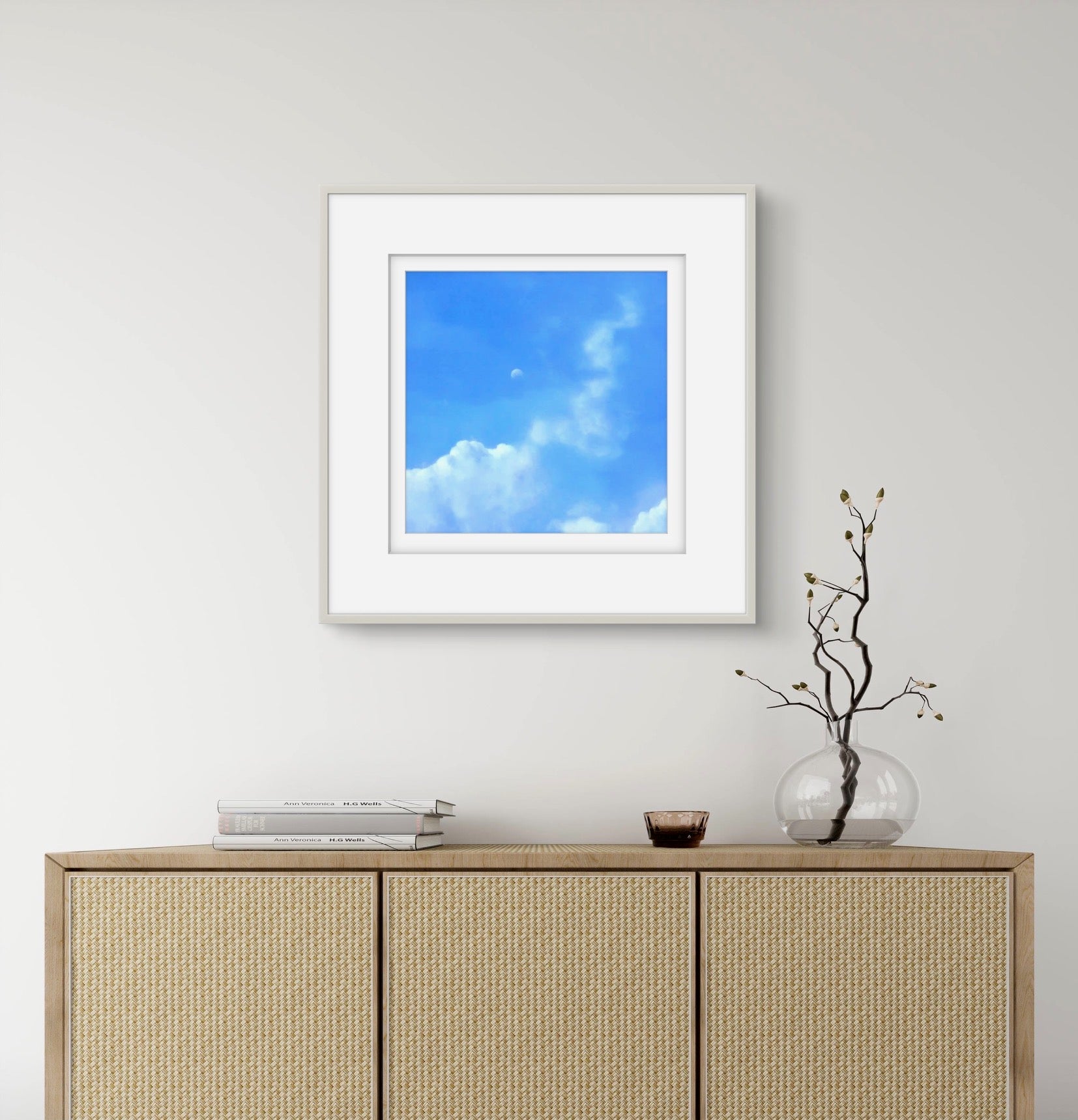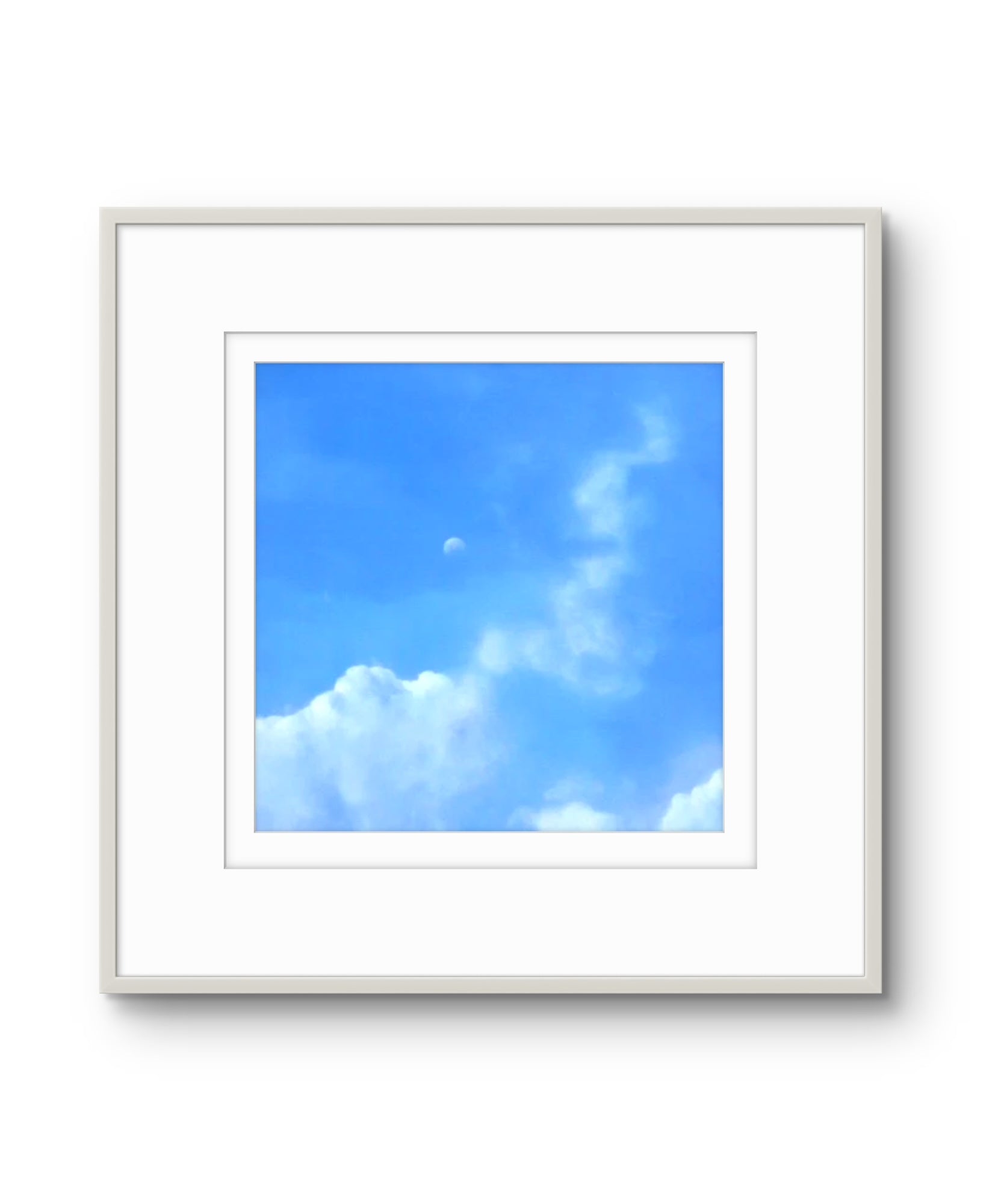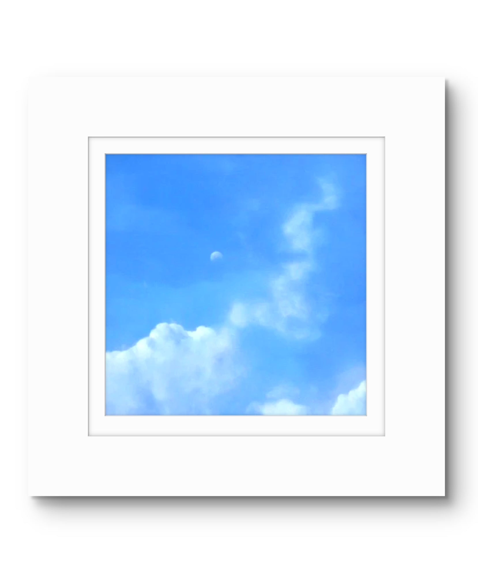 Fine Art Giclée Print depicting a view of the moon against a blue sky and clouds