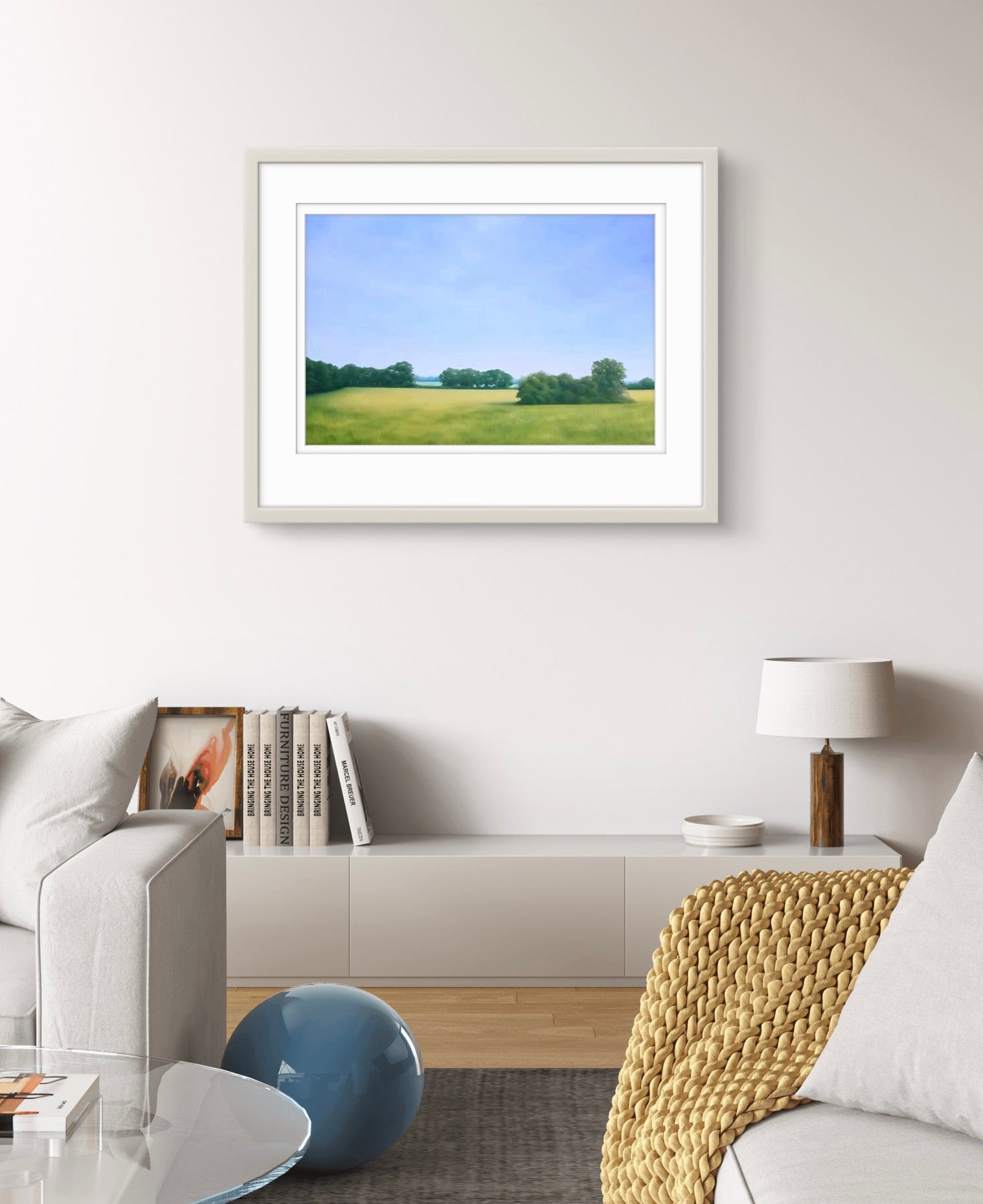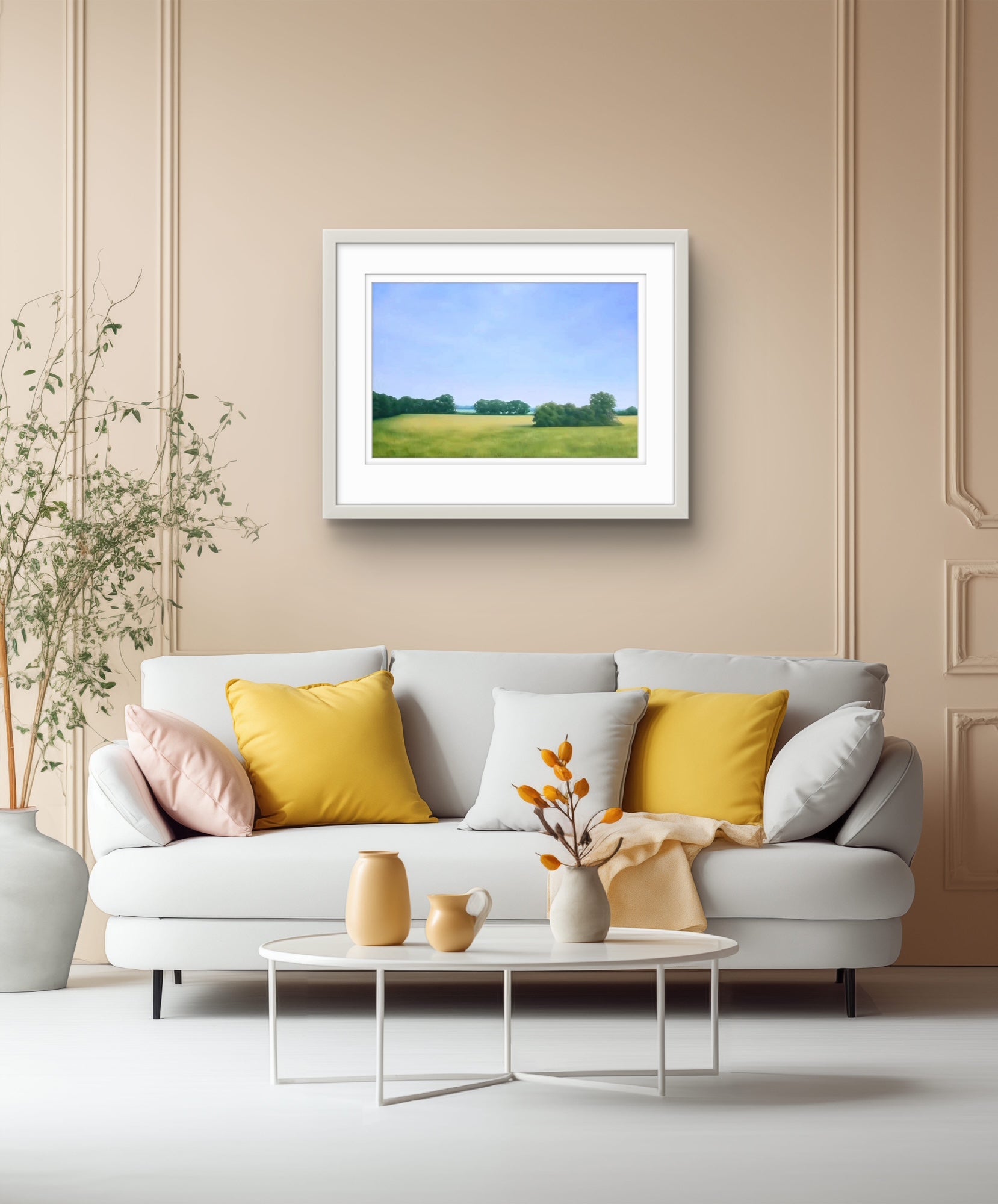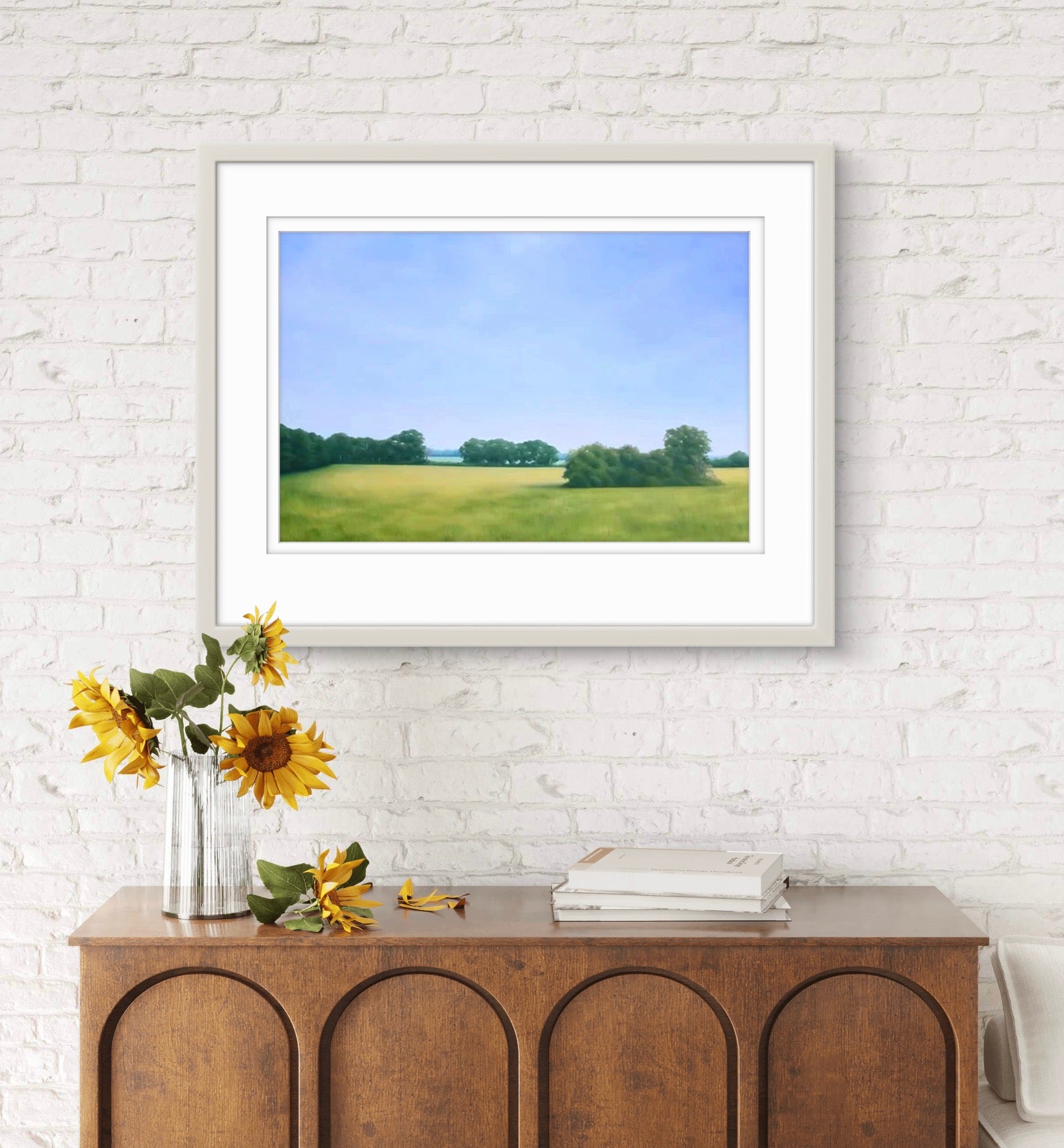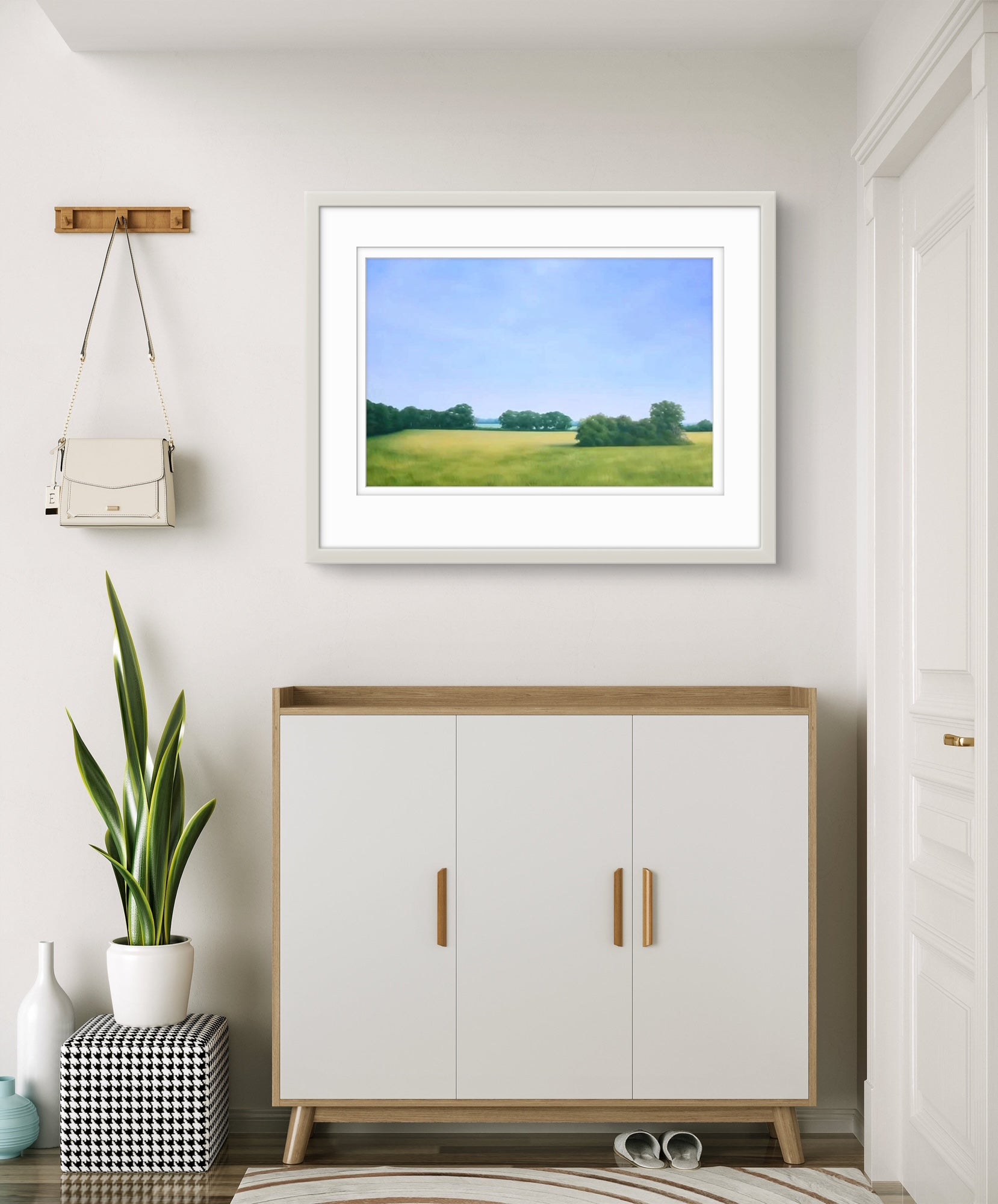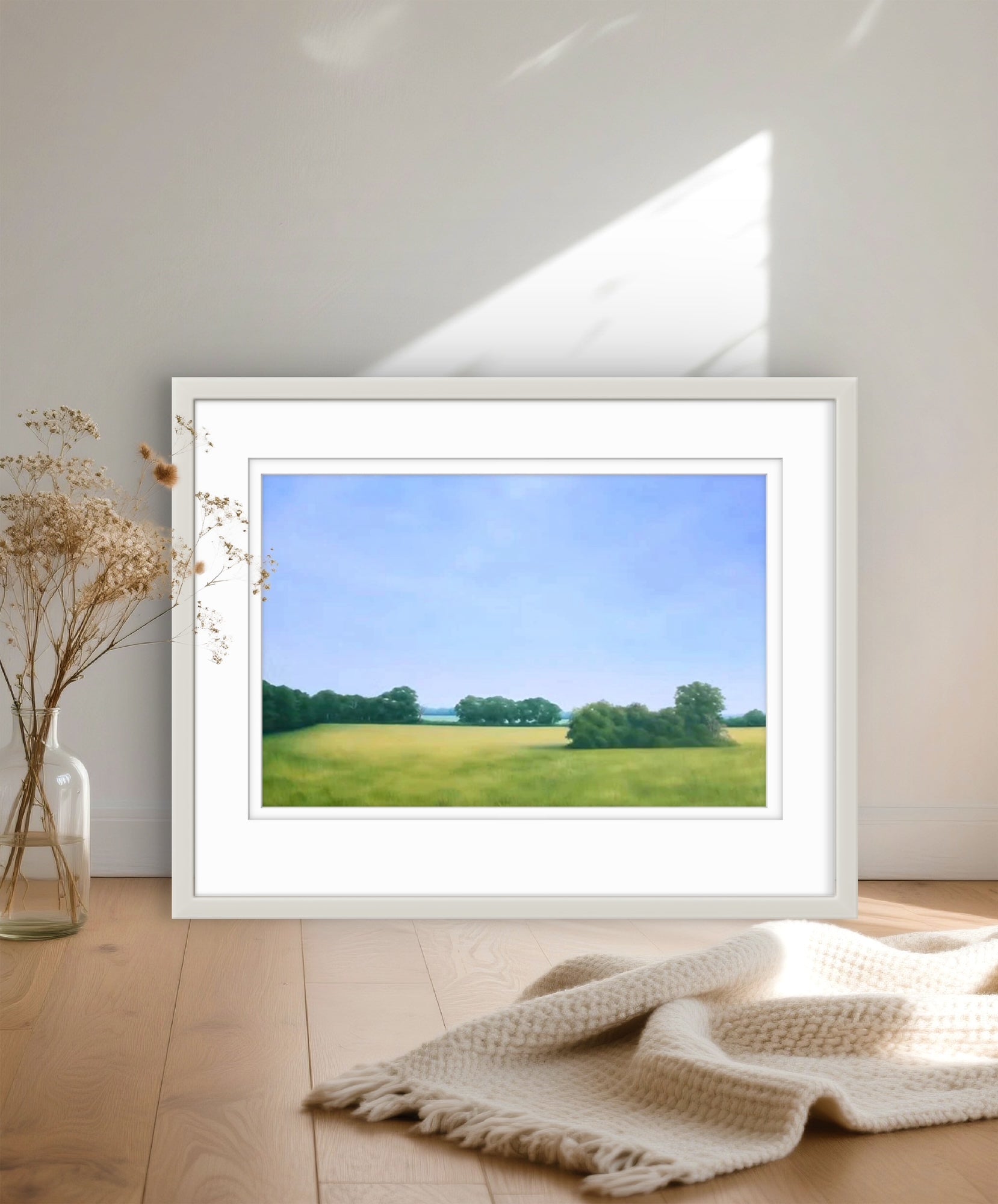 Medium: Fine art giclée print with a white mount. Framed in a white wooden frame