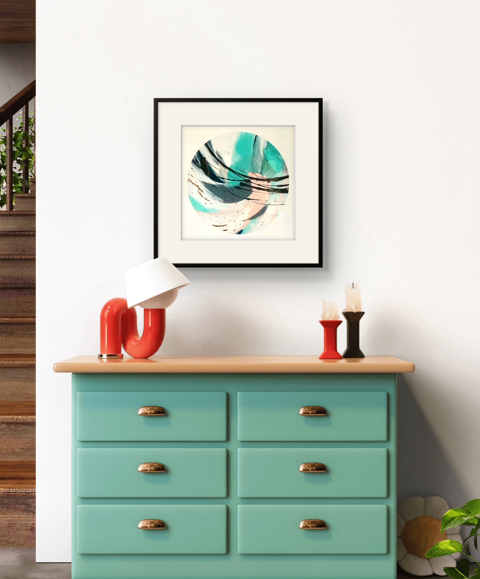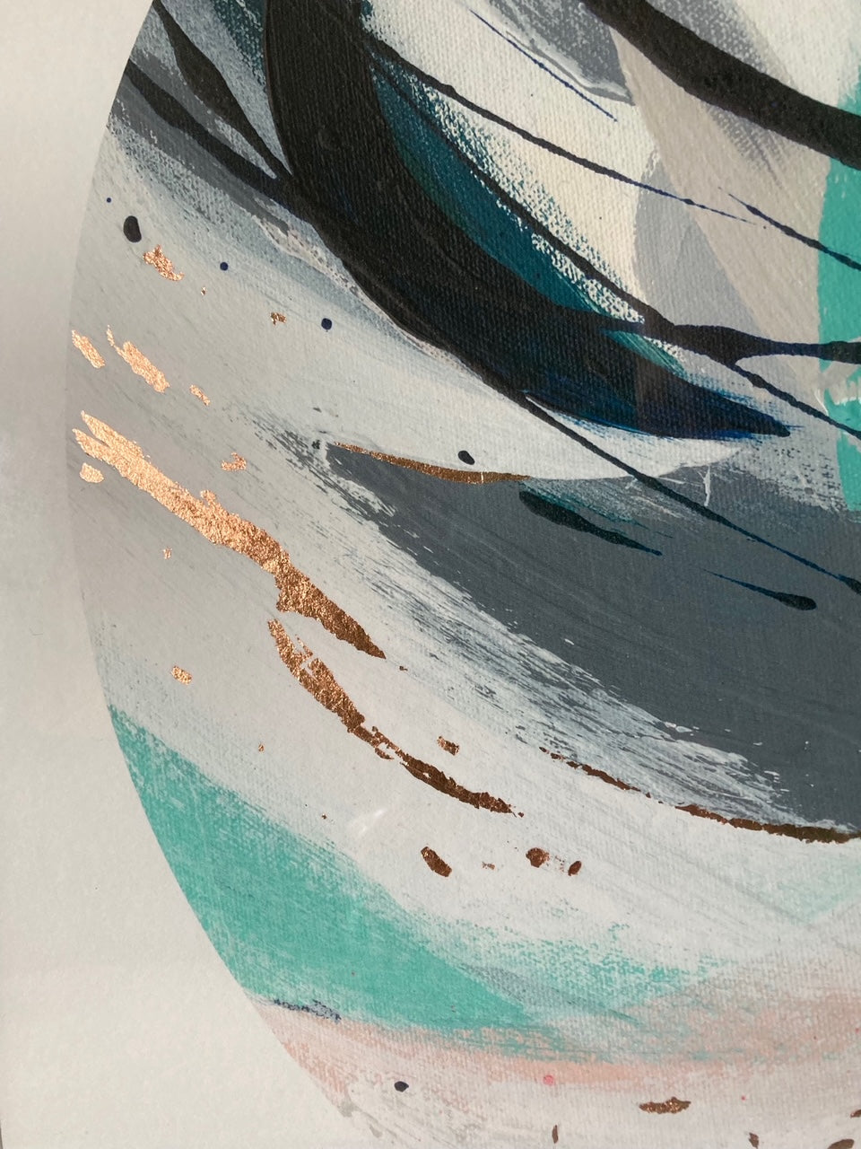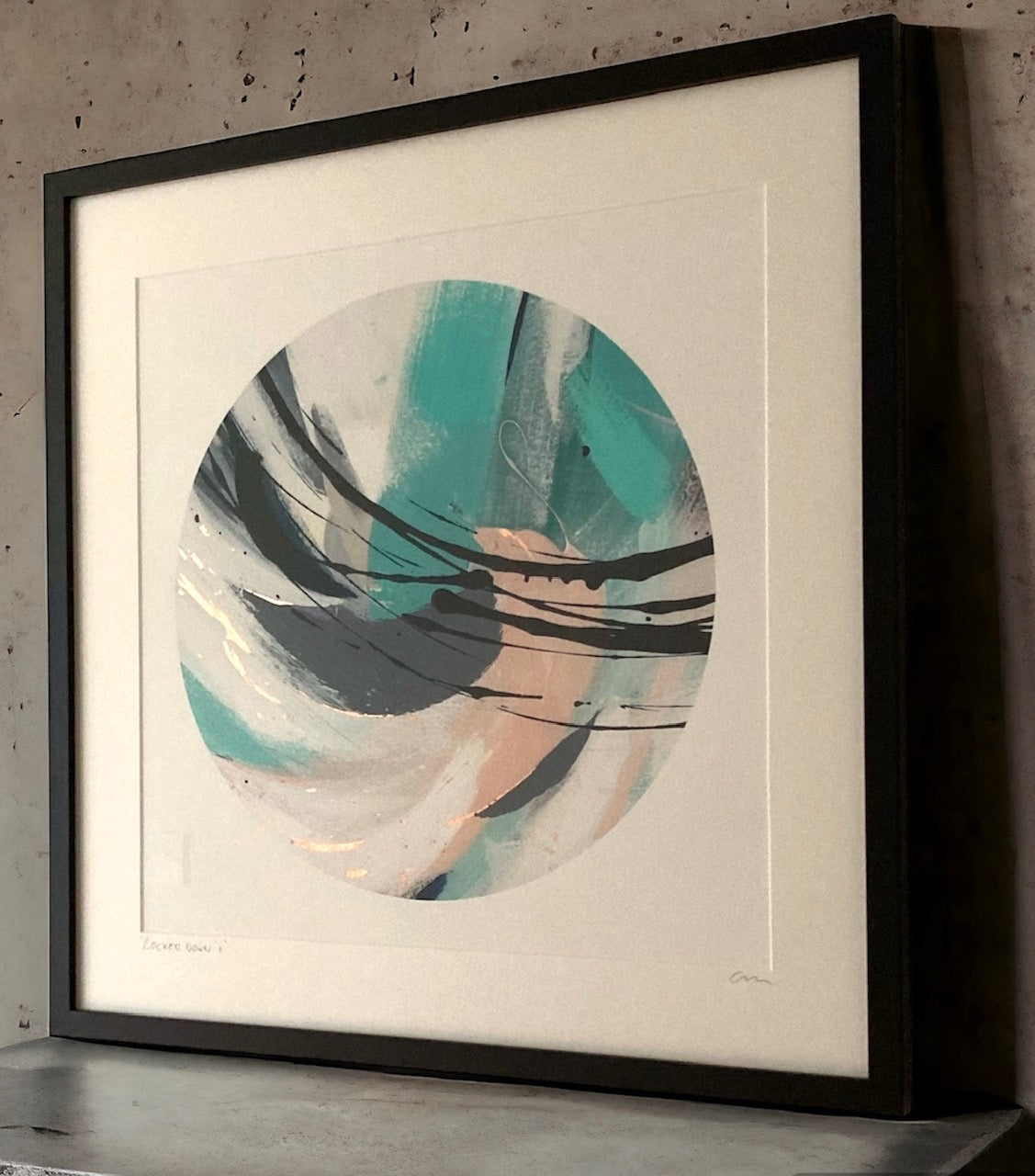 Medium: Hand-gilded giclée fine art print. The section is taken from the original painting, cropped as a circle, and printed onto lovely thick paper using archival inks. Copper leaf is applied by hand, making this a unique piece.