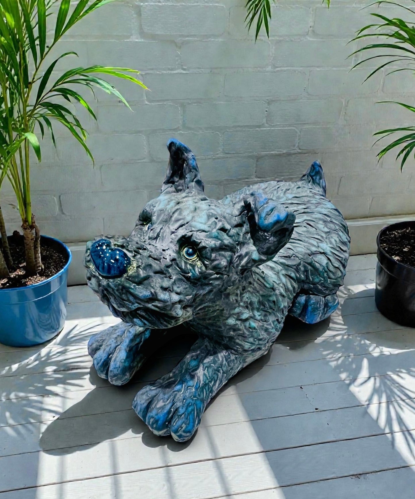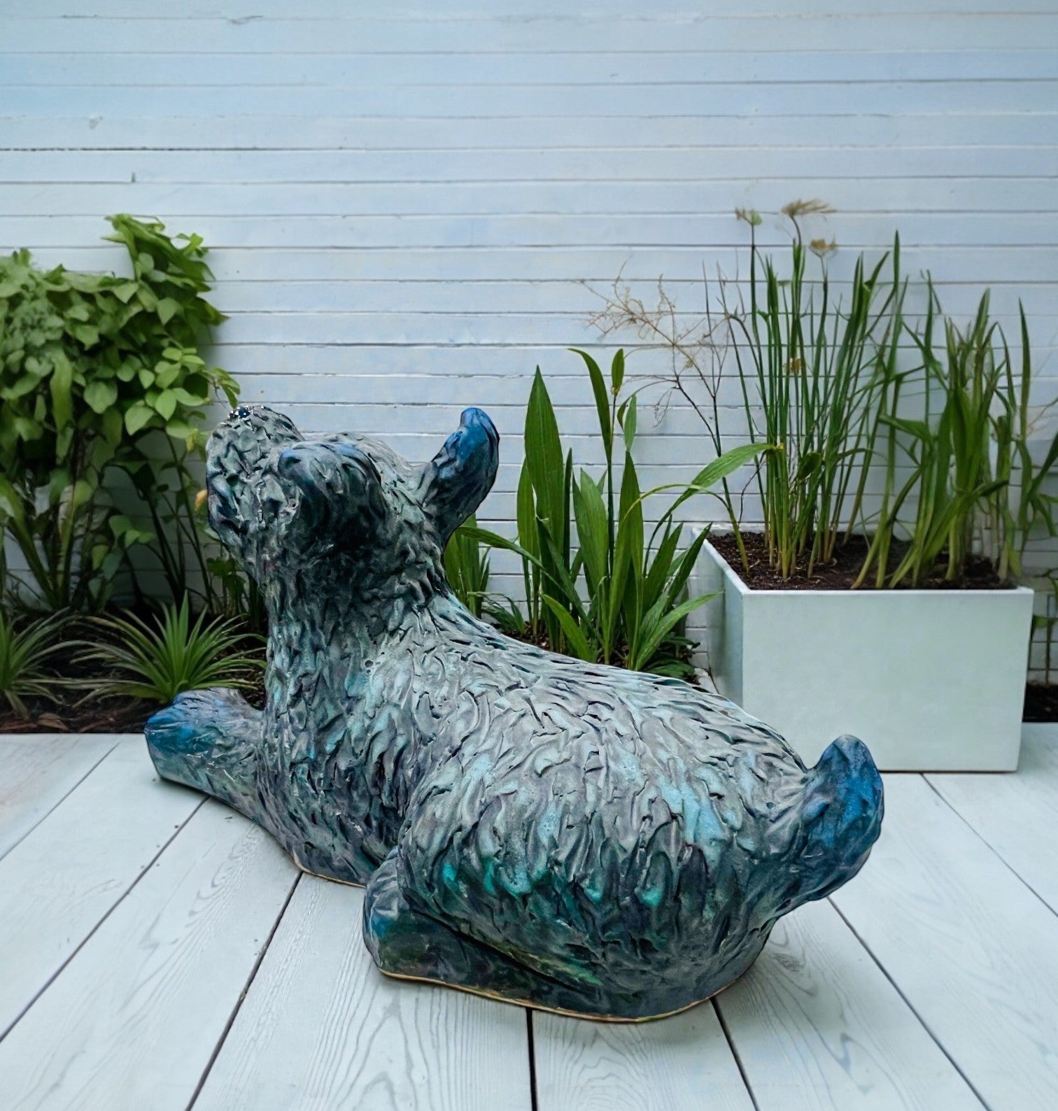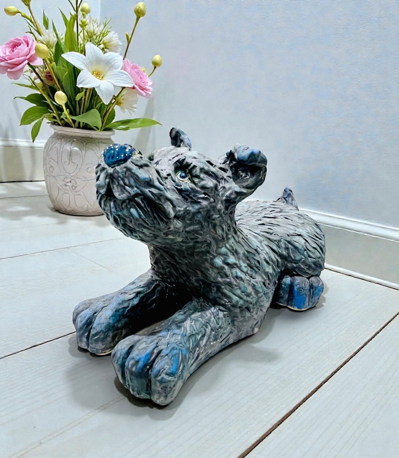 Ceramic figurine of a blue lying dog
