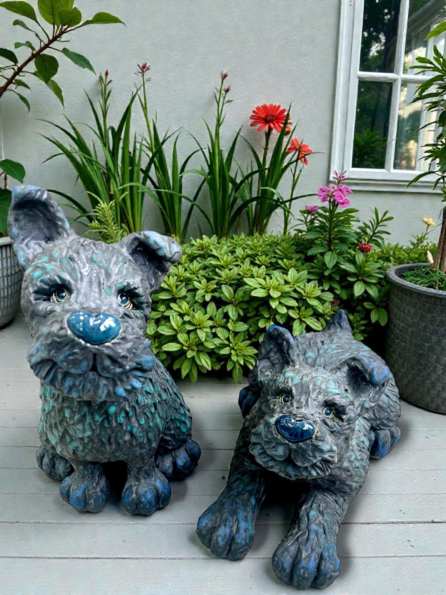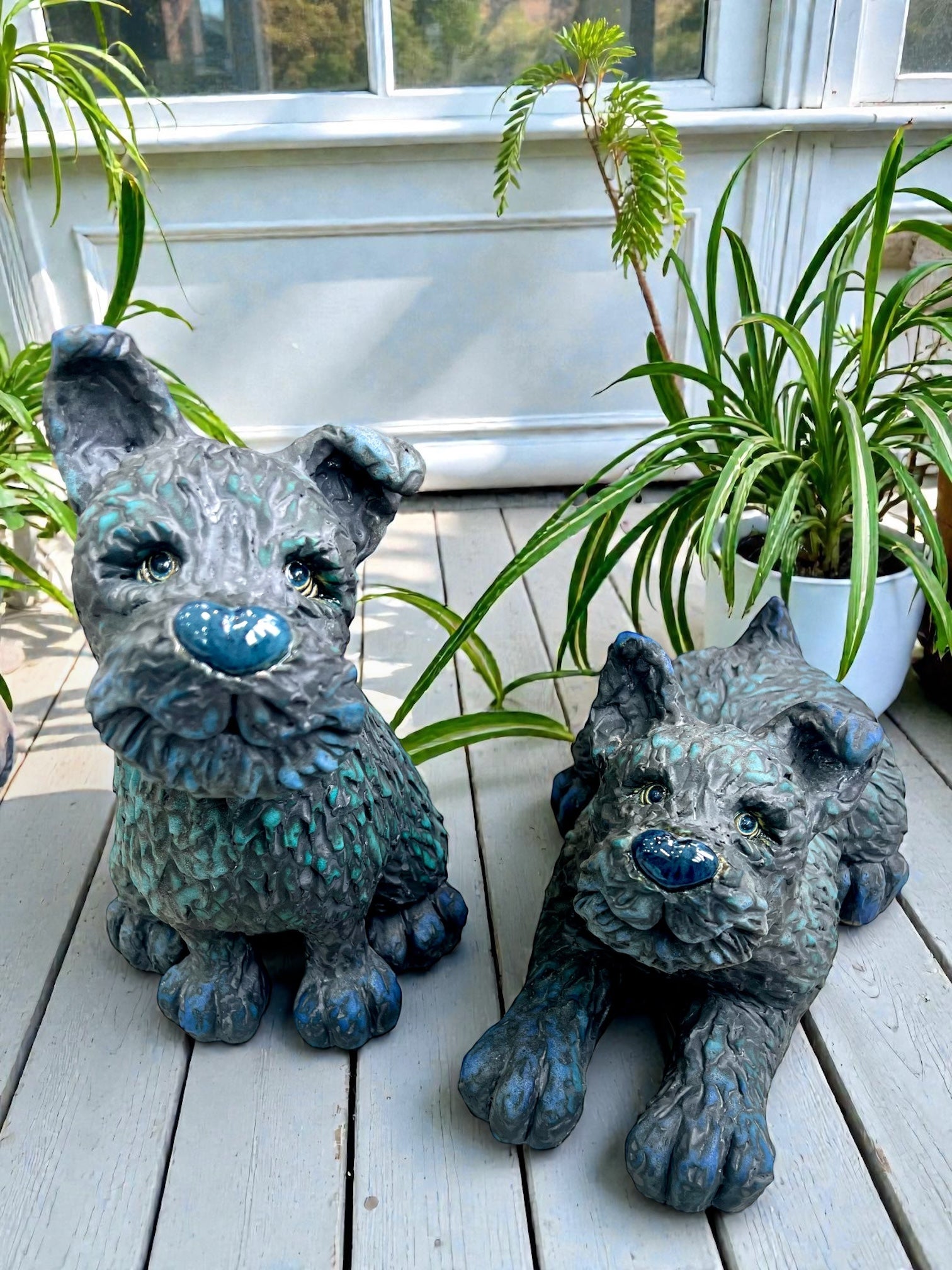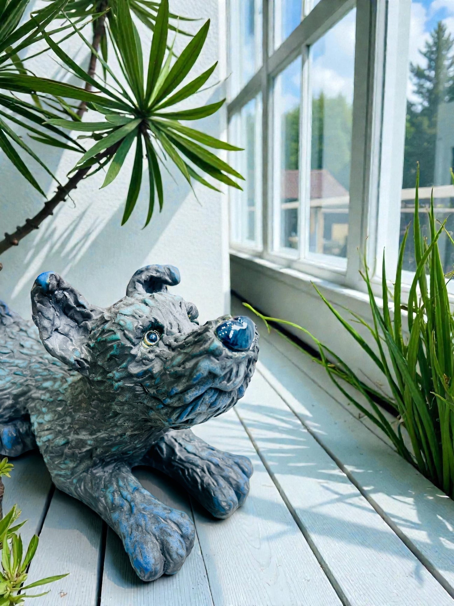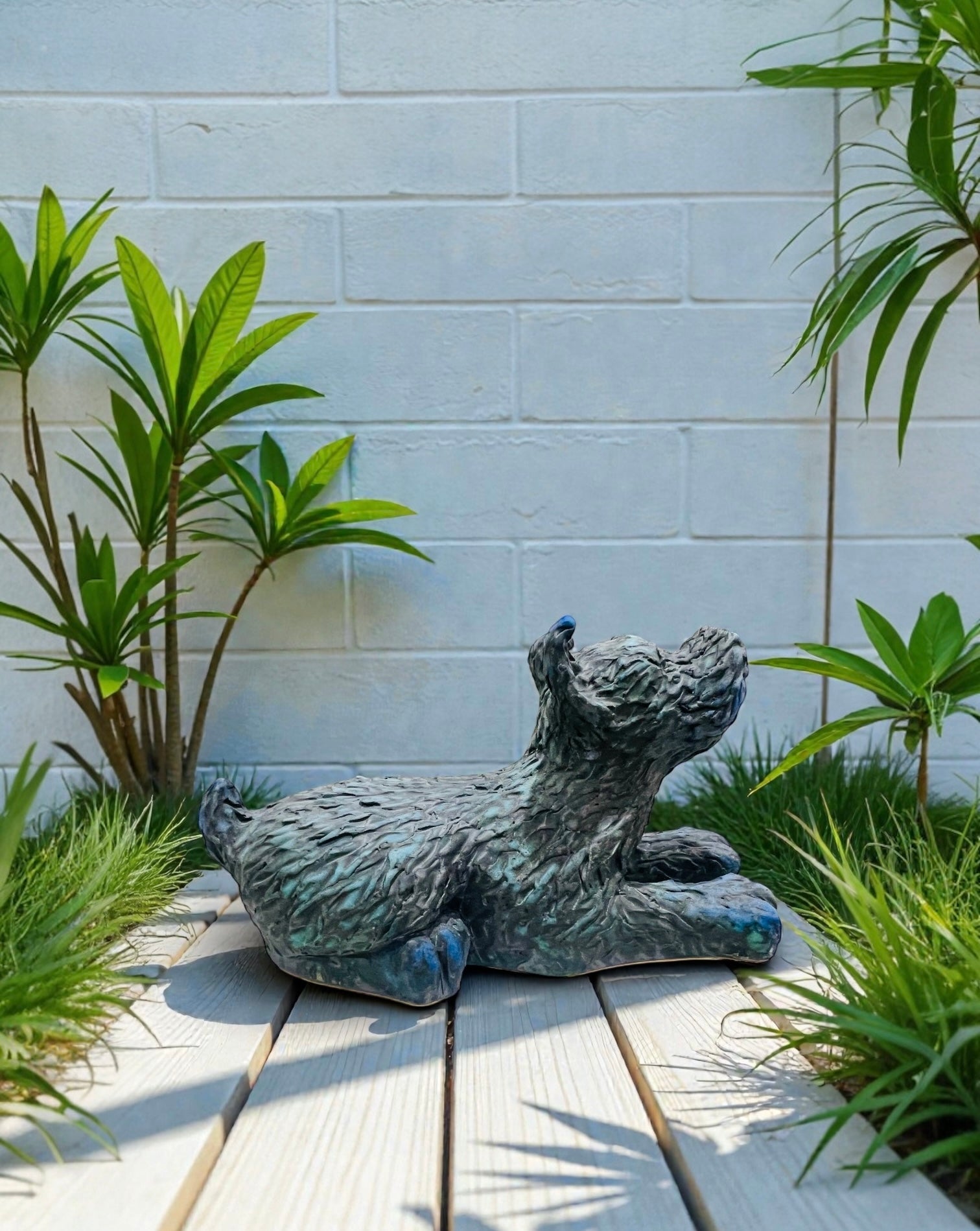 Ceramic figurine of a blue lying dog