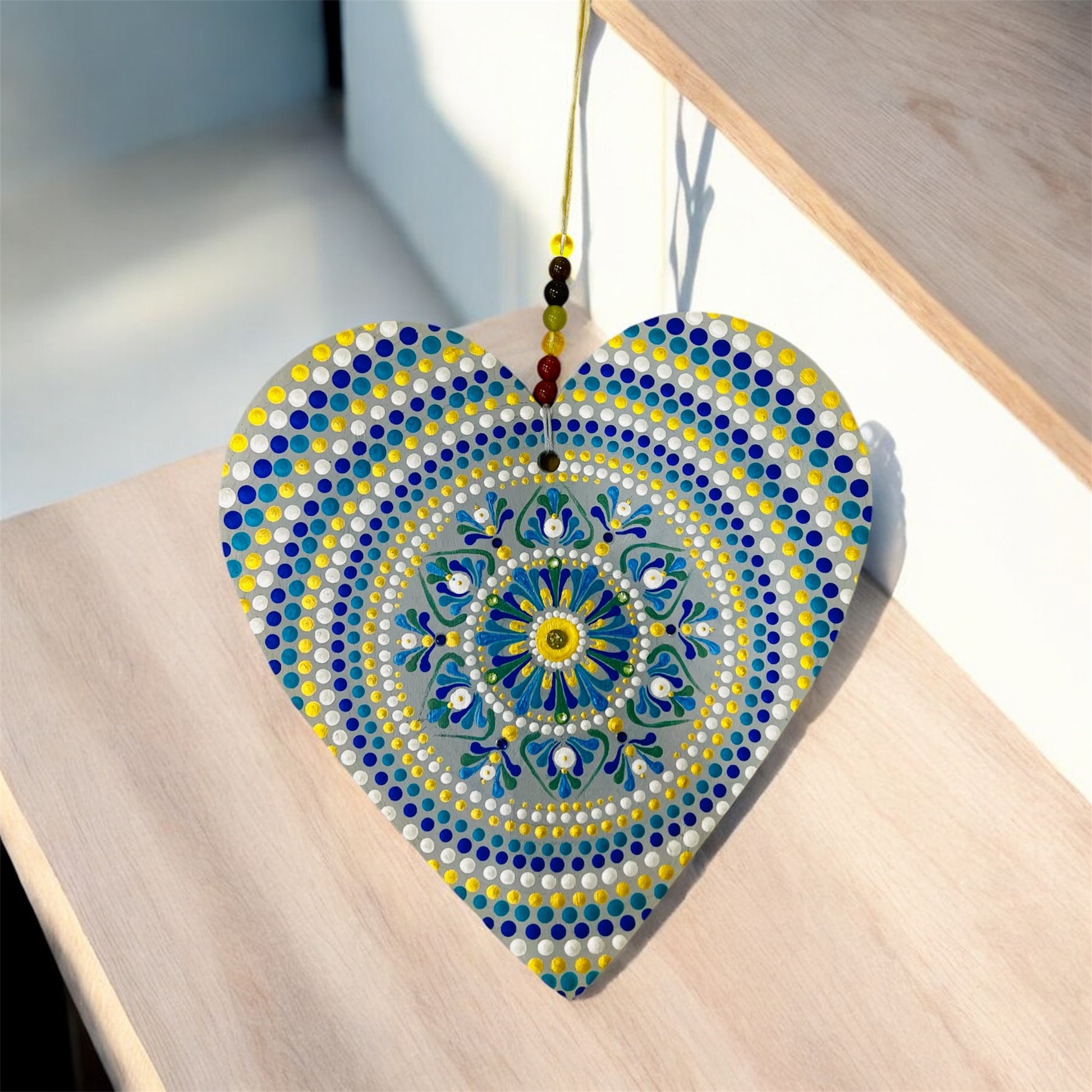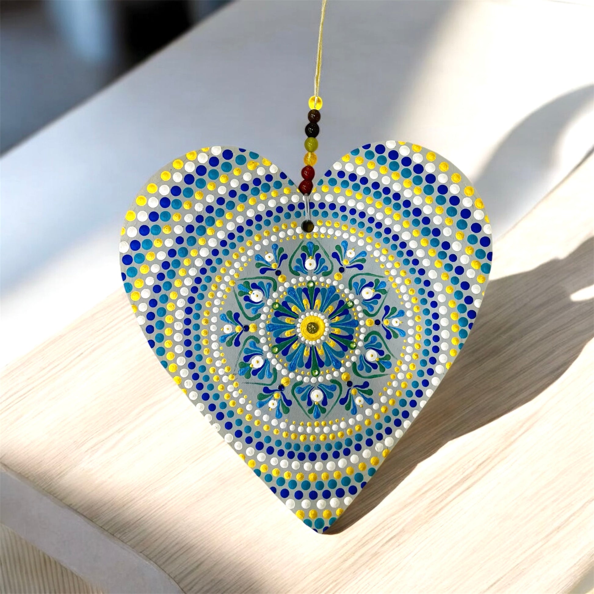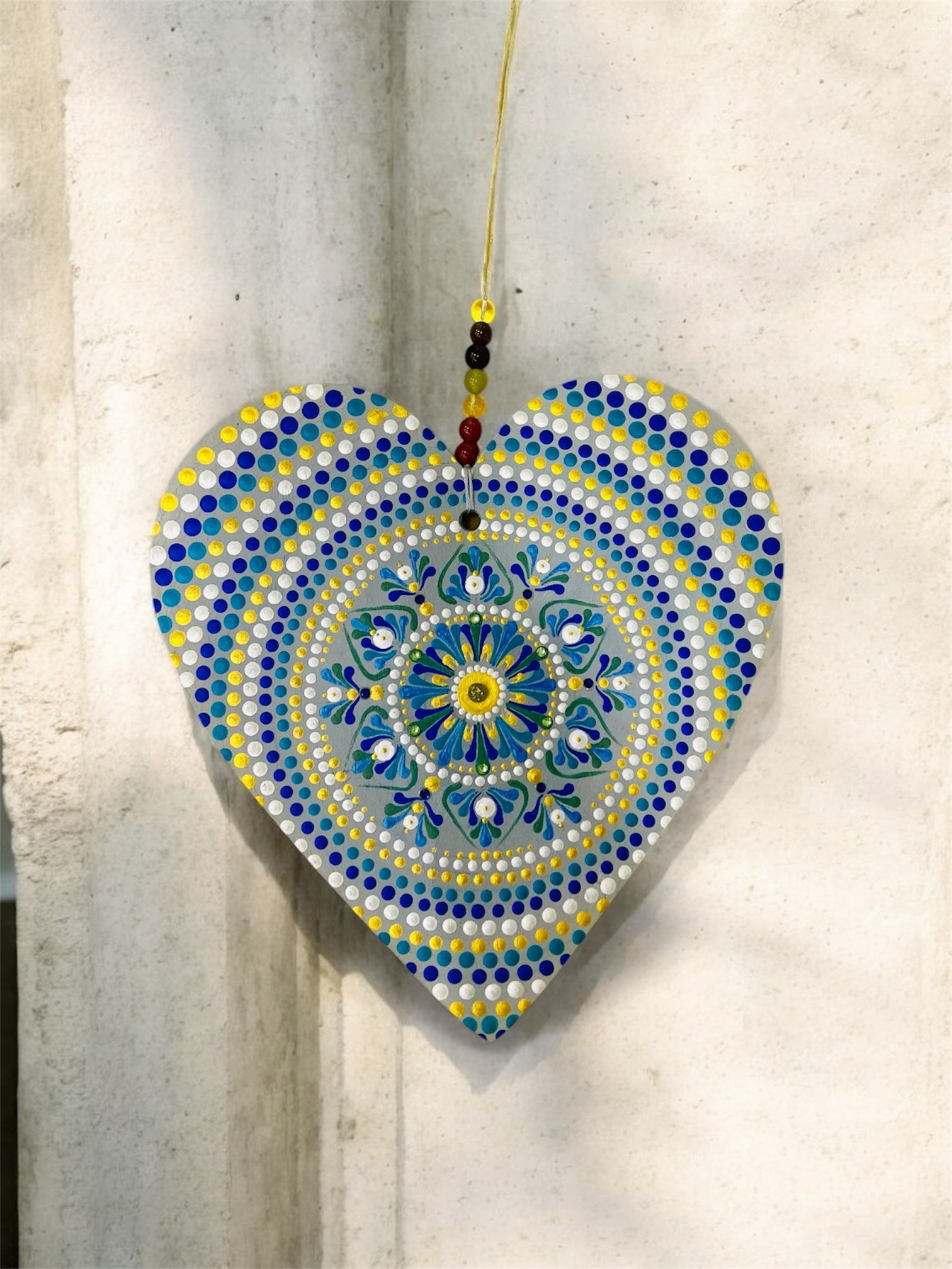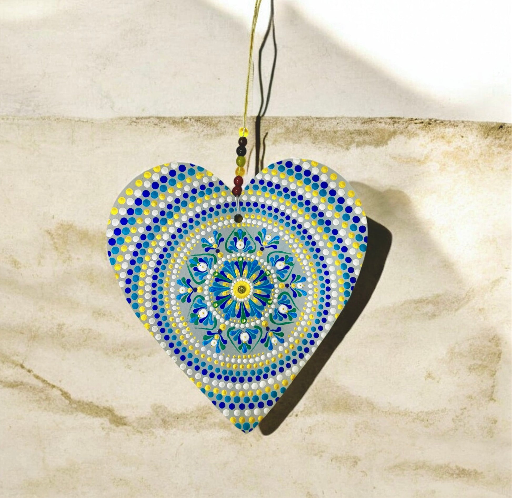 Medium: Acrylic on Ply, varnished, with 7 chakra glass beads,
