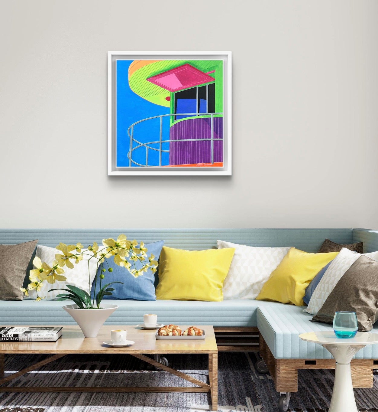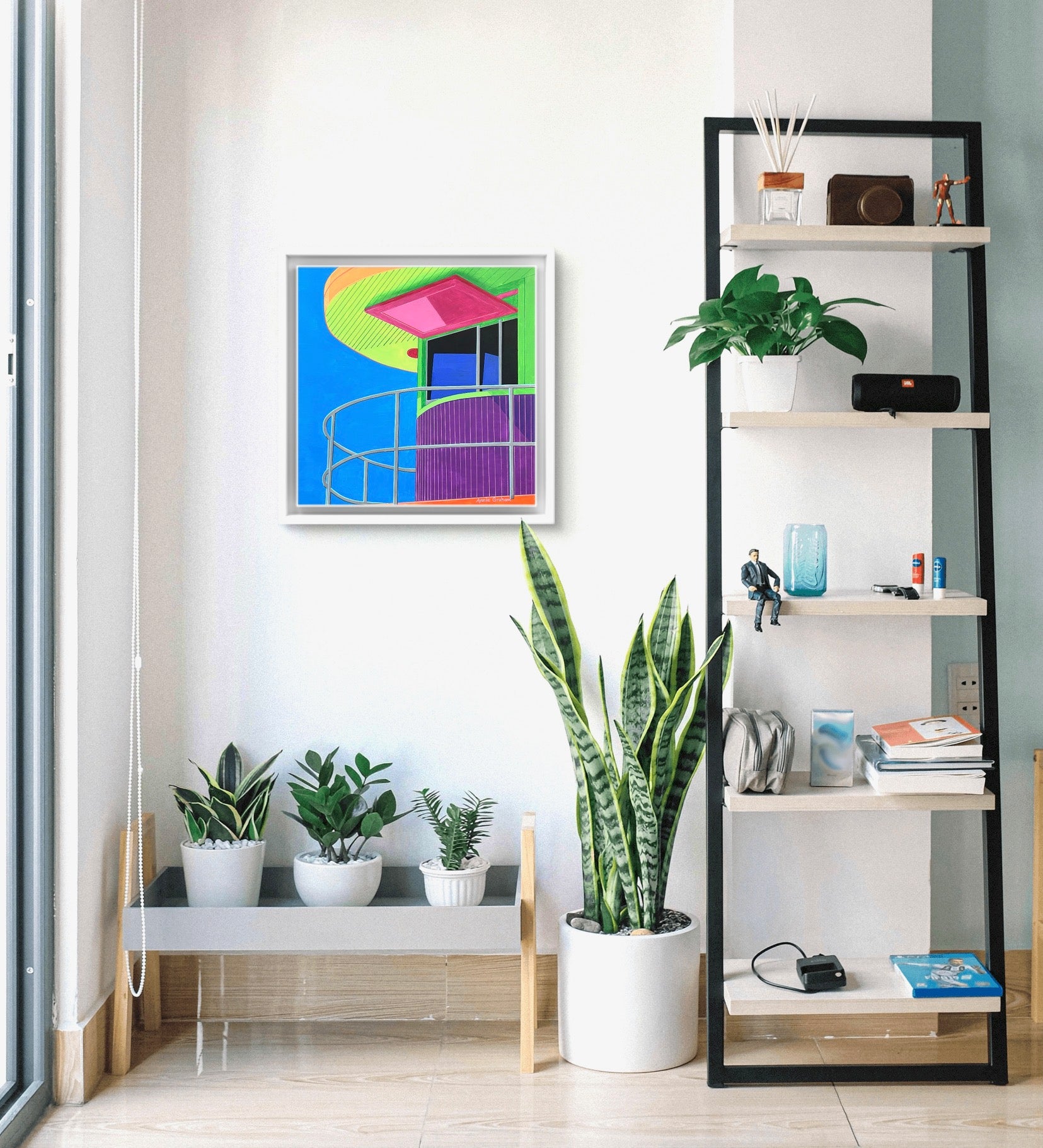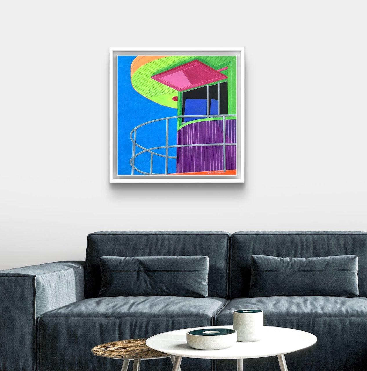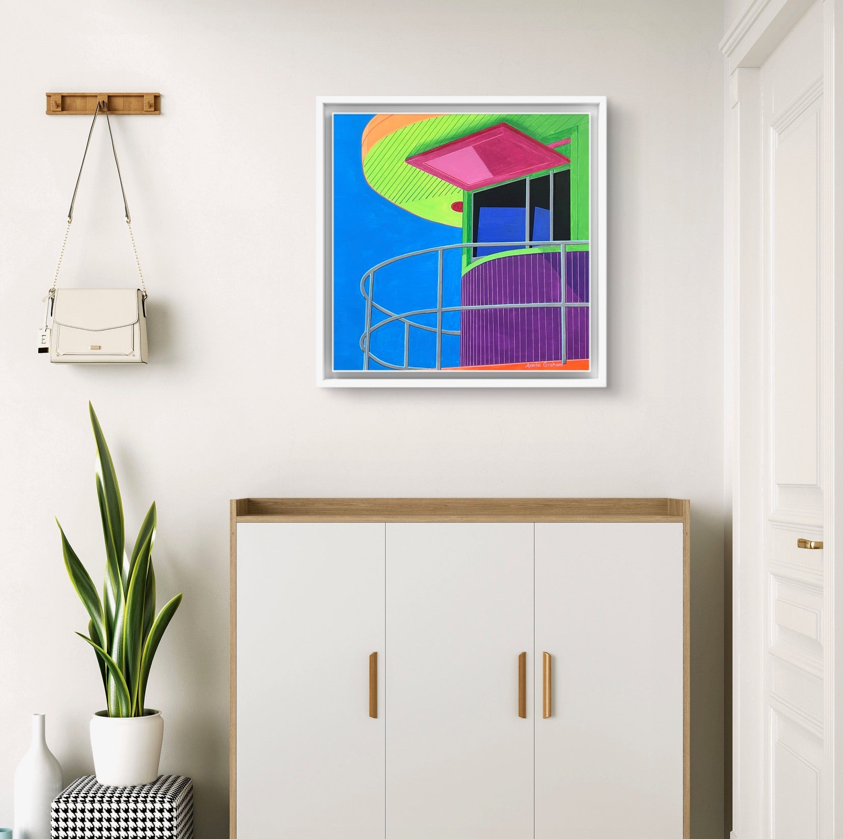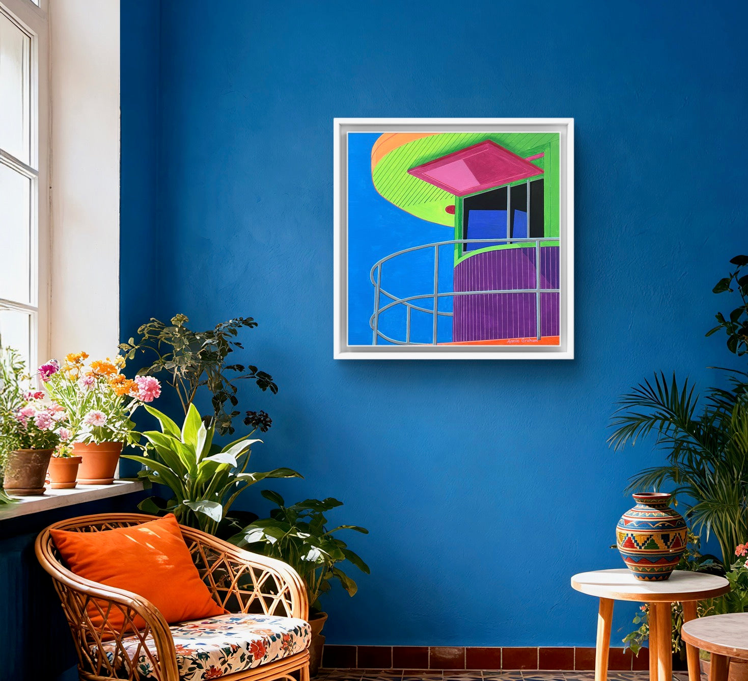 Framed in a white wooden frame
