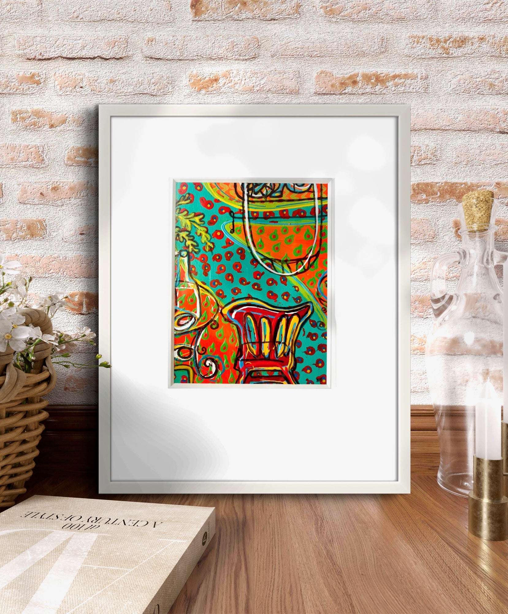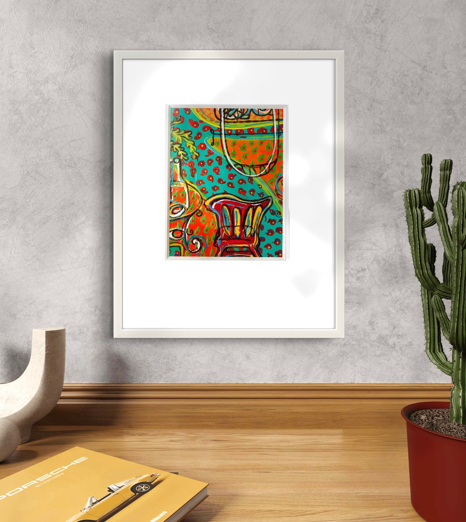 Dimension: 34 x 43cm, framed (white frame)
