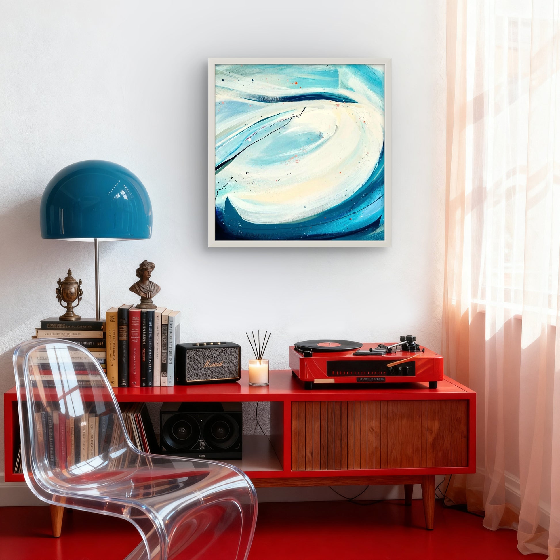 Medium: Acrylic paint, mixed media and watercolour inks, on cotton canvas.