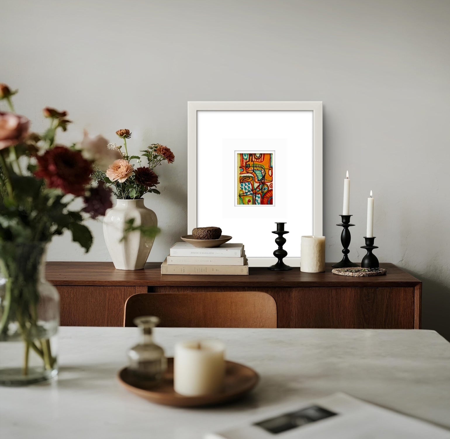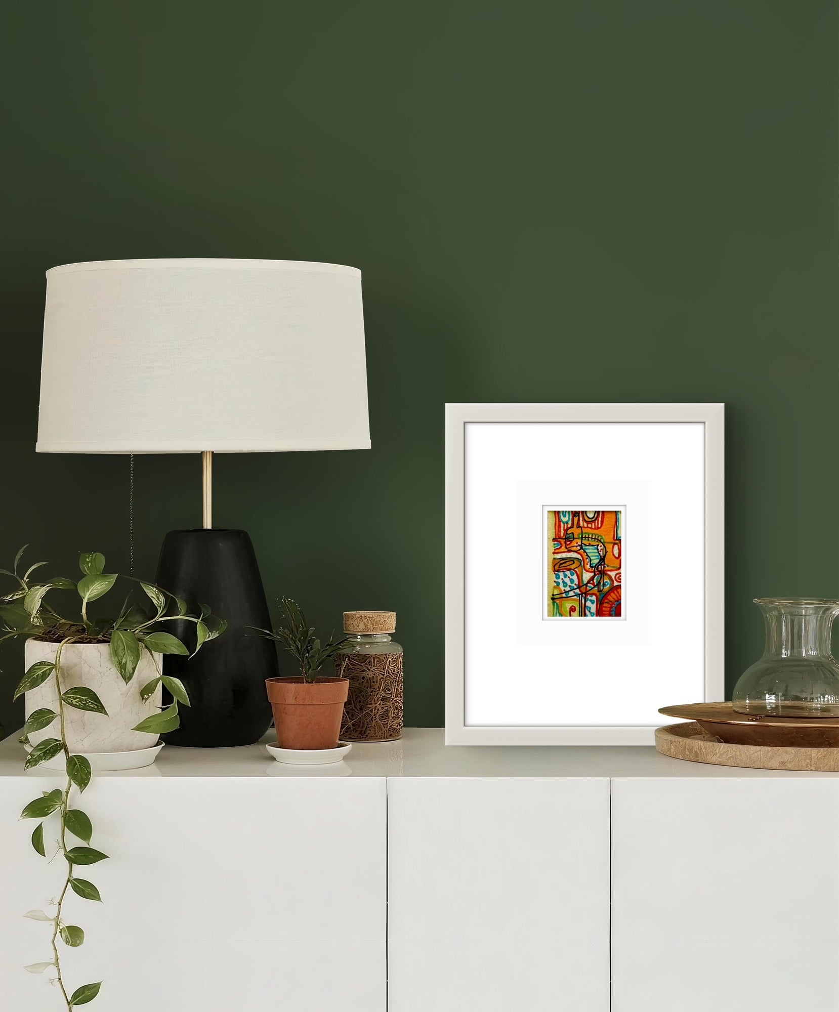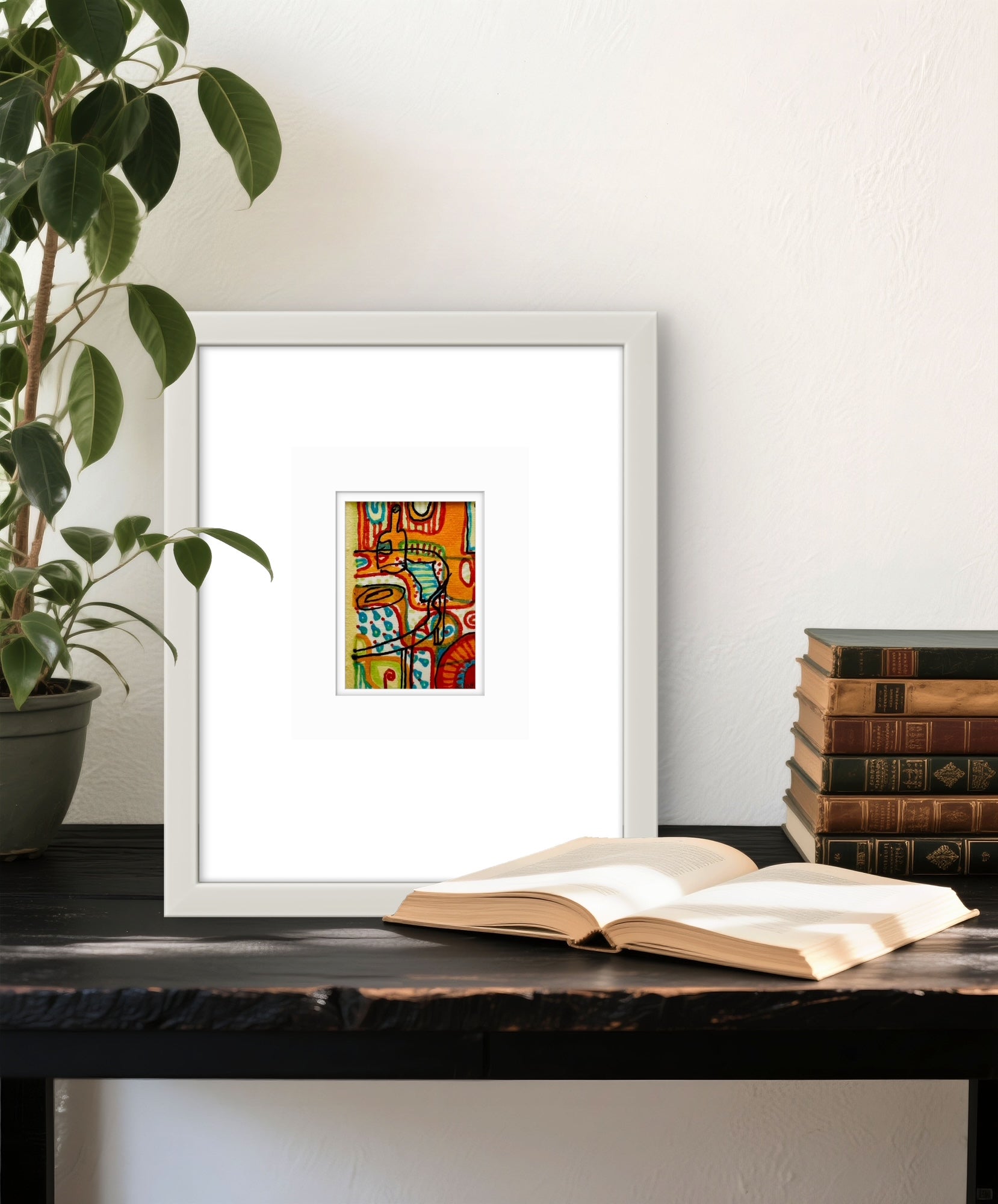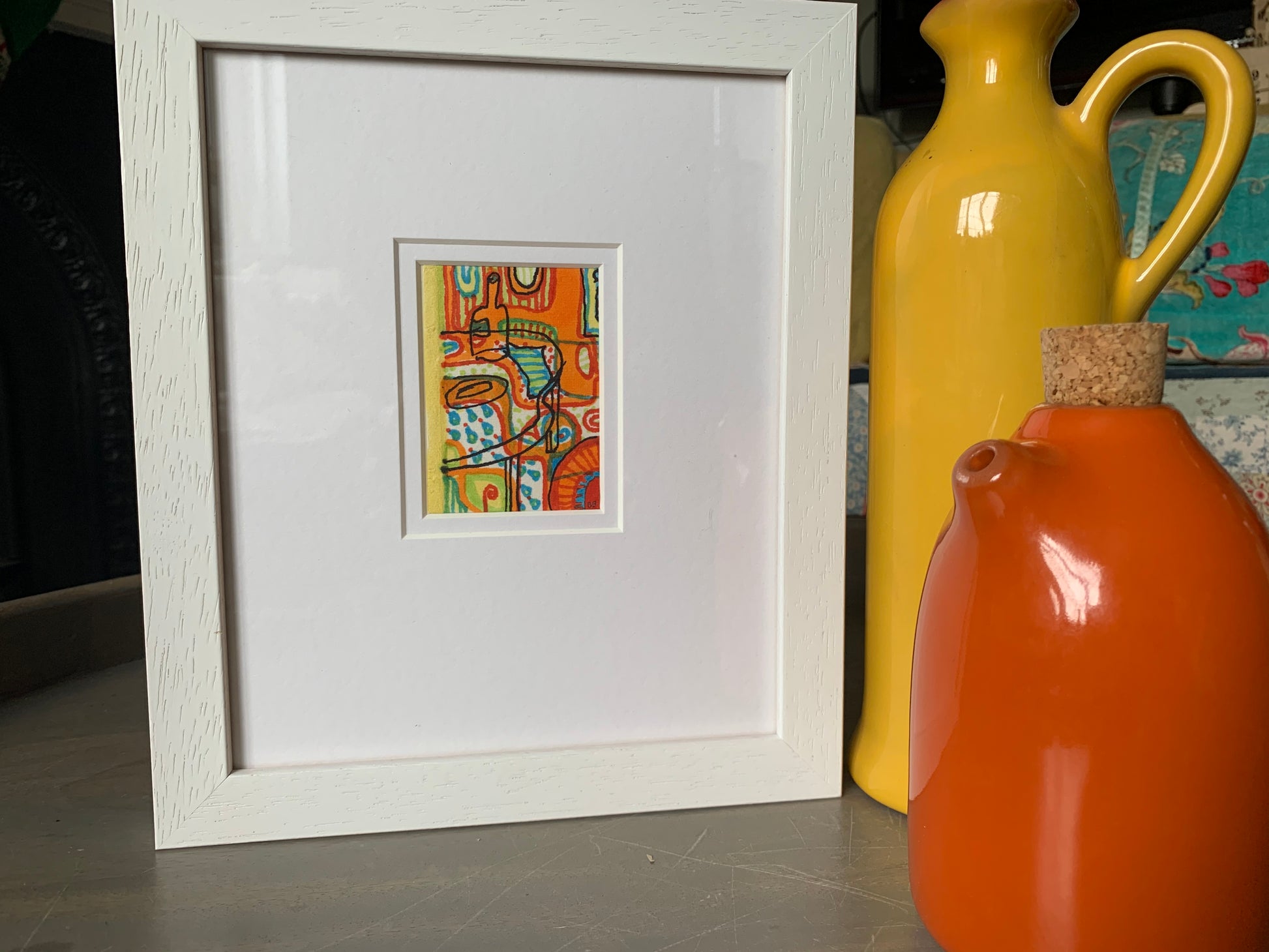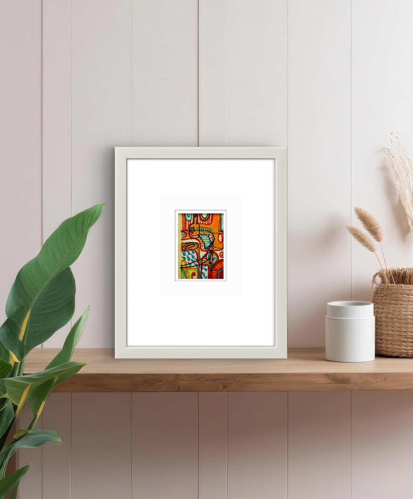 Framed in a white wooden frame