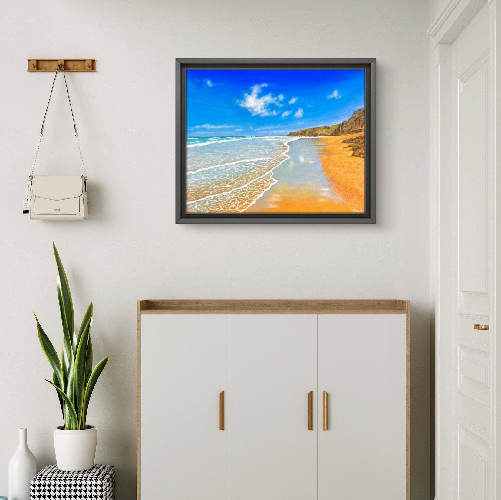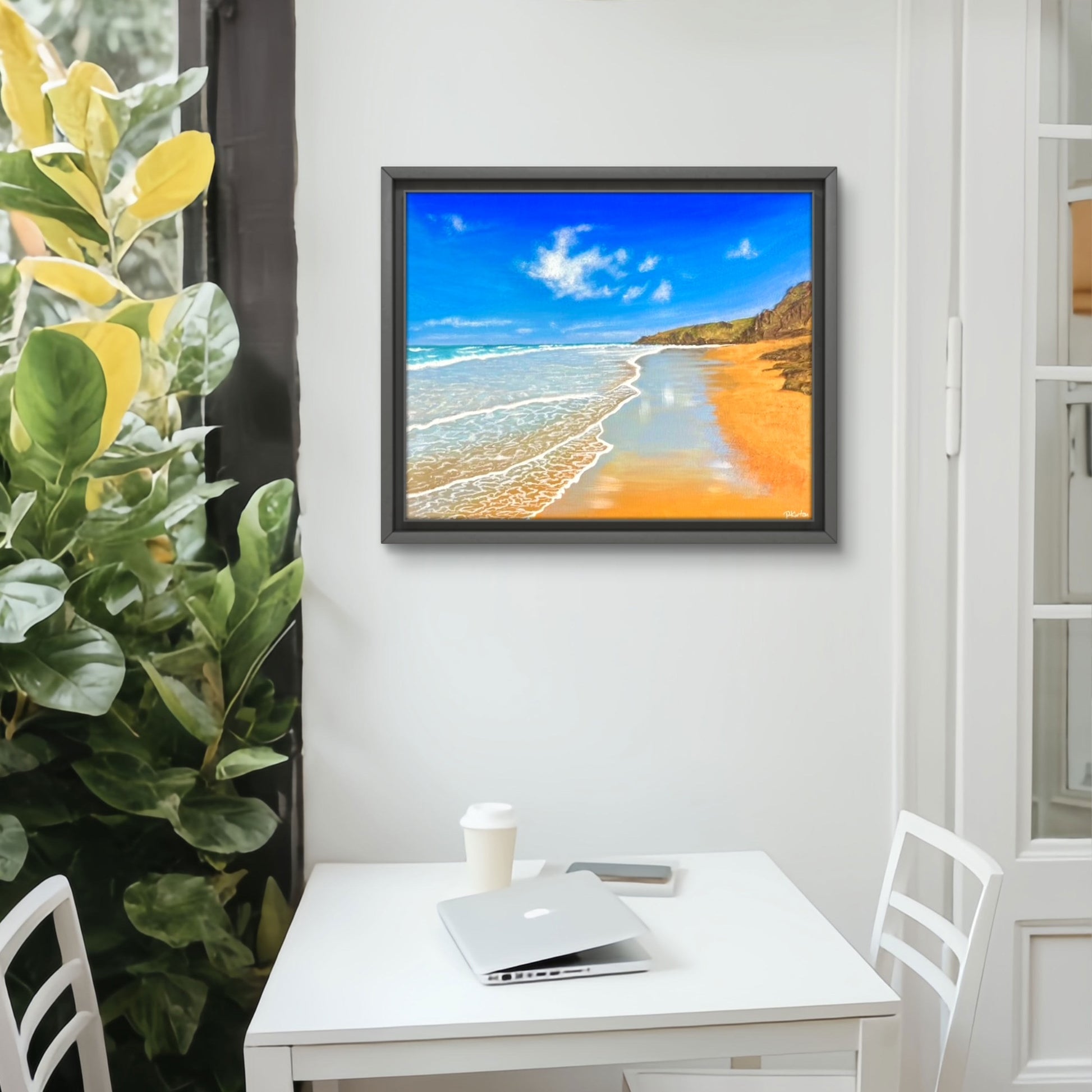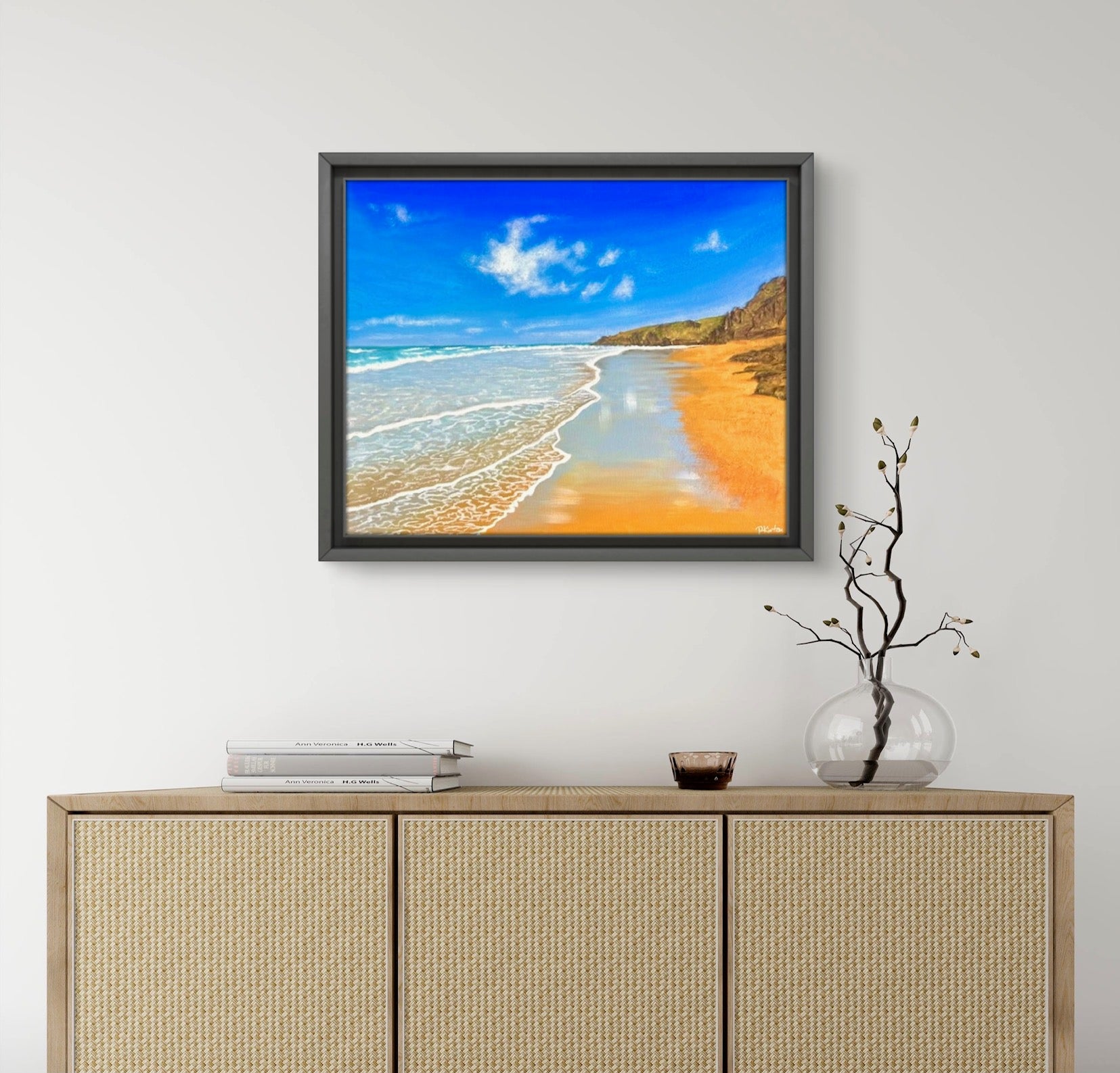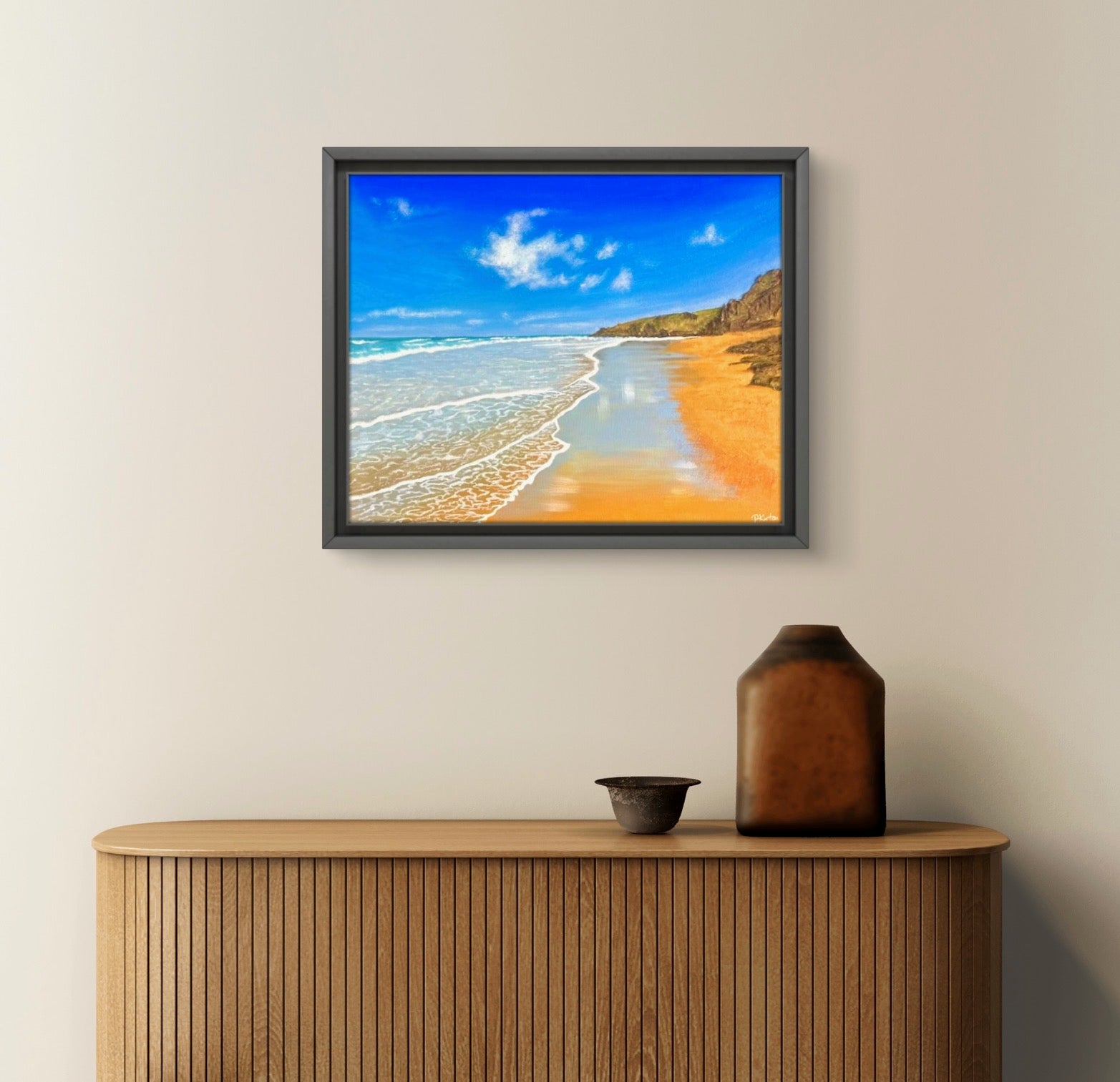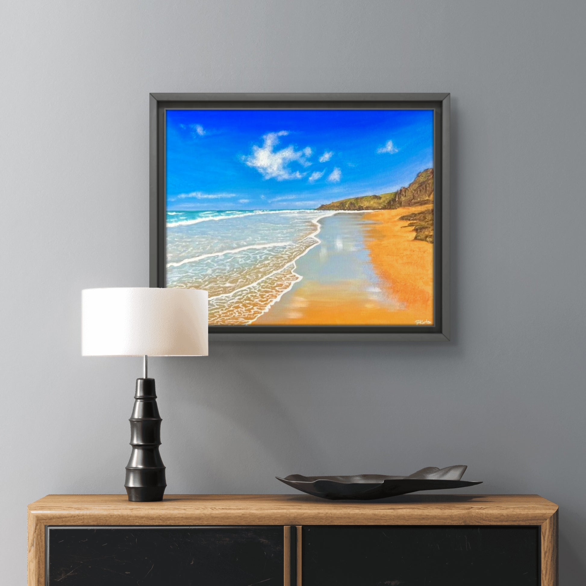 Framed in a black tray frame