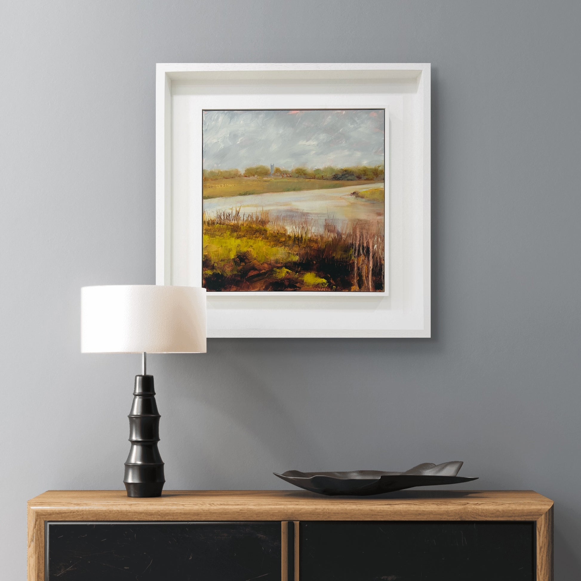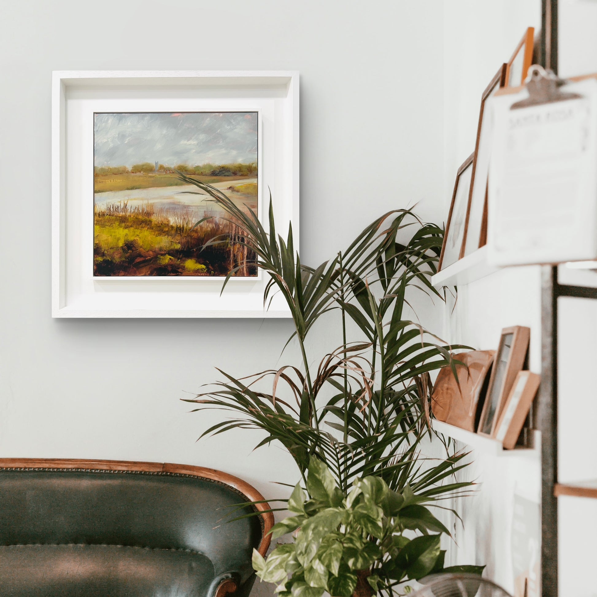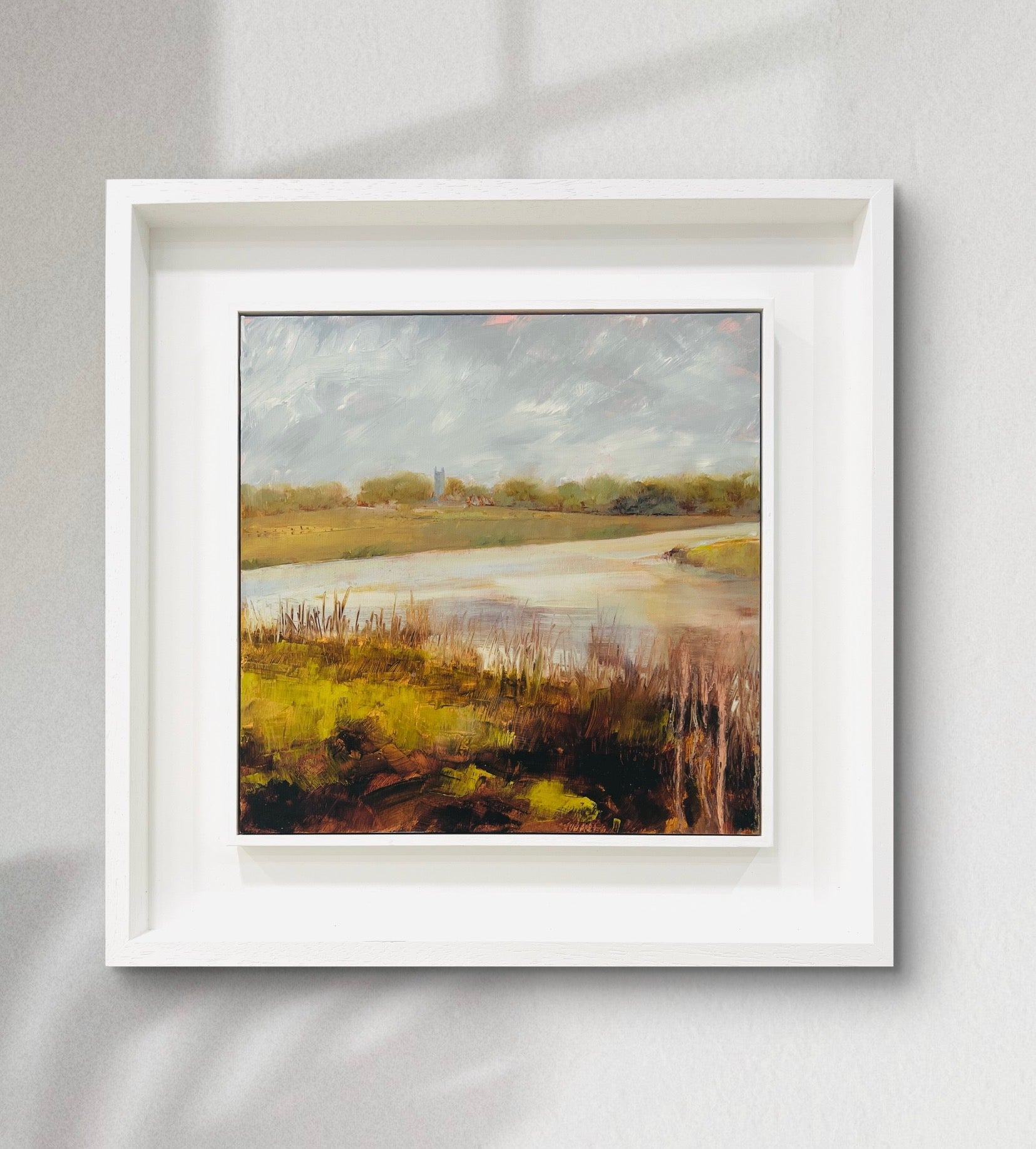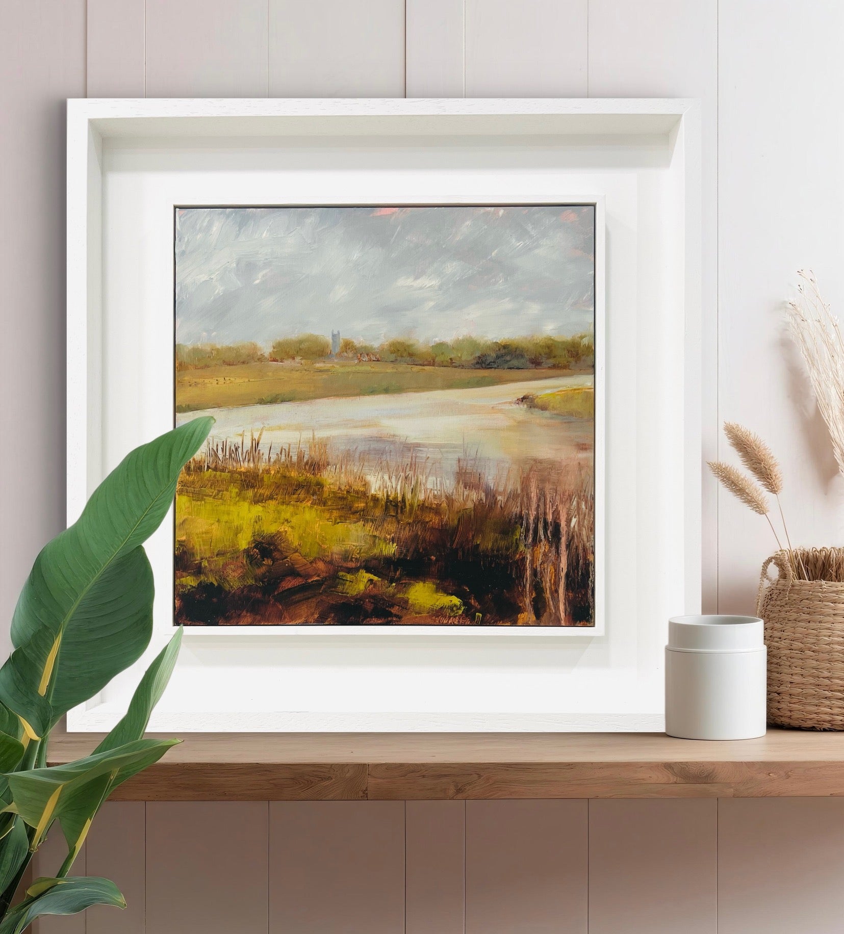 Framed in a white wood tray frame