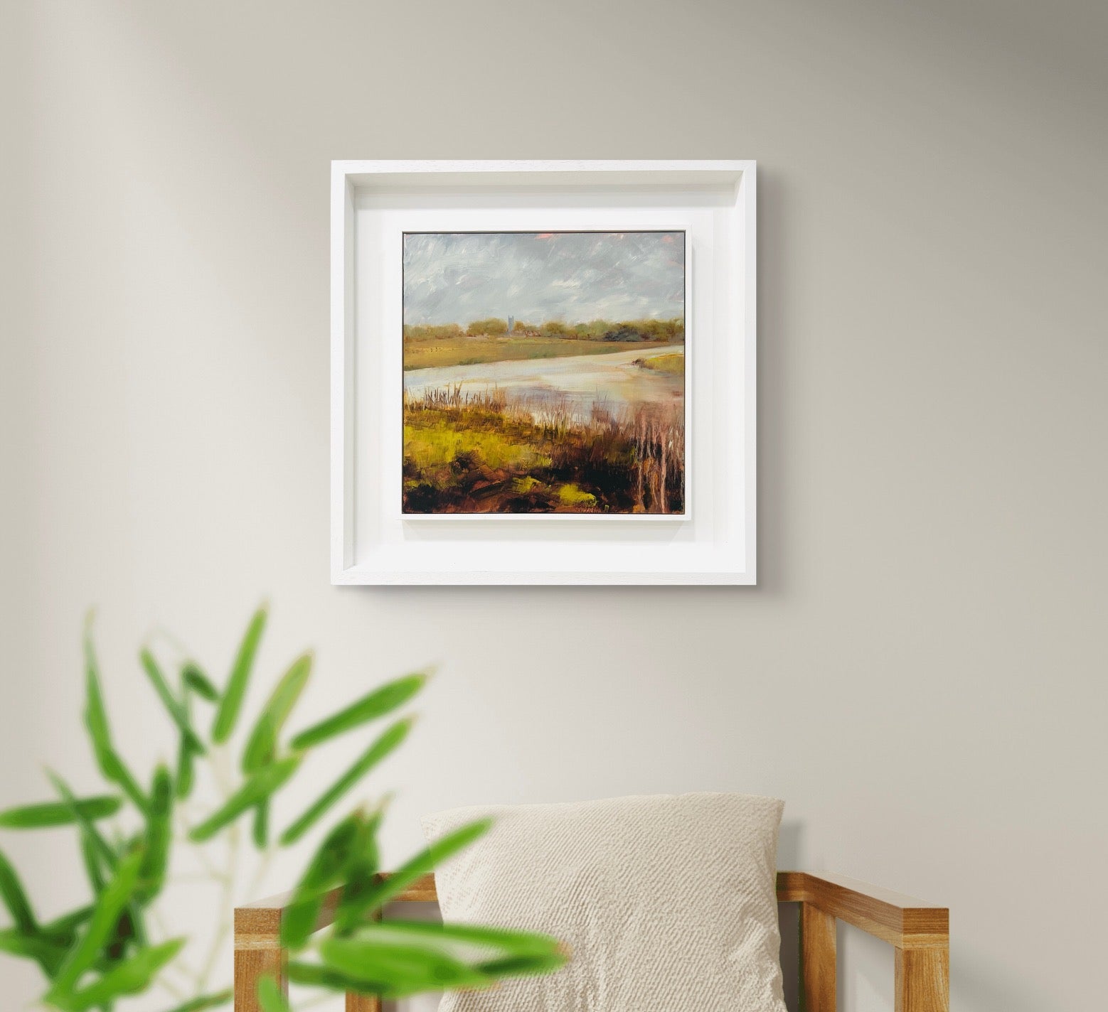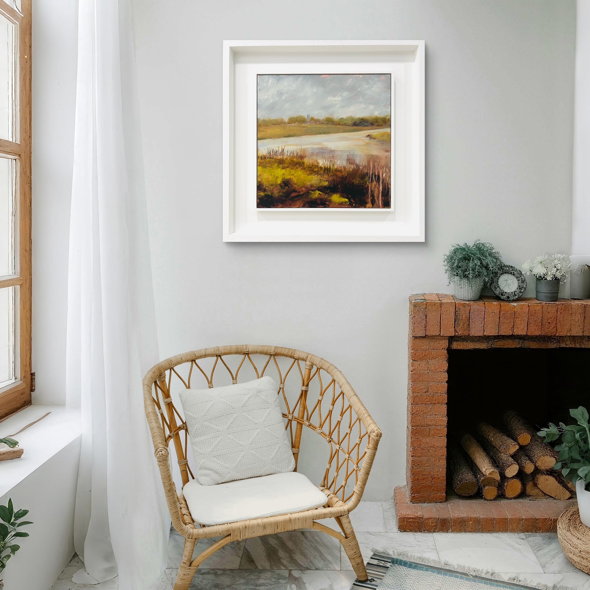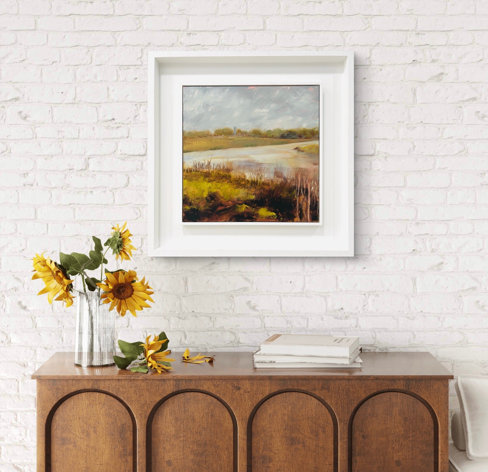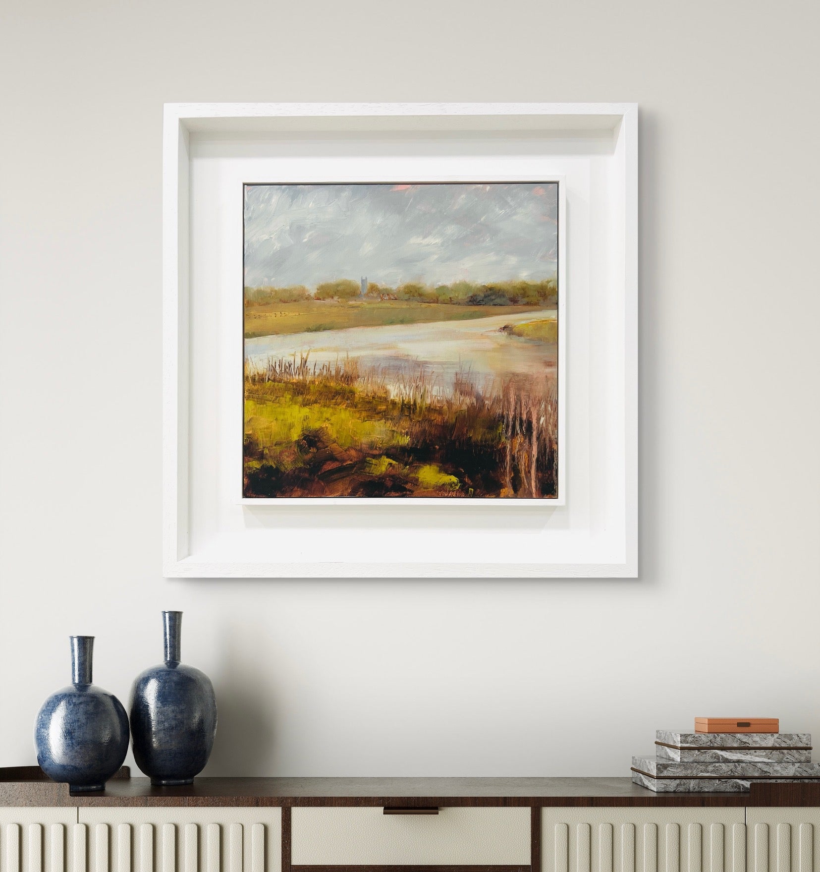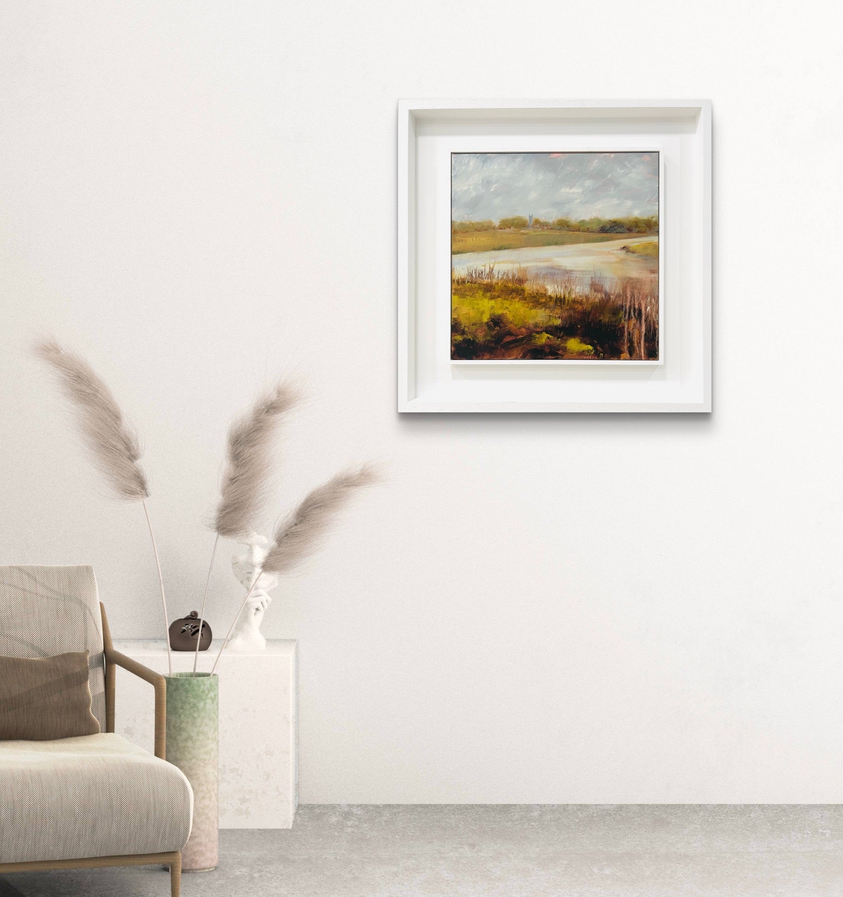 Framed in a white wood tray frame