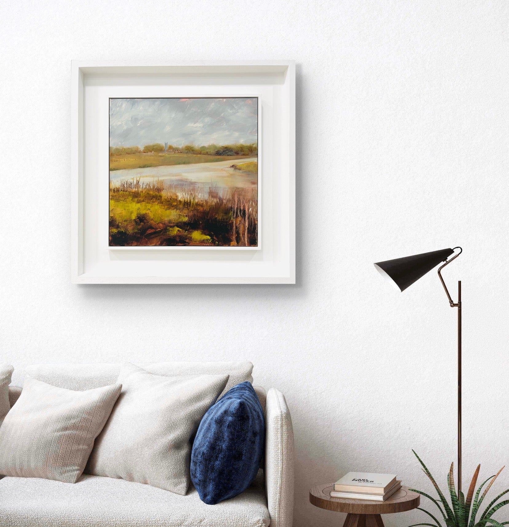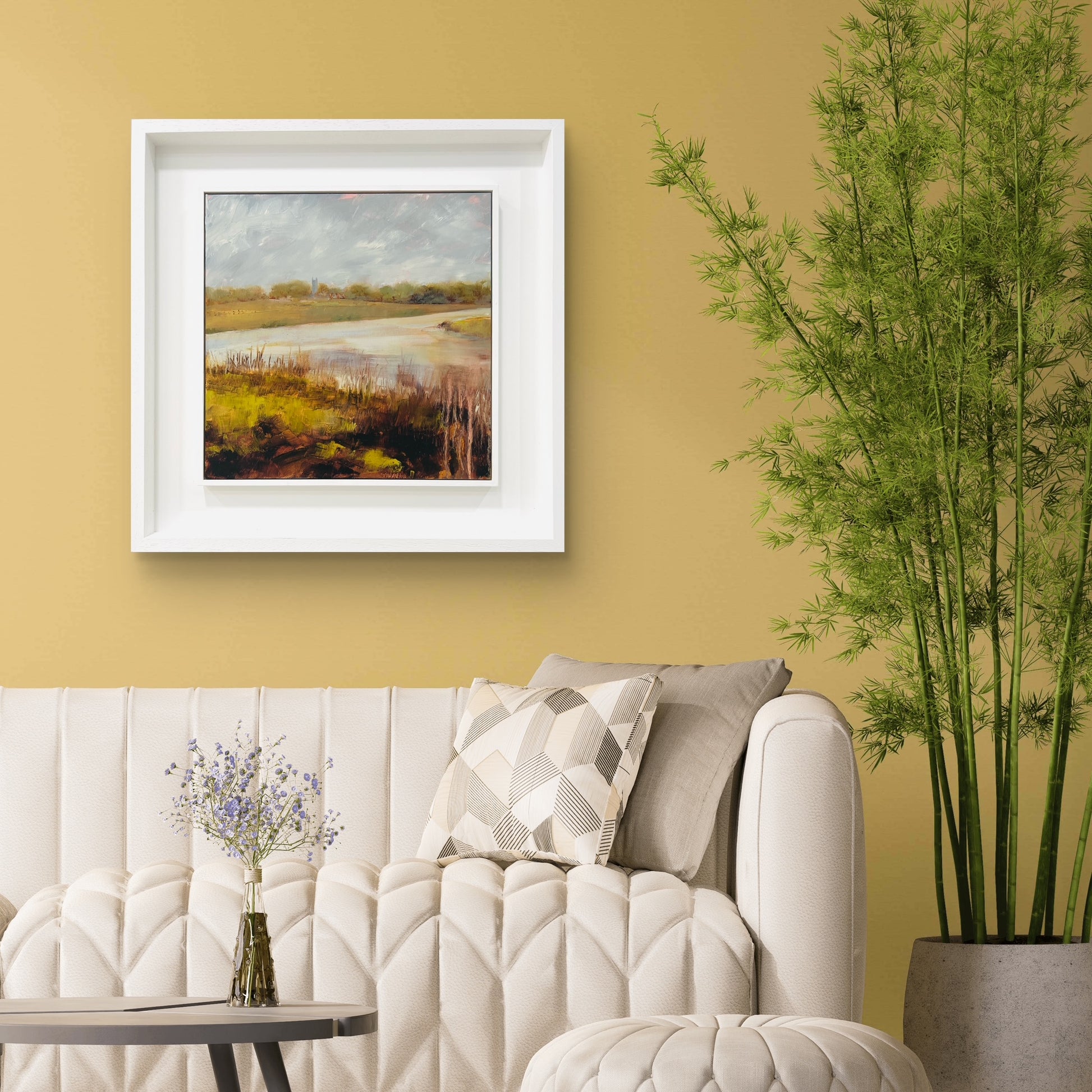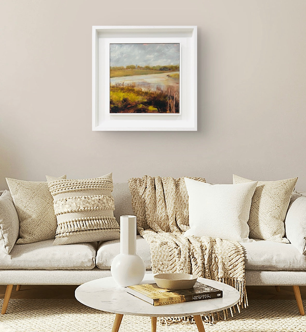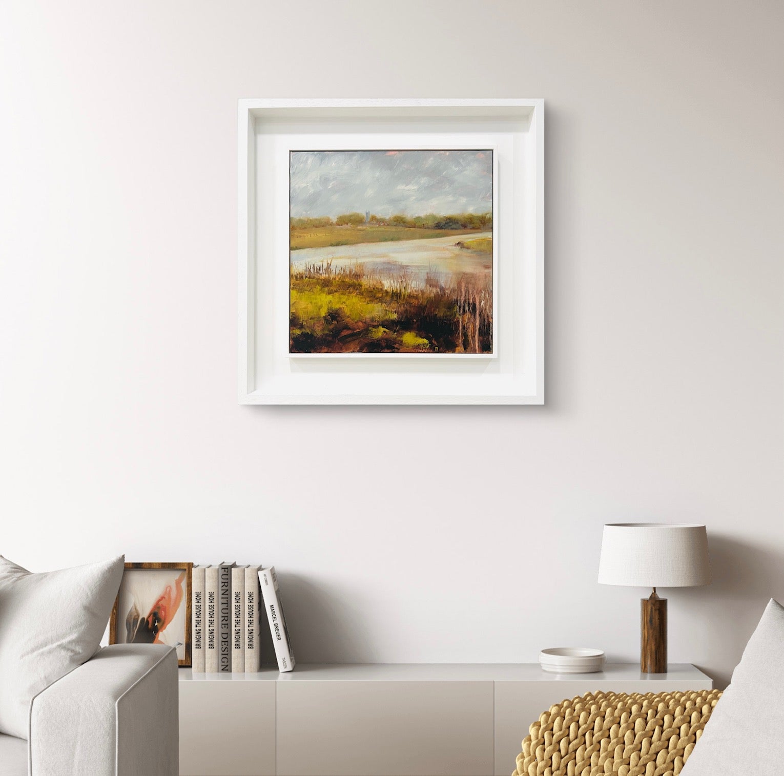 Framed in a white wood tray frame
