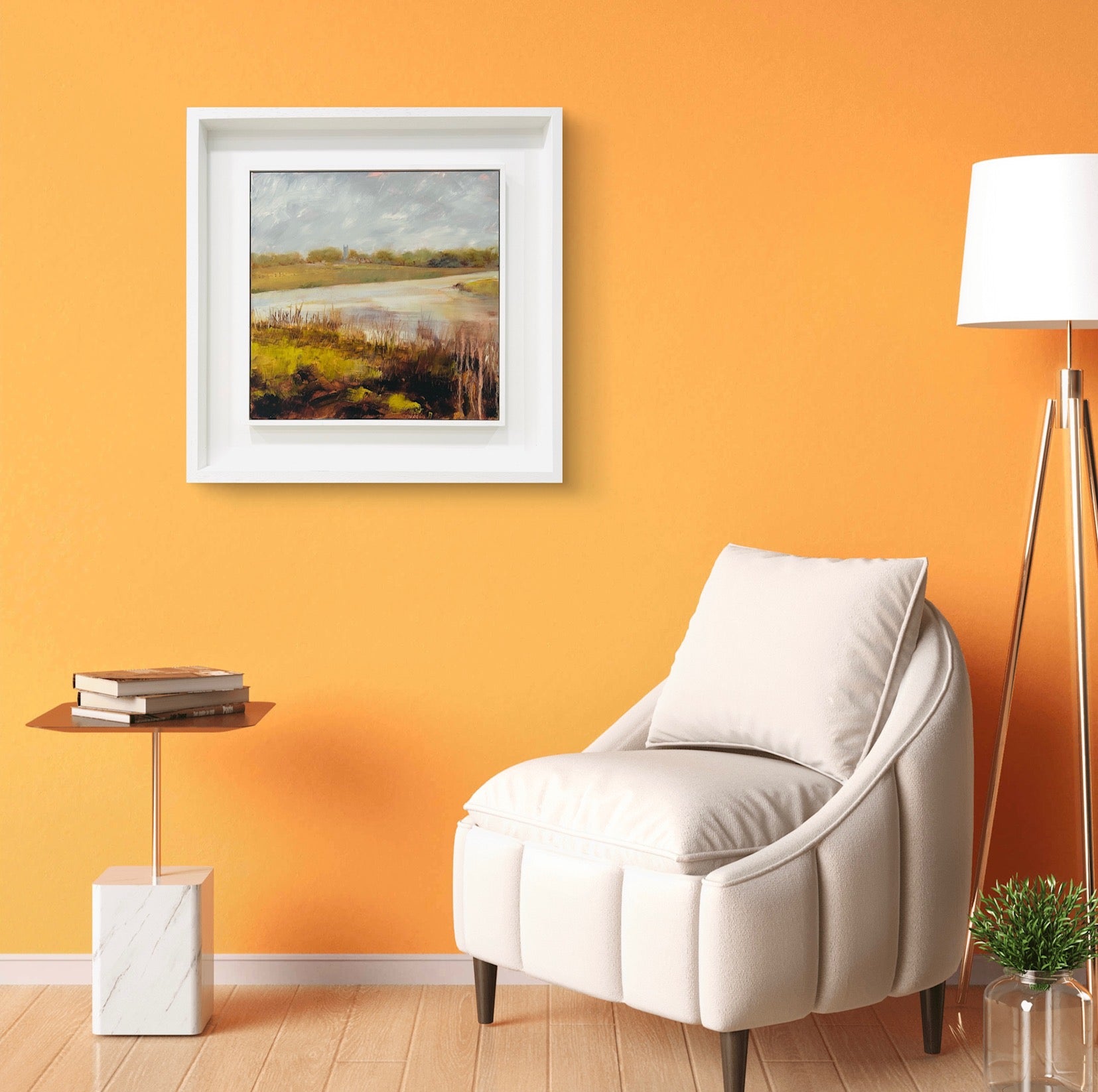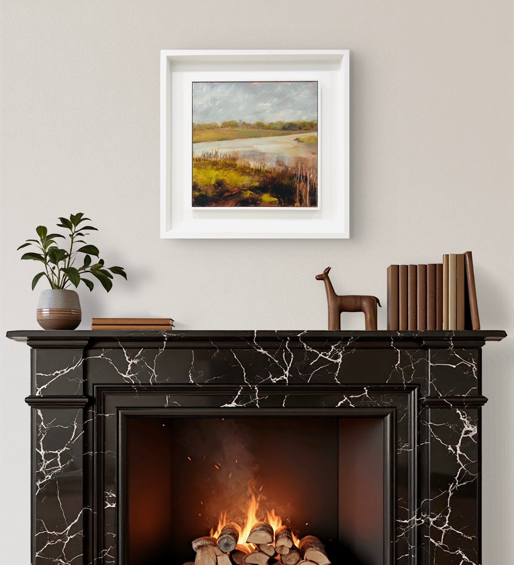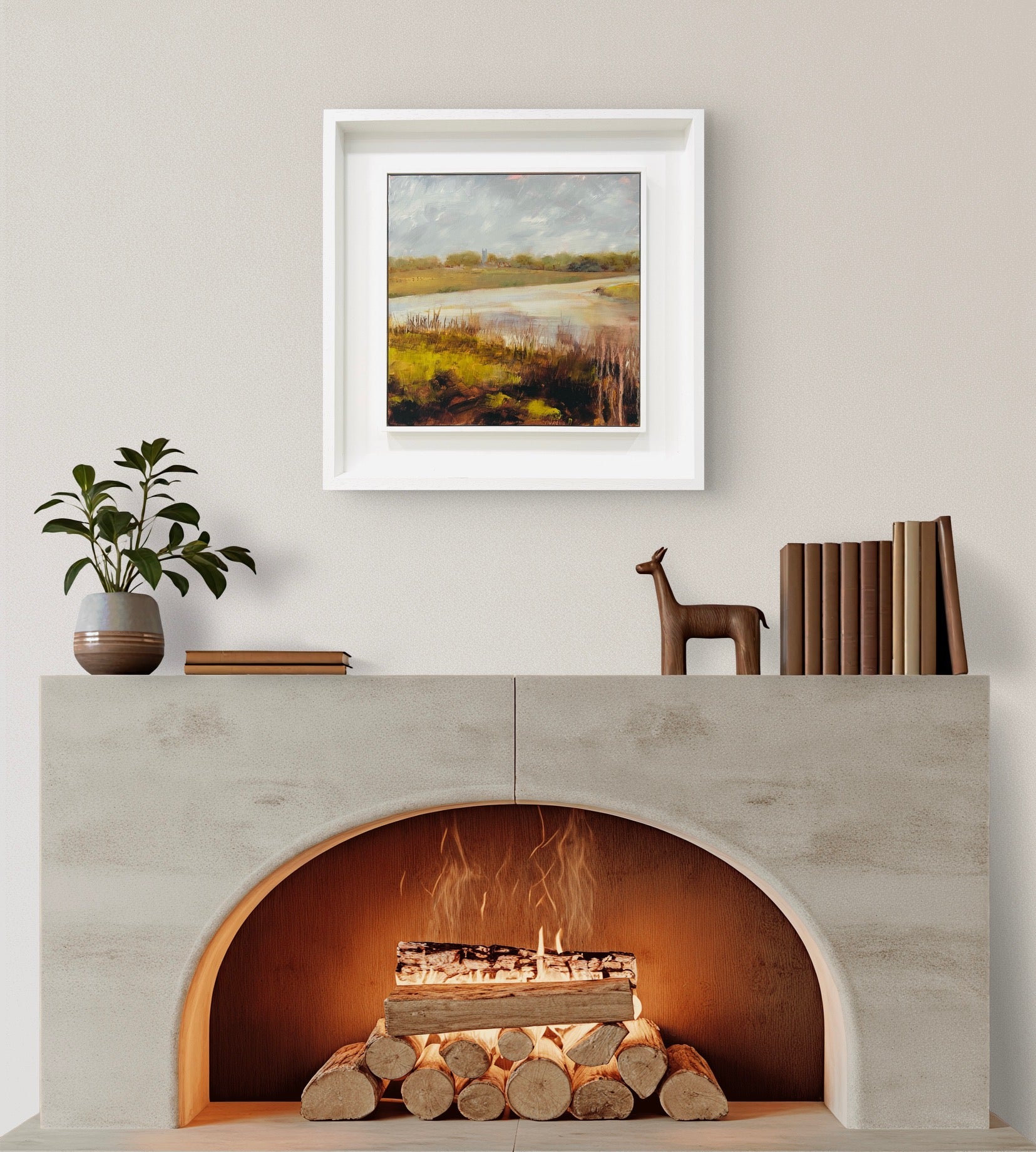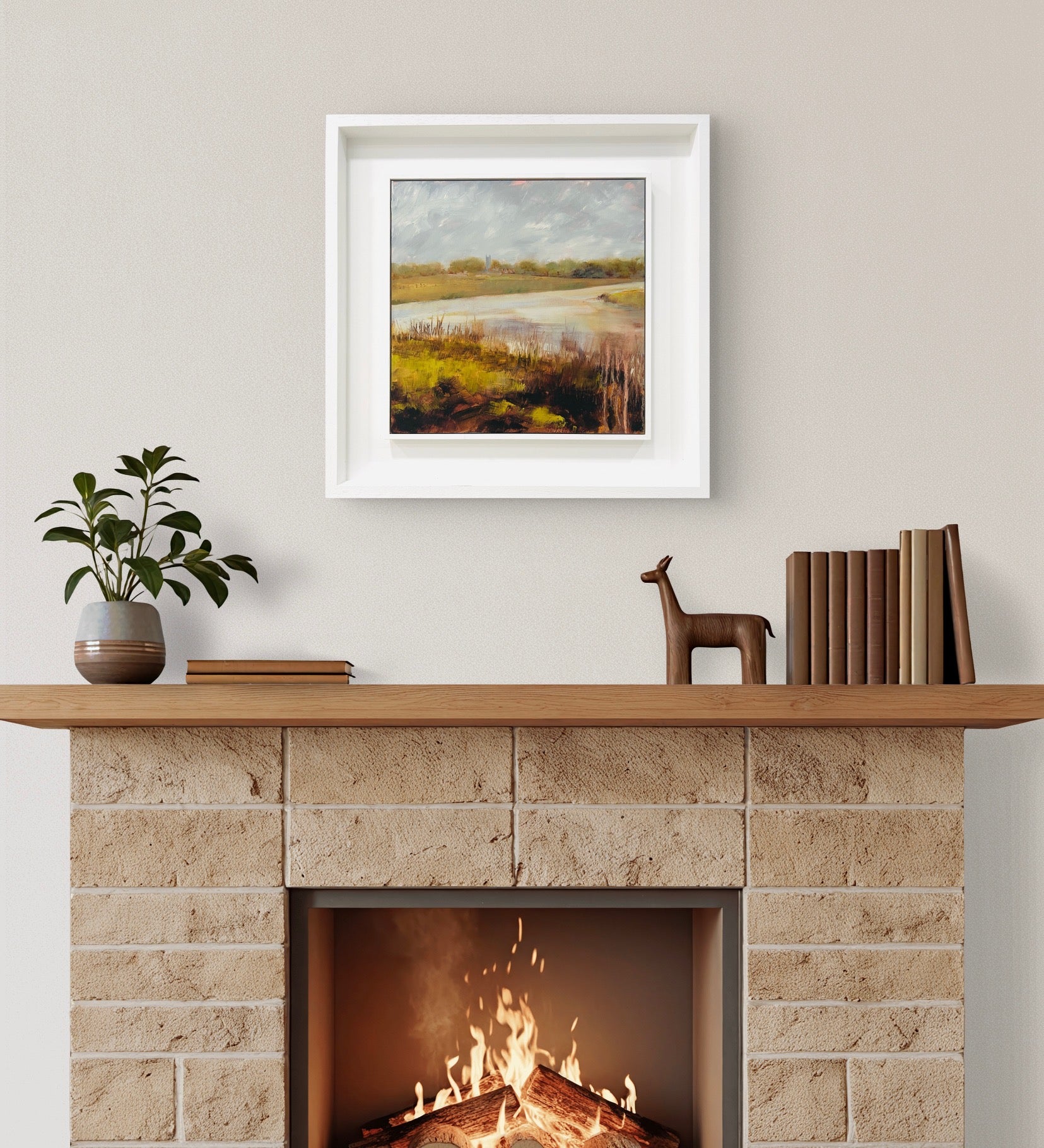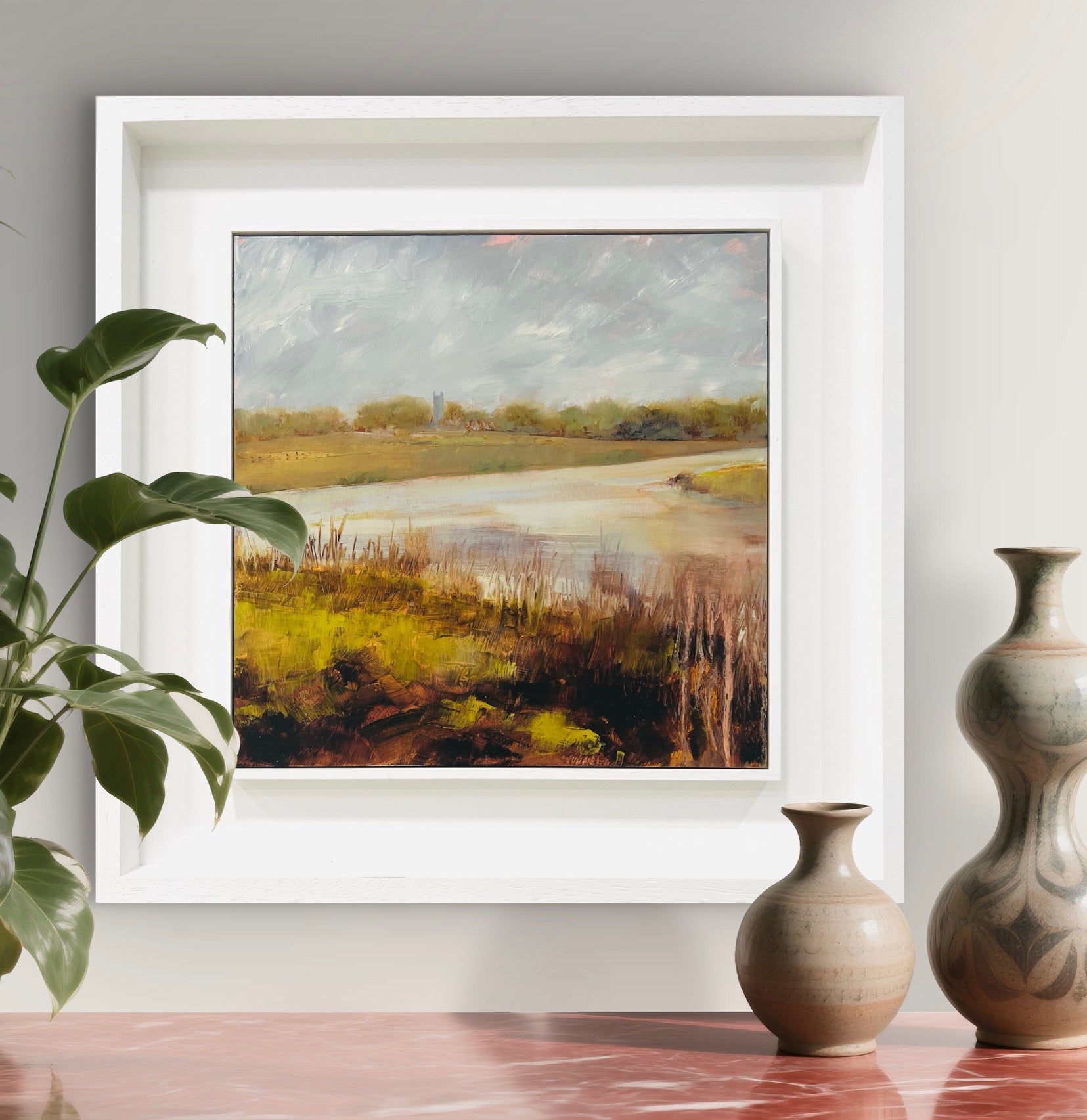 Framed in a white wood tray frame