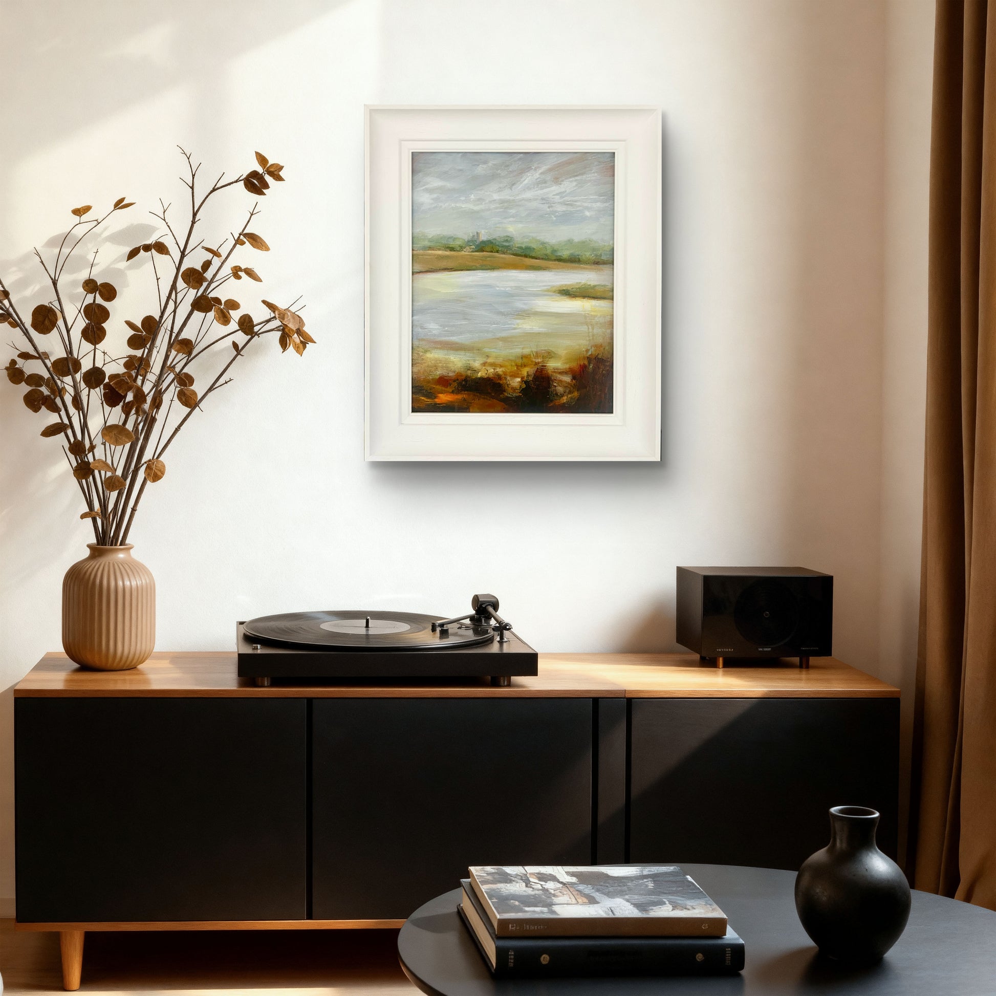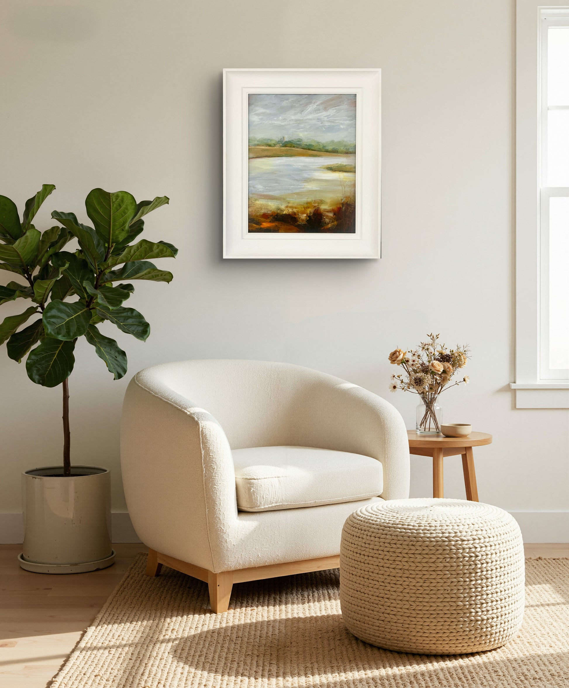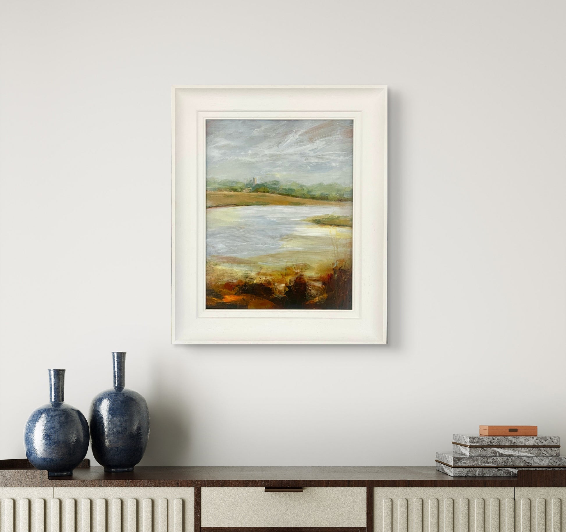 Framed in a white wooden frame