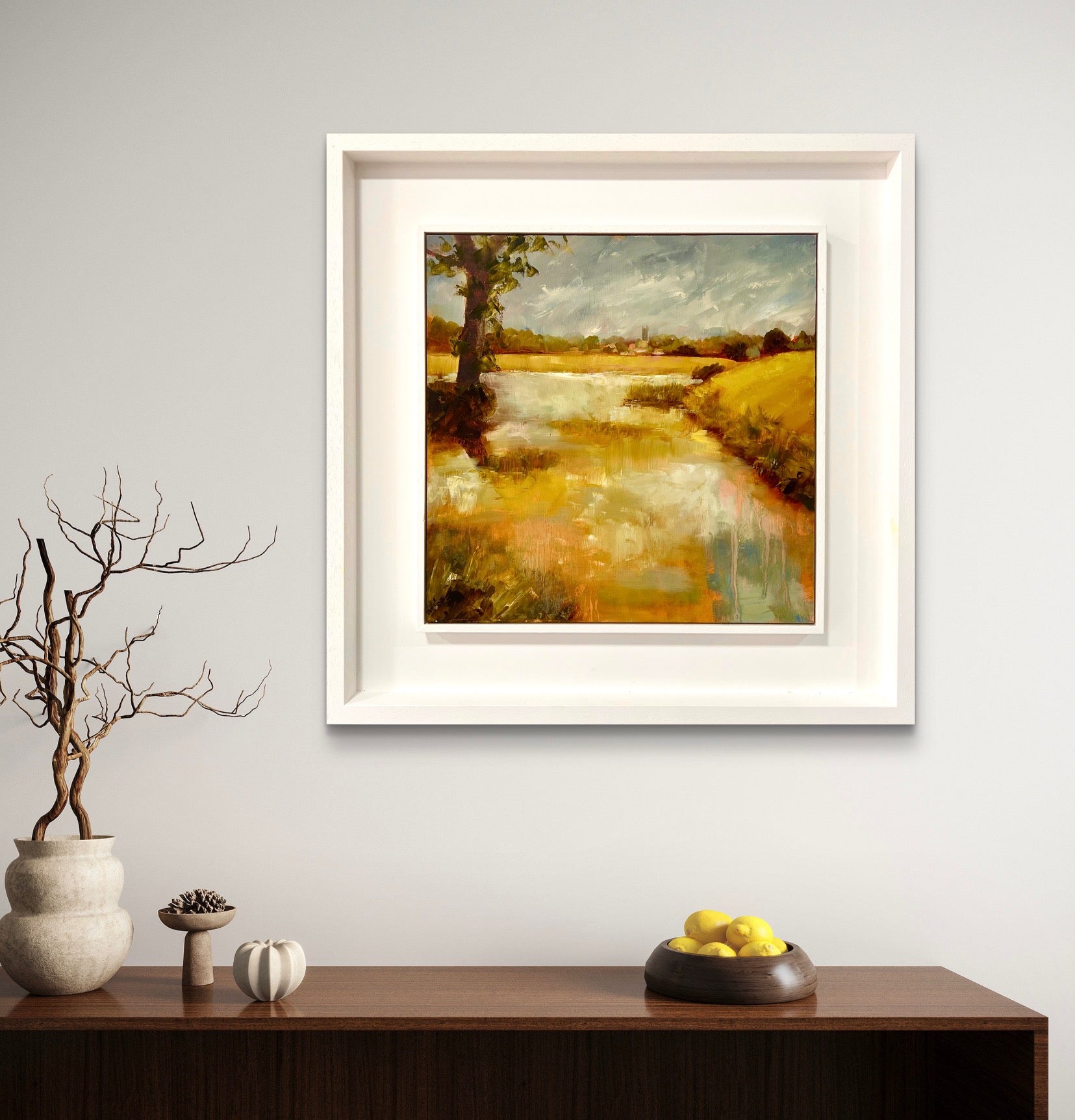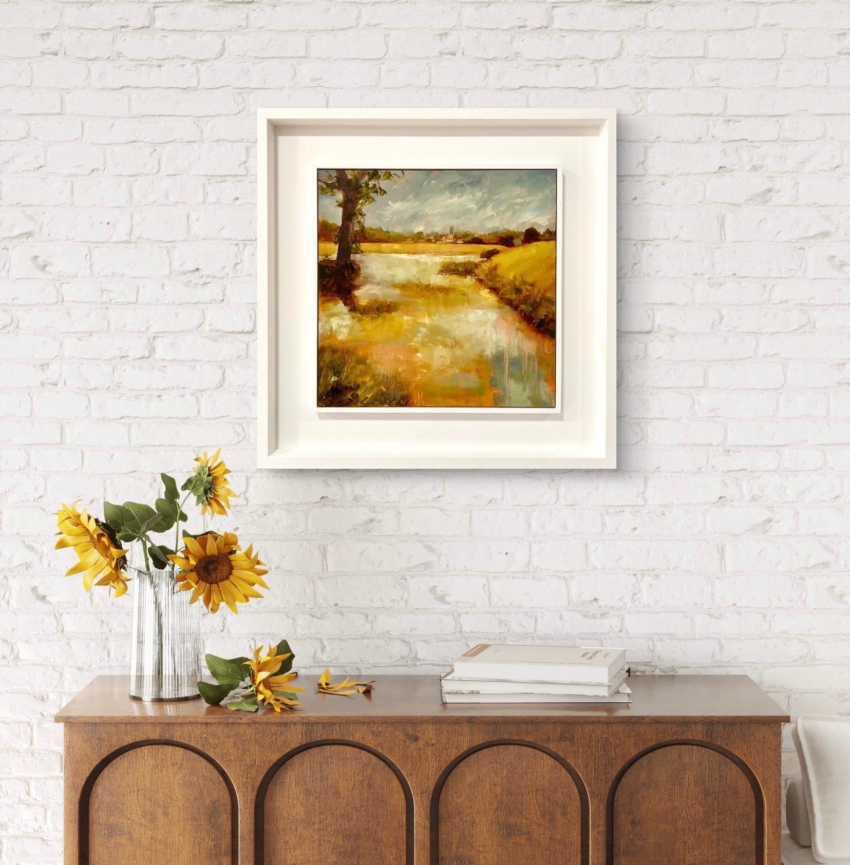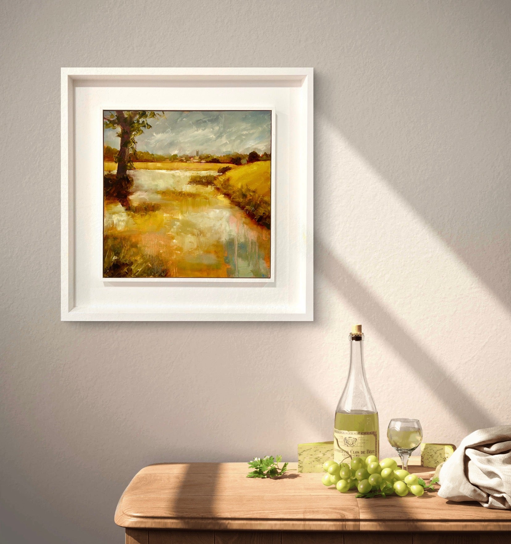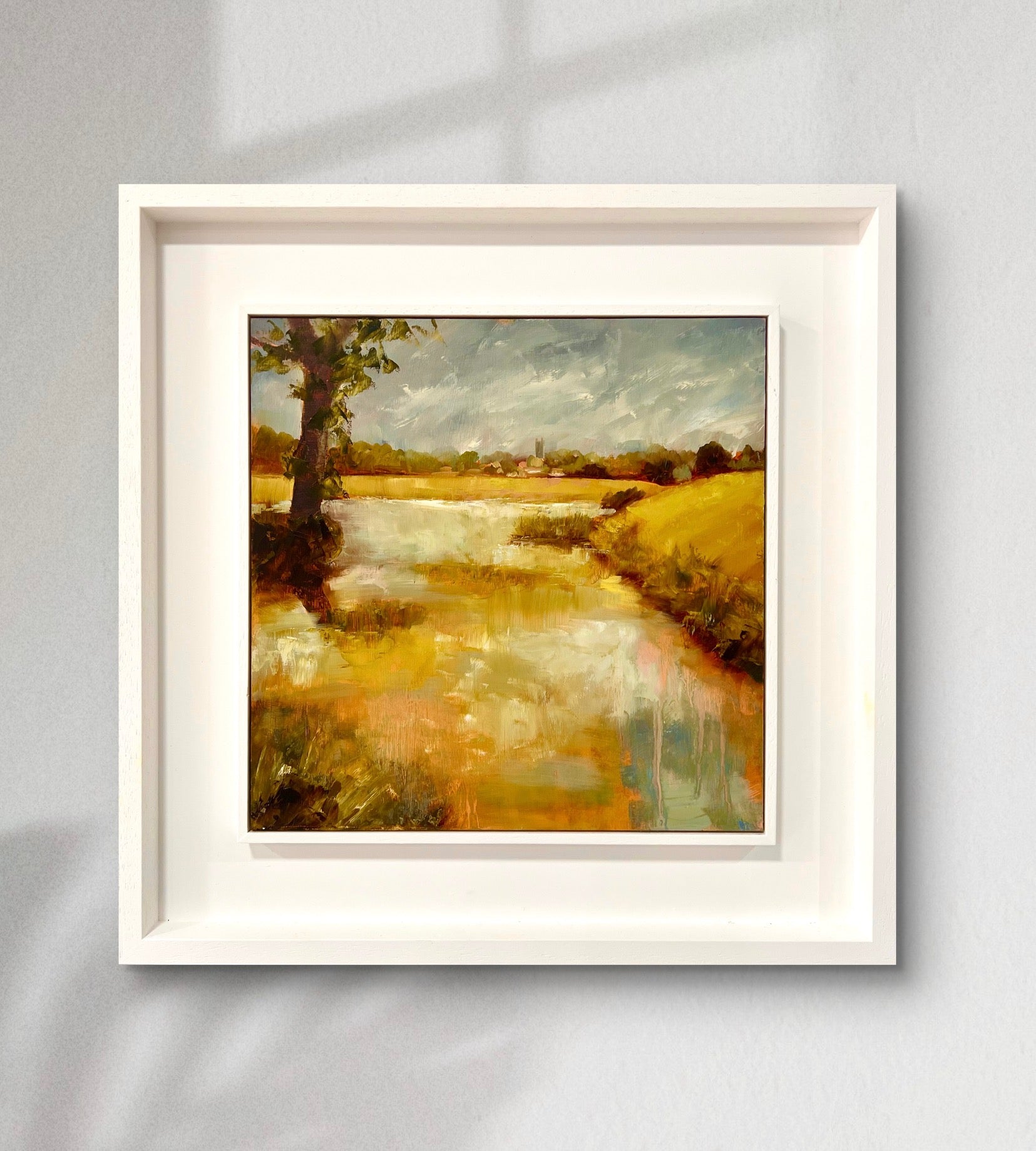 Framed in a white wood tray frame