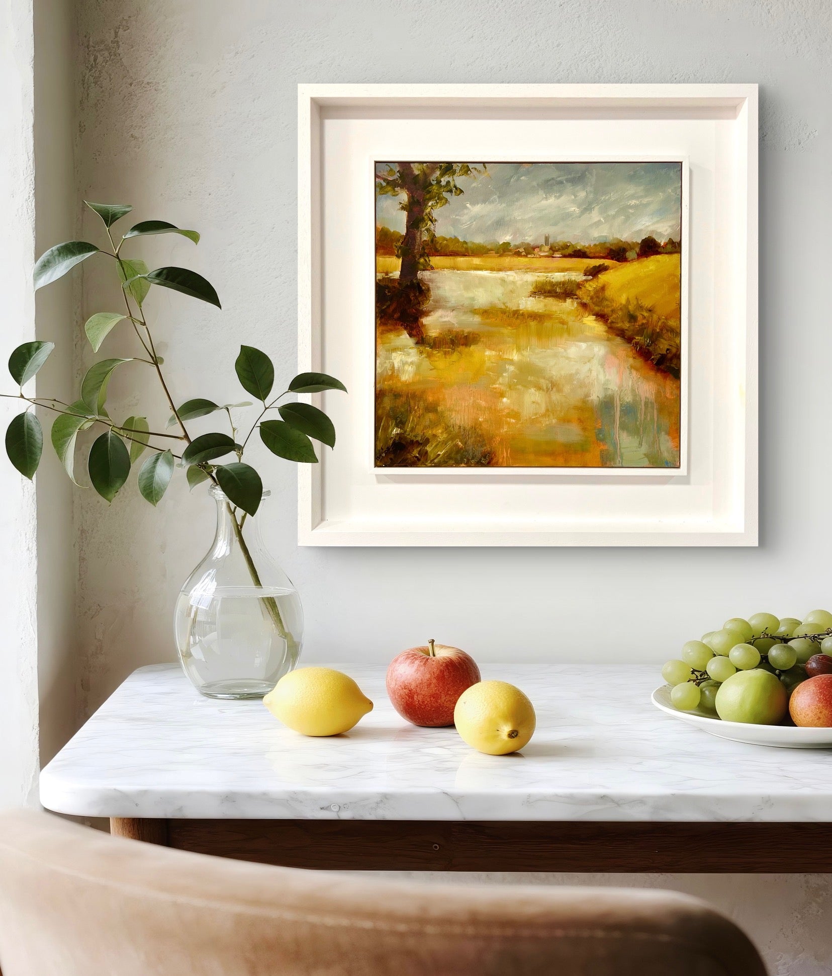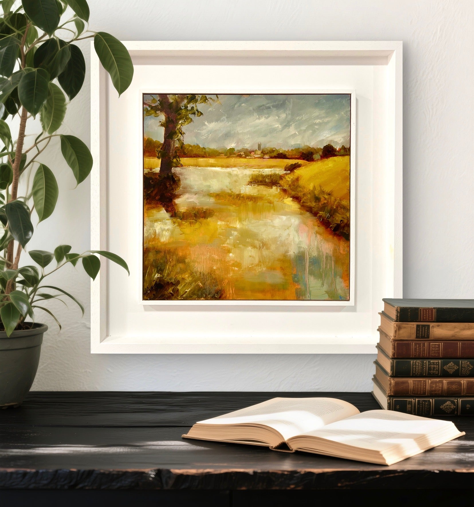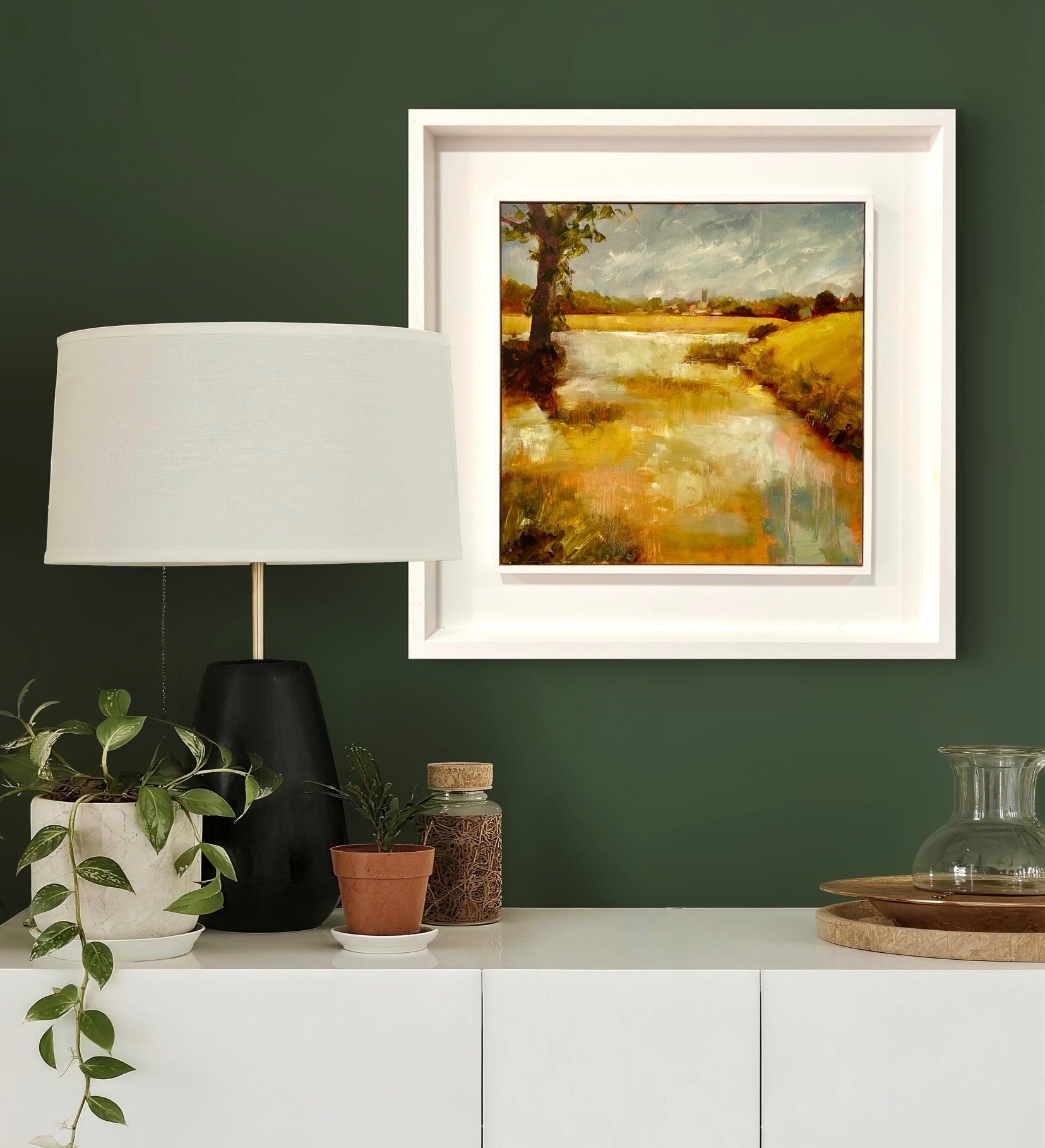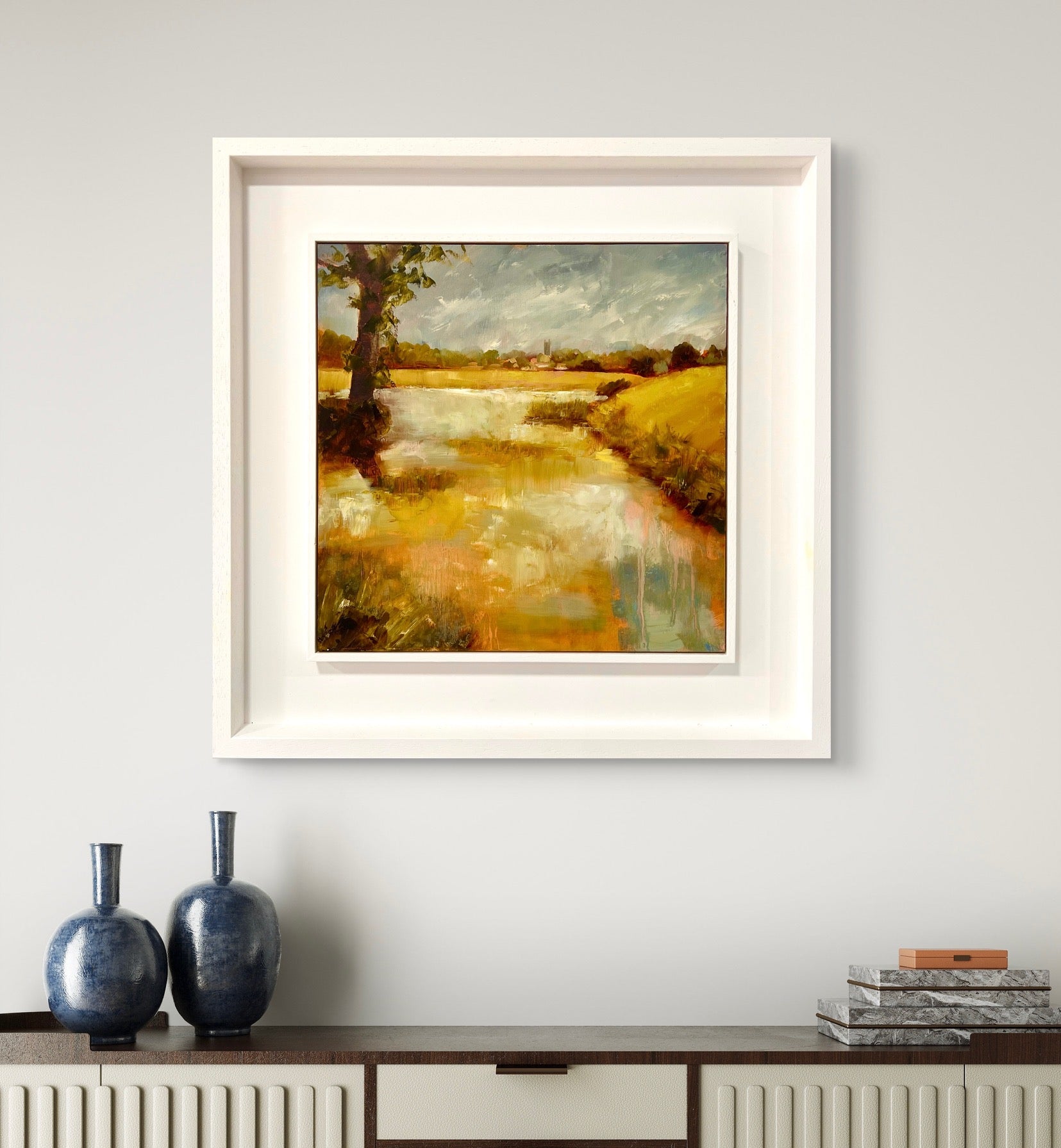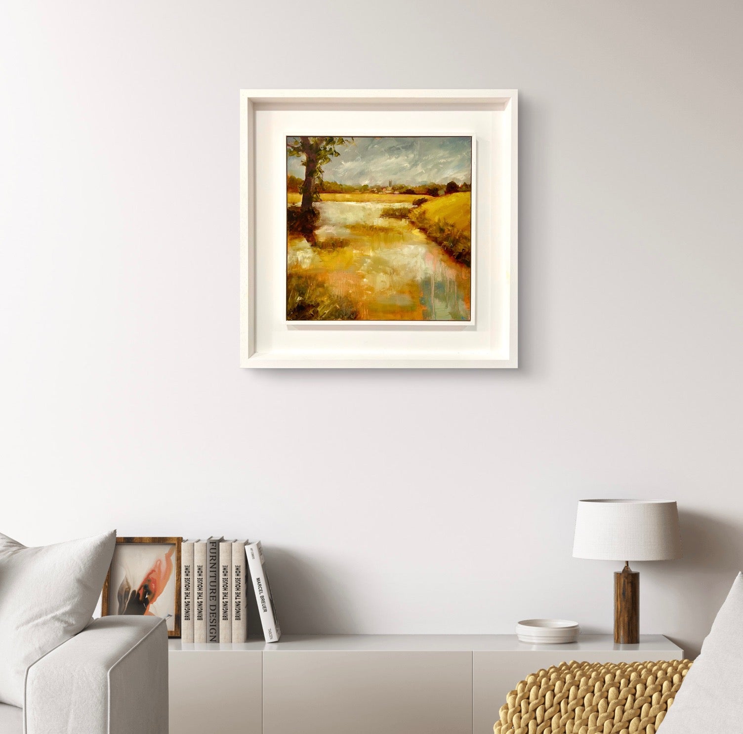 Framed in a white wood tray frame