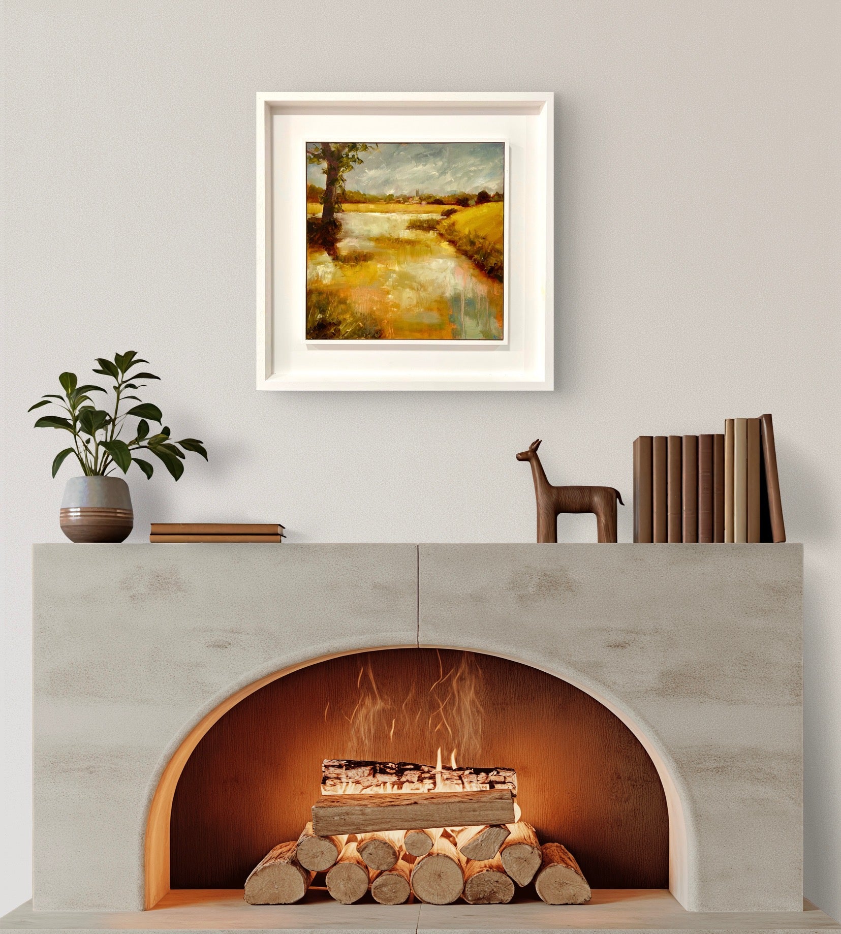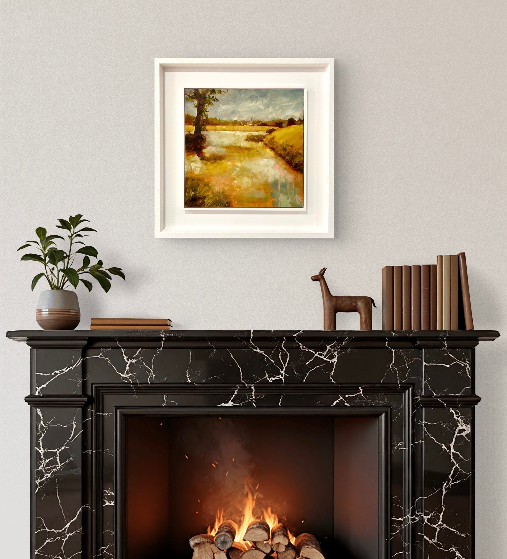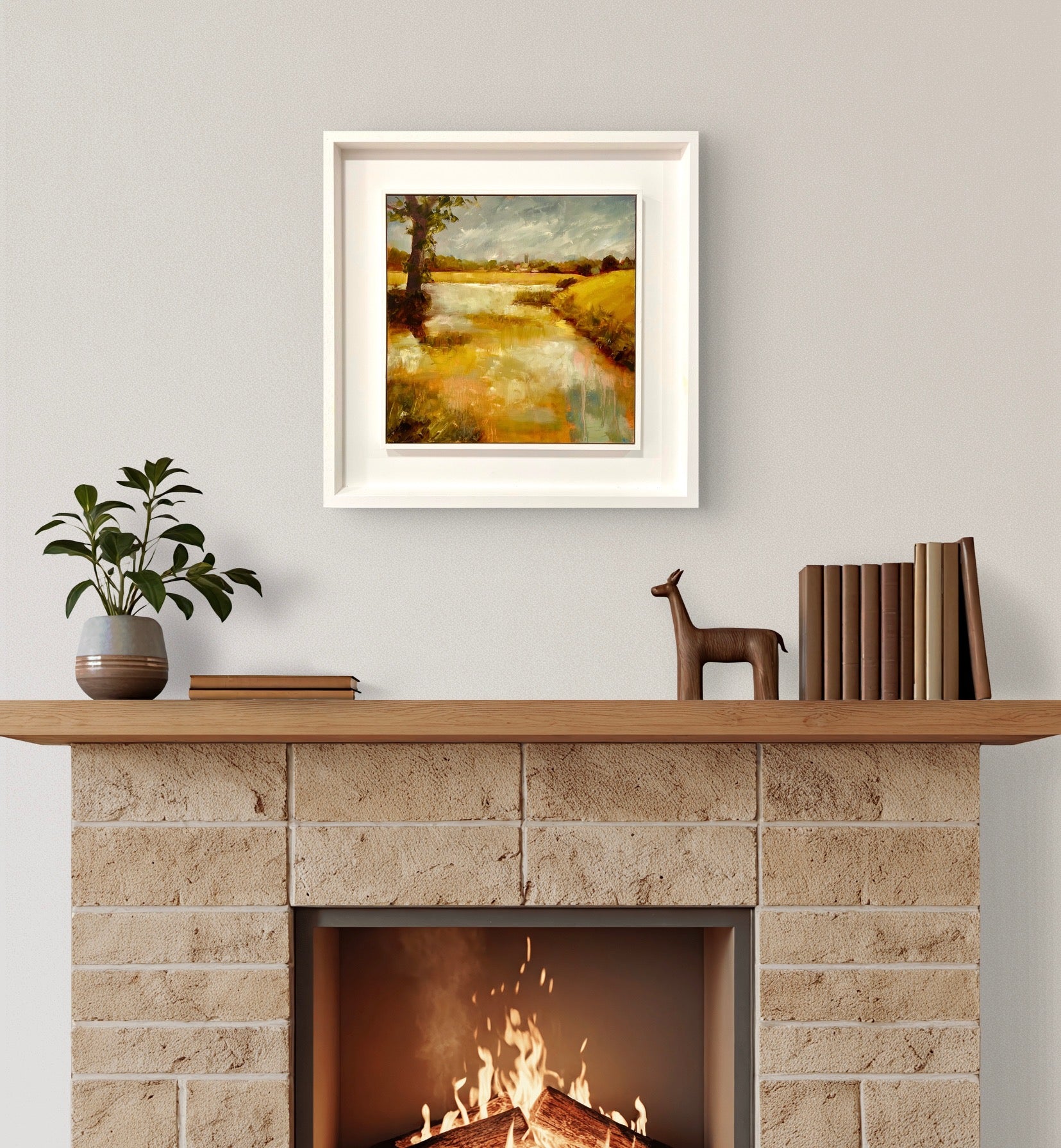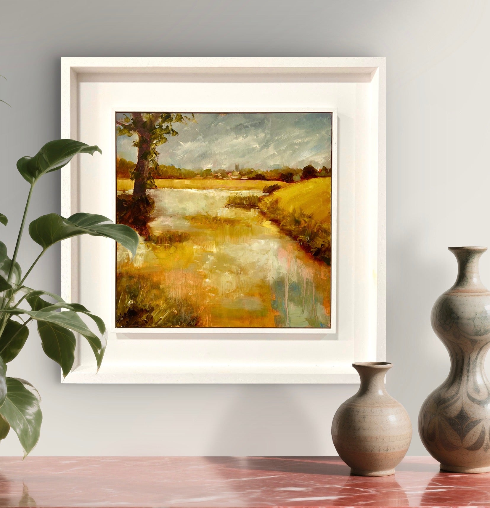 Framed in a white wood tray frame