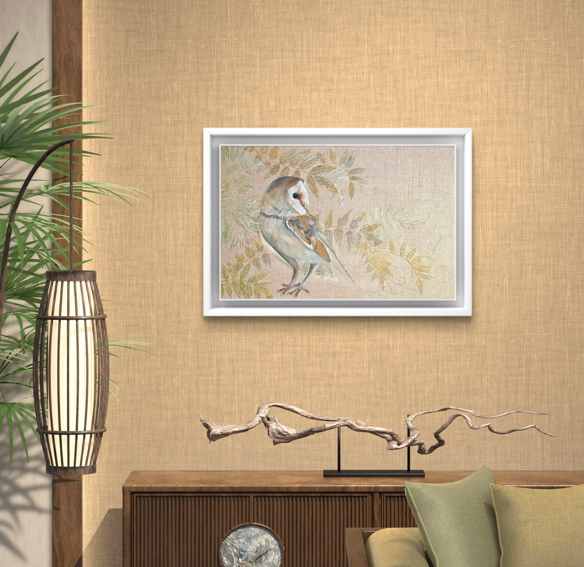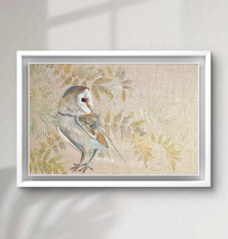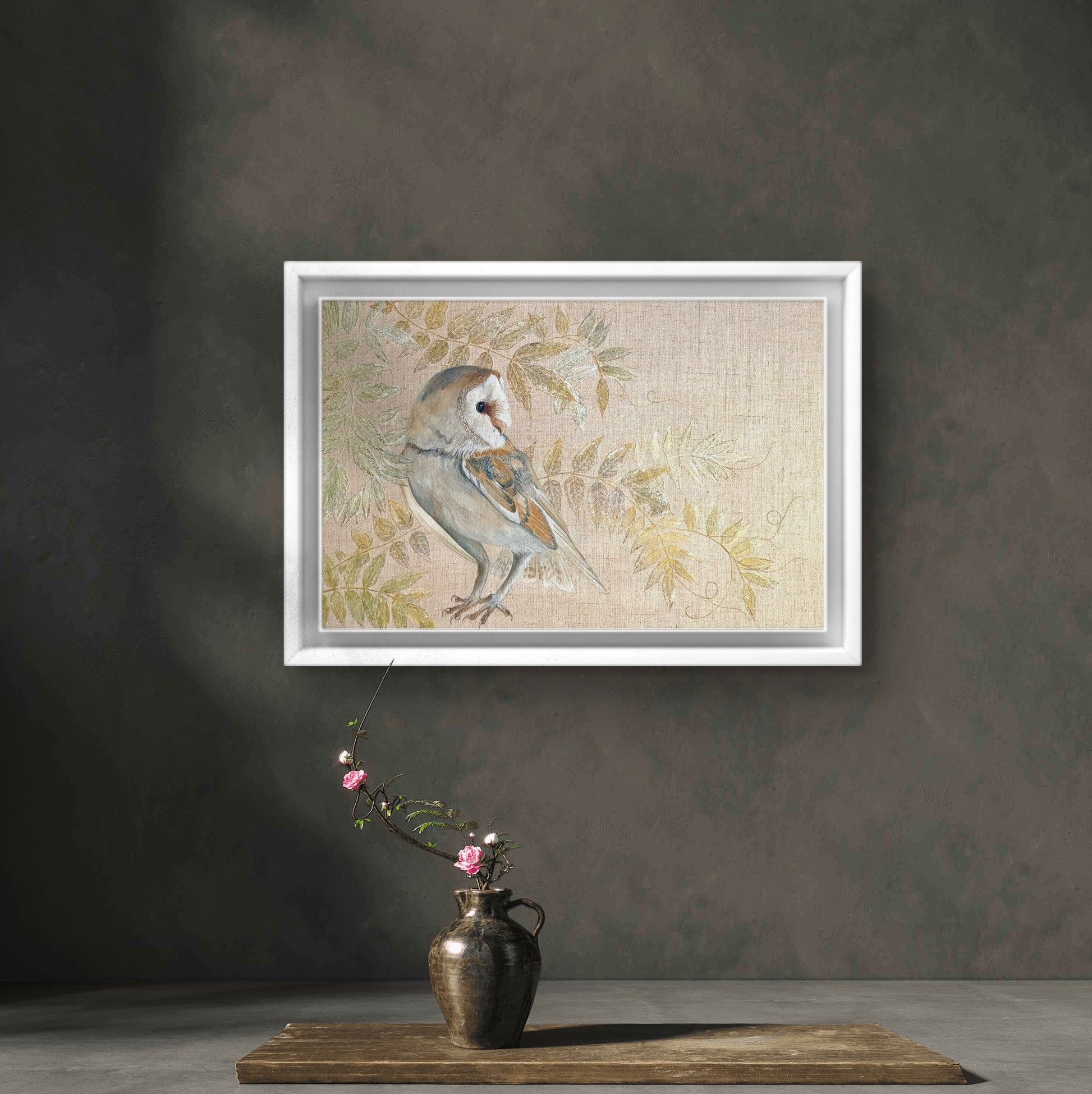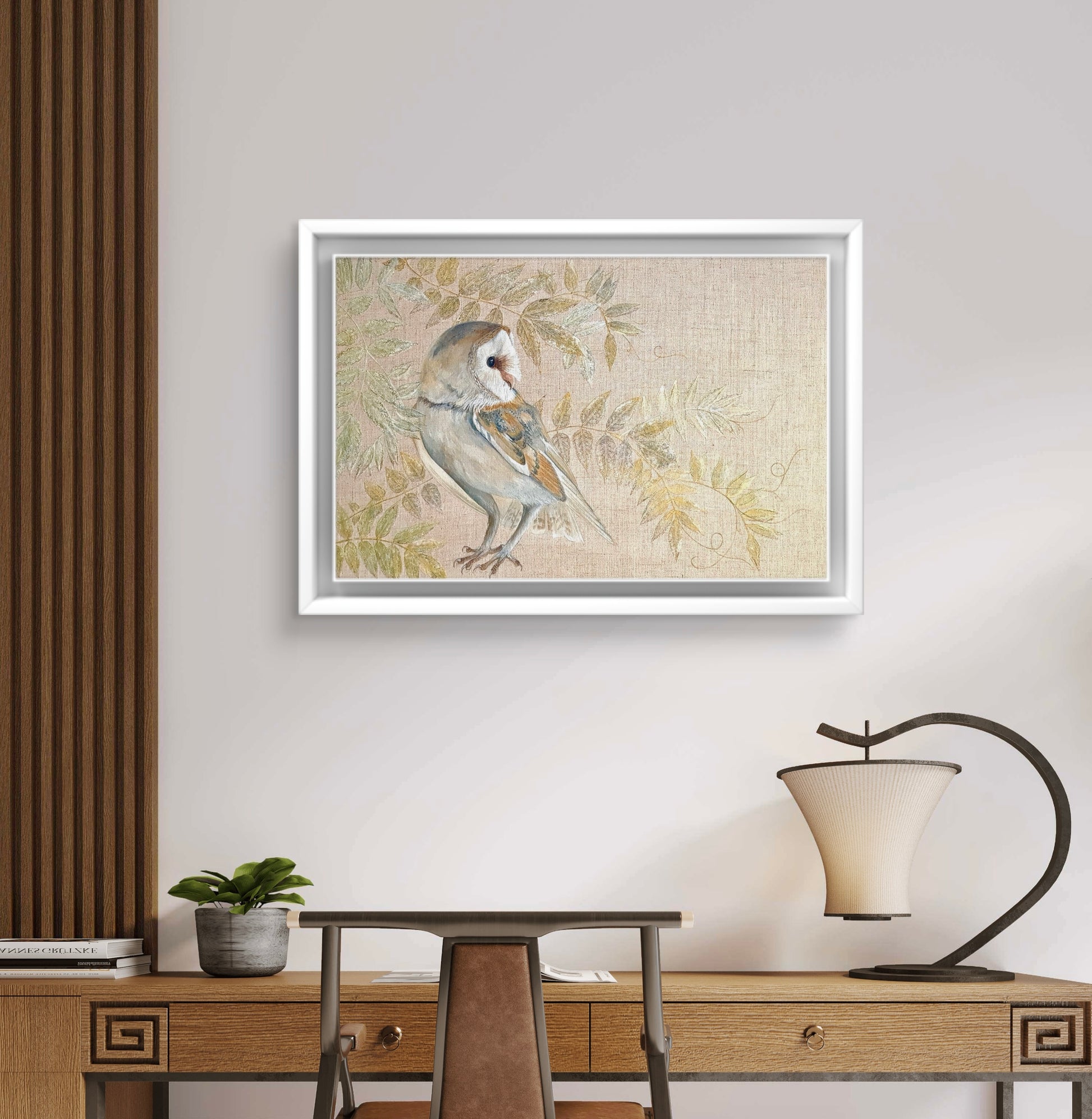 Original Collage. Acrylic on linen with botanical monoprint and moth etchings