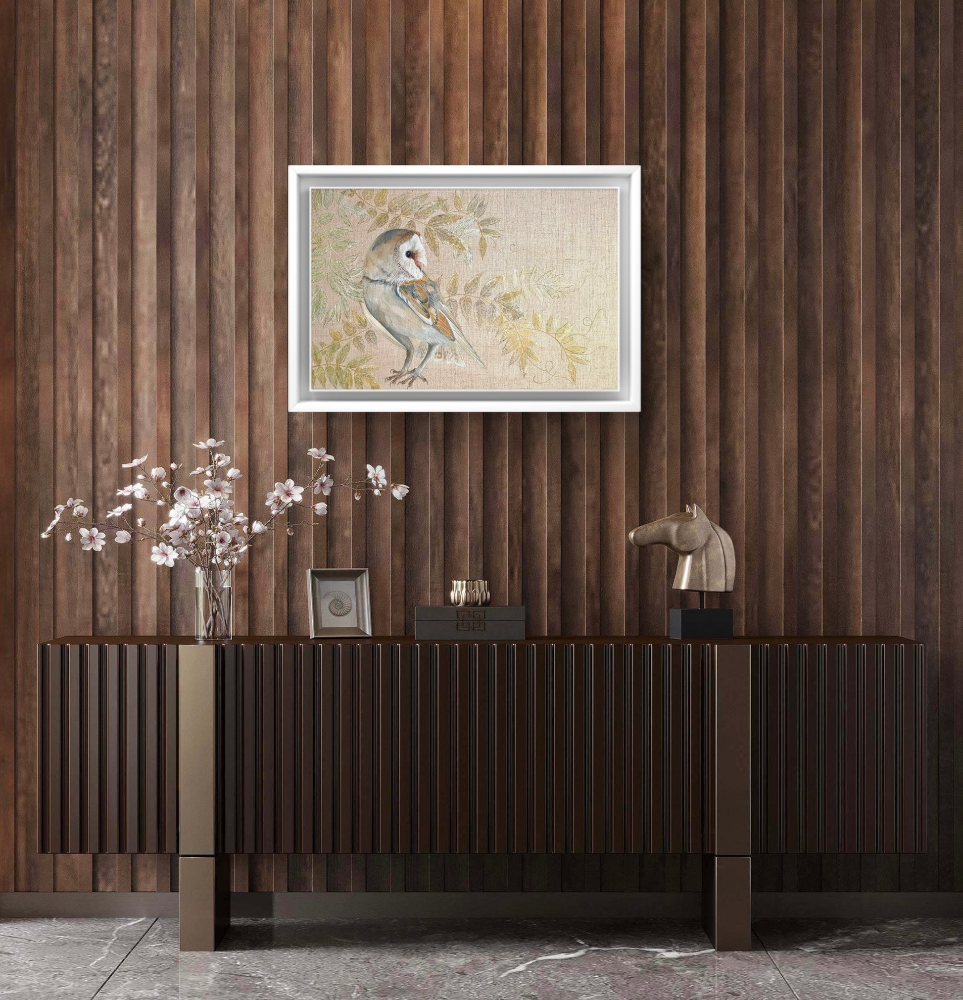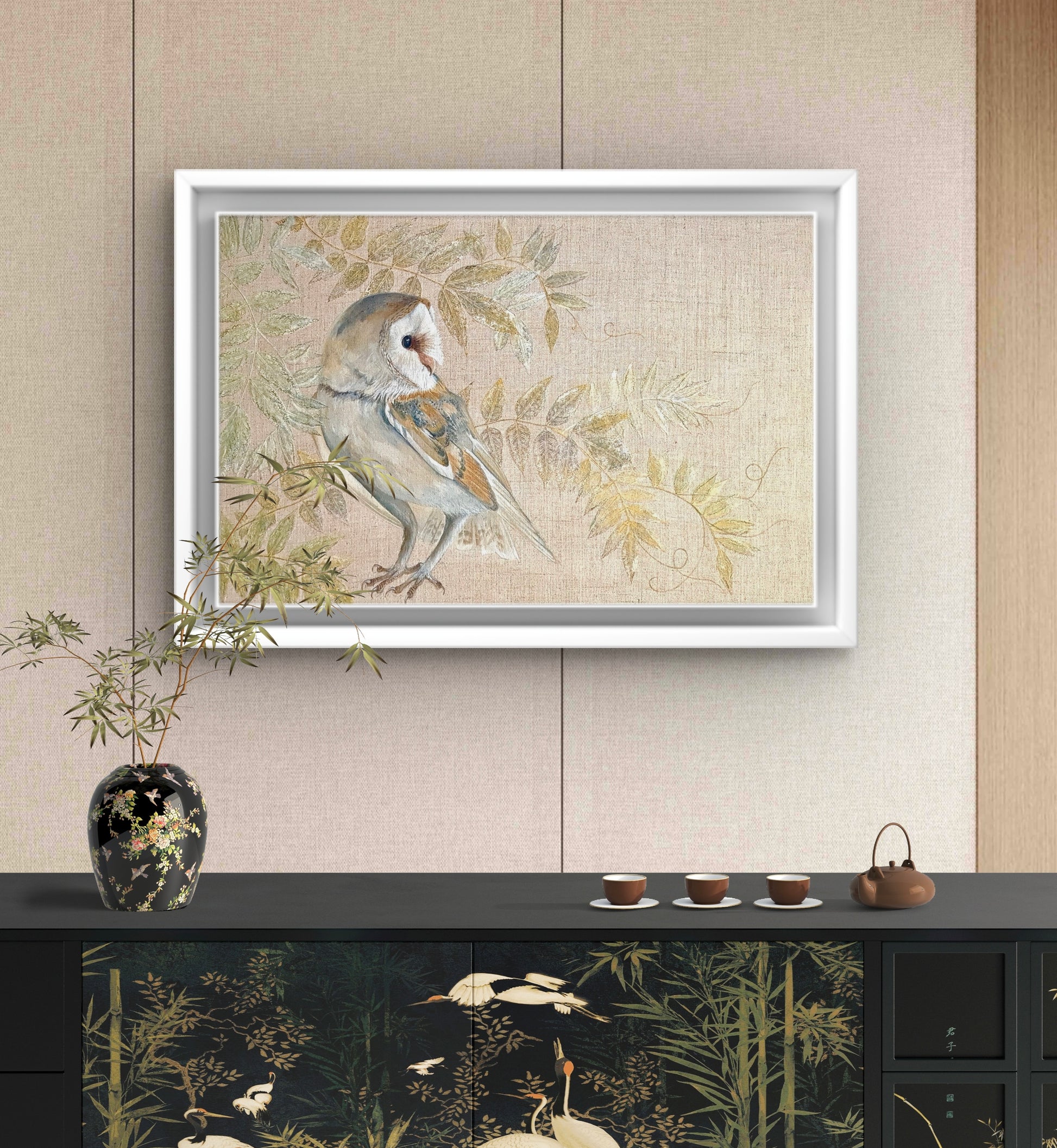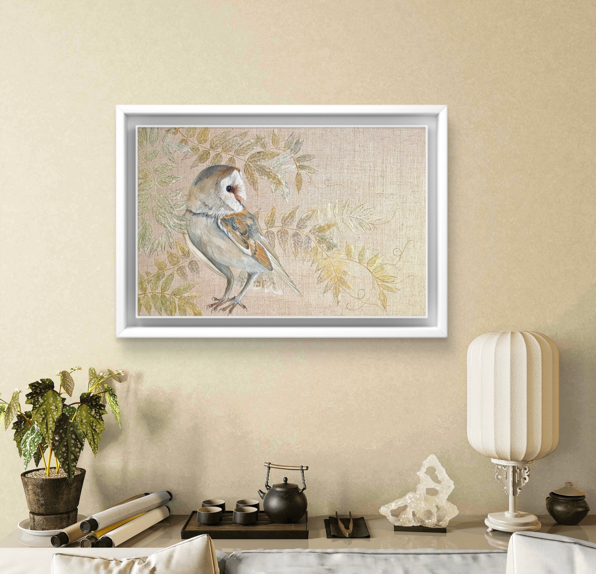 Original Collage. Acrylic on linen with botanical monoprint and moth etchings